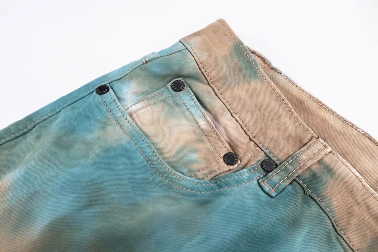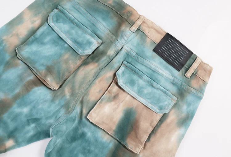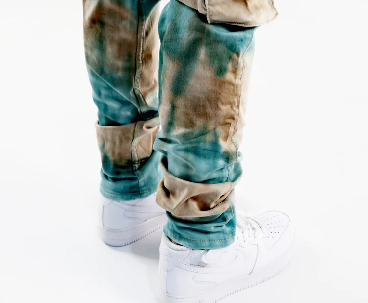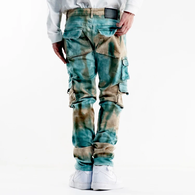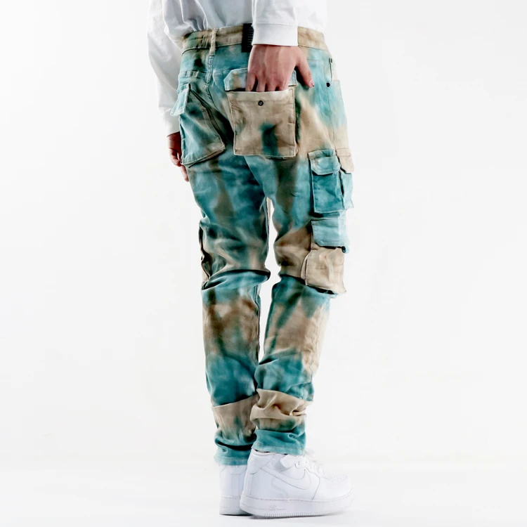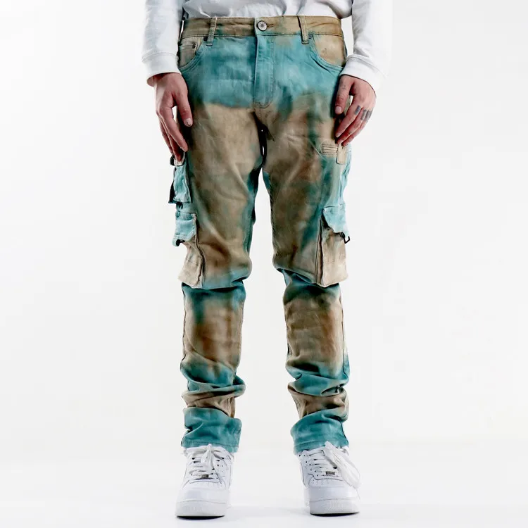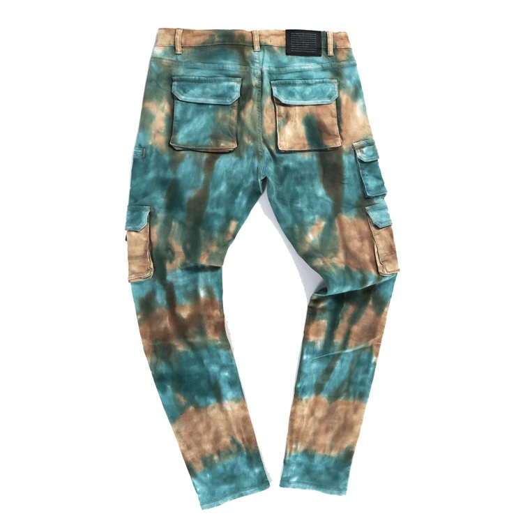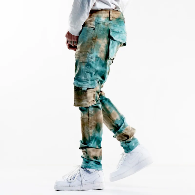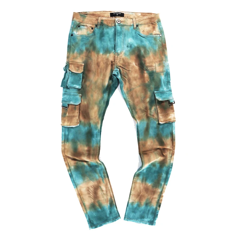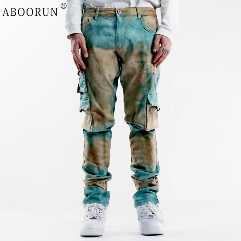 ABOORUN Men Hip Hop Jeans Fashion Tie Dye Cargo Denim Pants Streetwear Pencil Joggers for Male