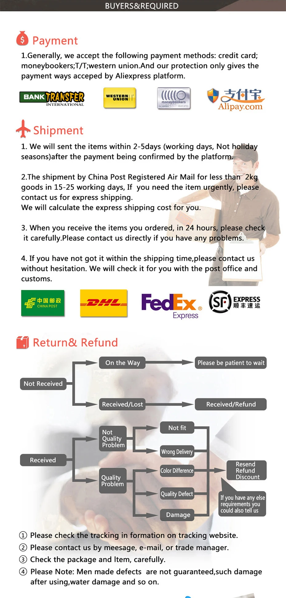 • If you did not receive the product within the guaranteed time( 45 days not including 2-5 day processing) you can request a refund or a reshipment.
