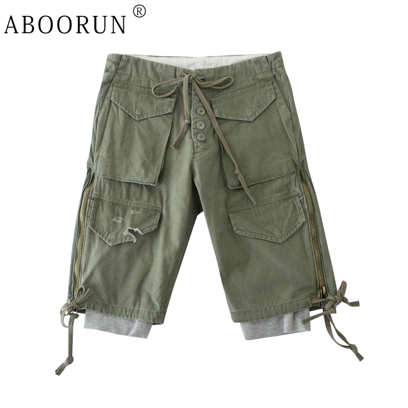 ABOORUN Men’s Hi Street Shorts Multi Pockets Army Cargo Shorts Streetwear Cotton Short Pants for Male