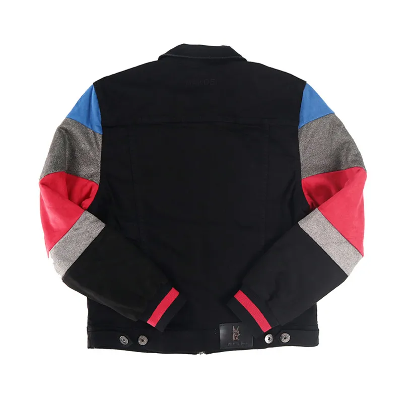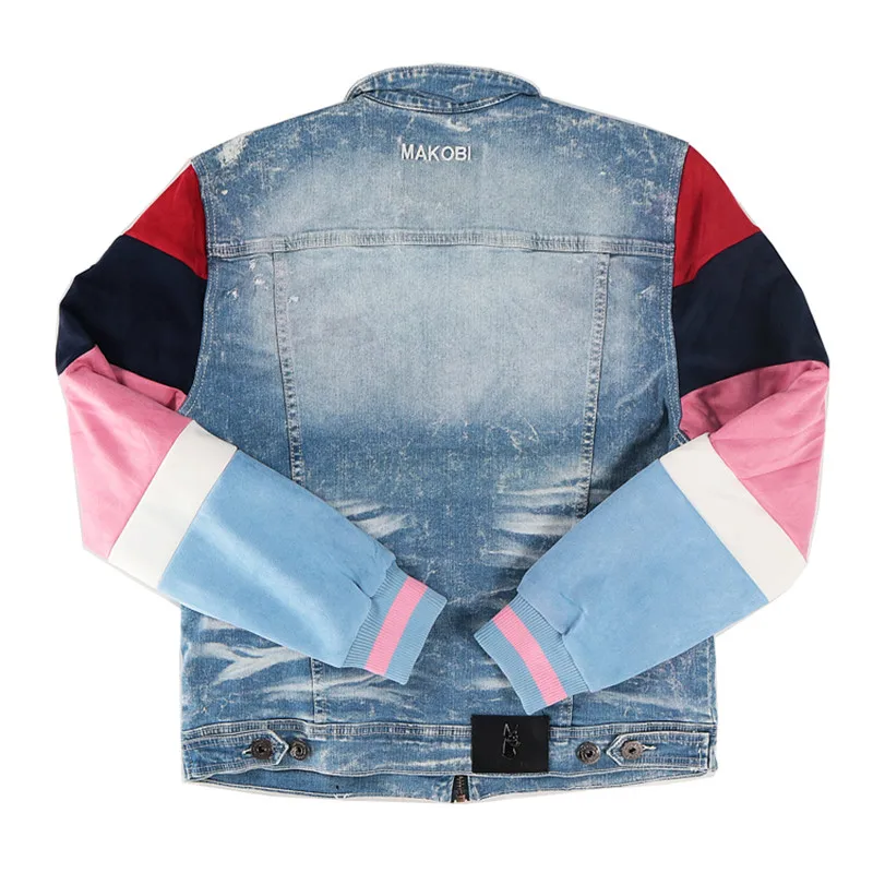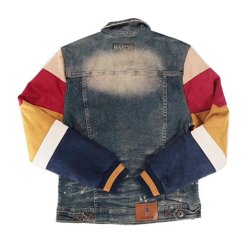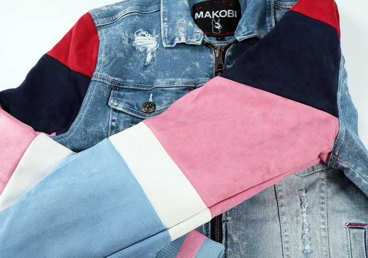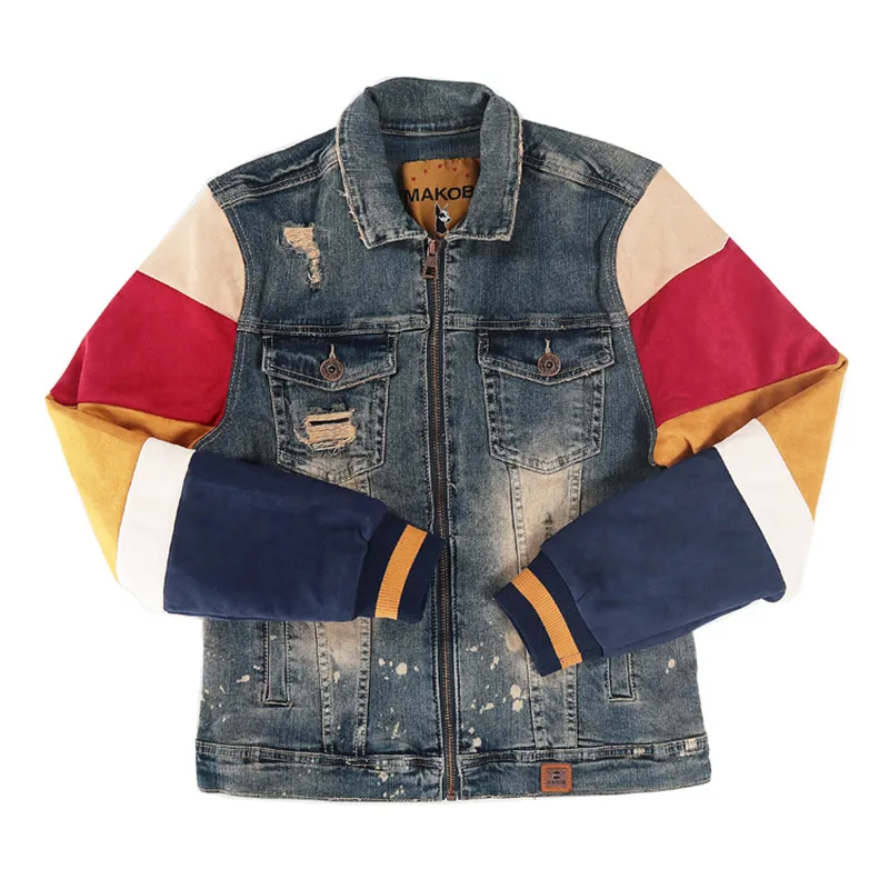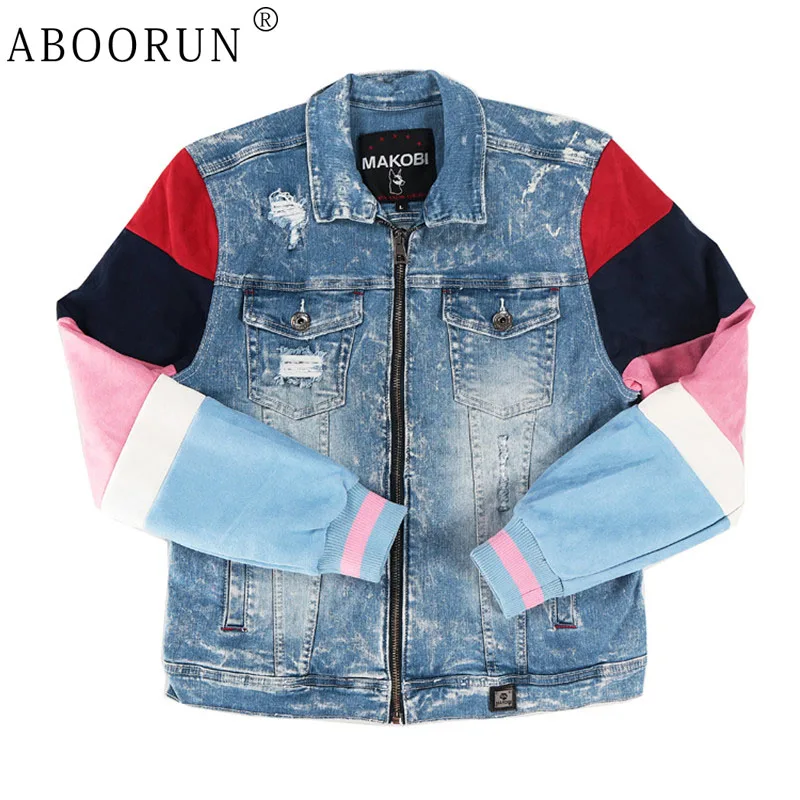 ABOORUN Men’s Hip Hop Ripped Denim Jackets Streetwear Oversize Suede Patchwork Jean Coats for Male