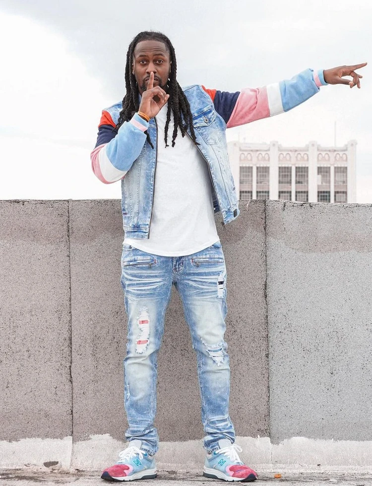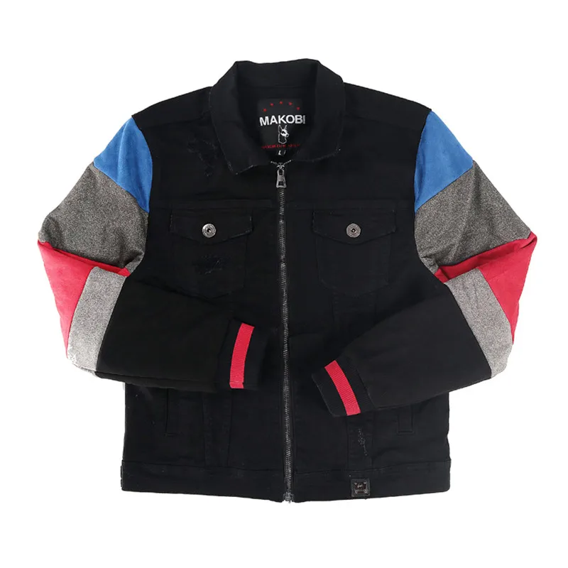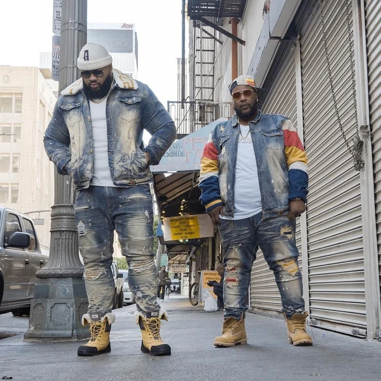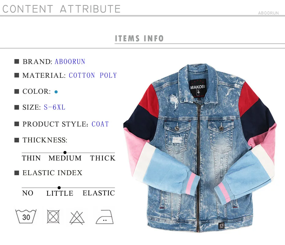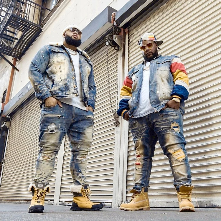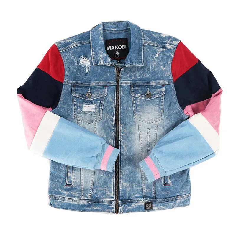 ABOORUN Men’s Hip Hop Ripped Denim Jackets Streetwear Oversize Suede Patchwork Jean Coats for Male