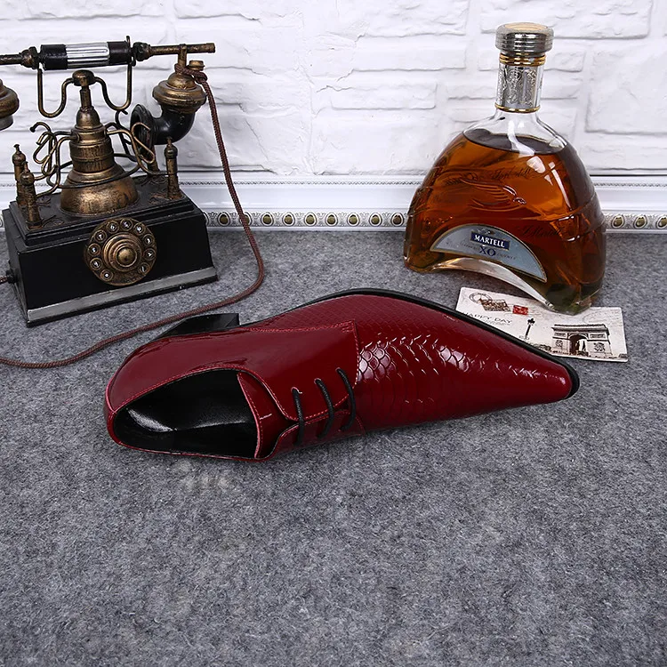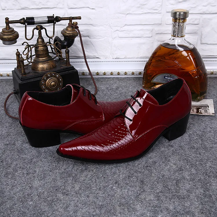 Akamatsu sapato social oxford shoes for men genuine leather patent crocodile skin mens shoes high heels red balck wedding shoe