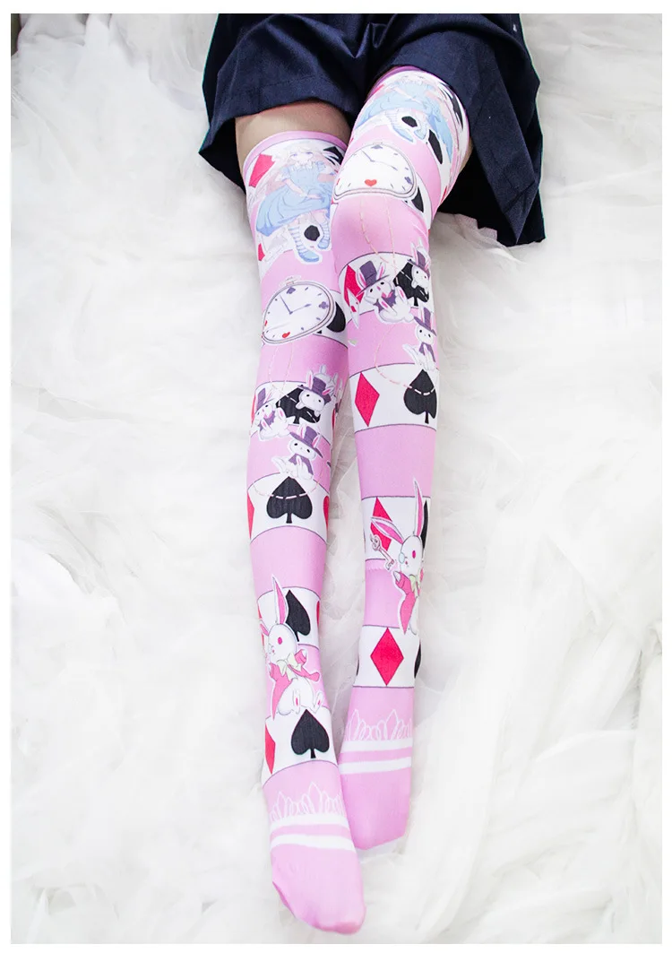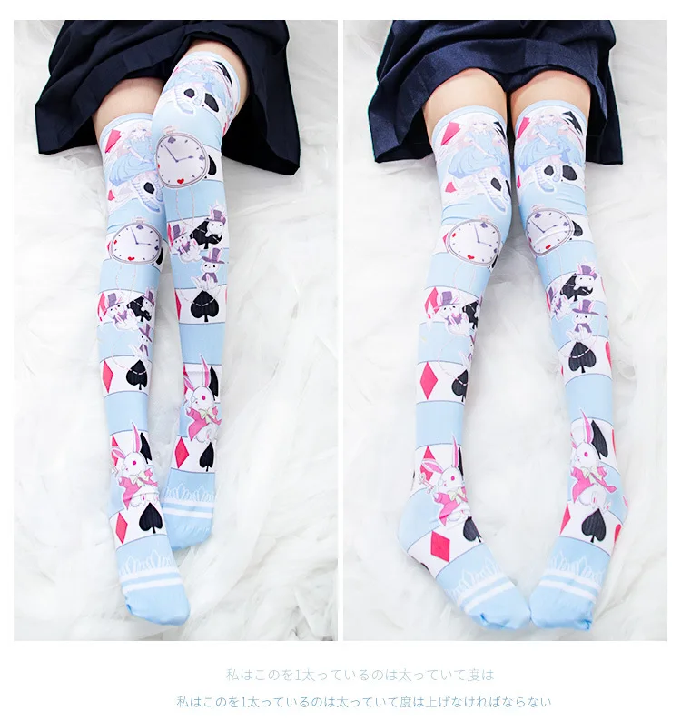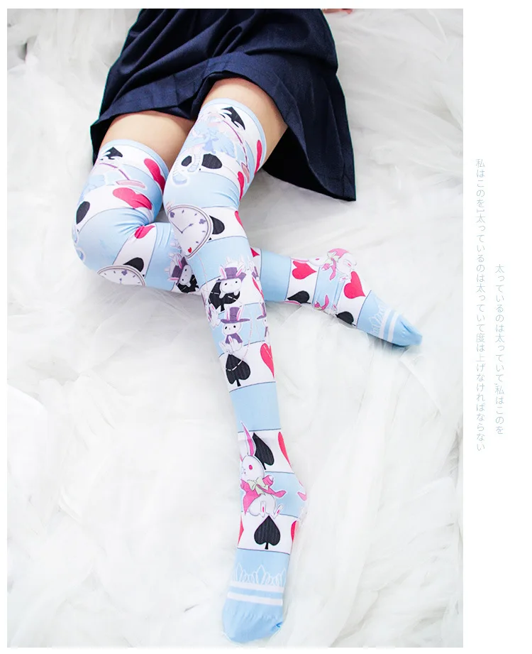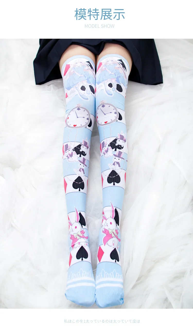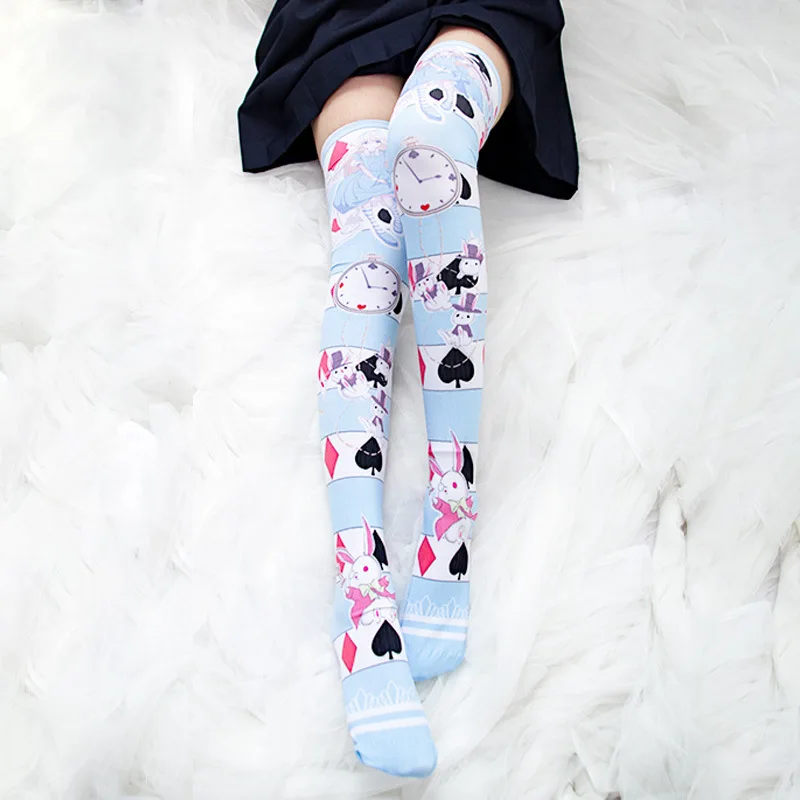 Alice Rabbit & Clock Super Cute Over-knee Stockings Velvet Women Girls Striped Stockings JK Uniform Easy Match
