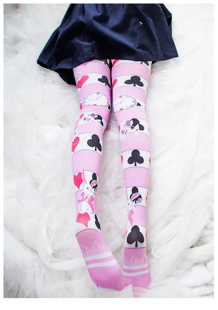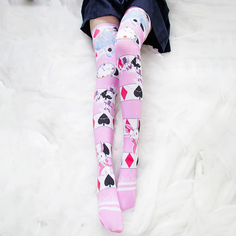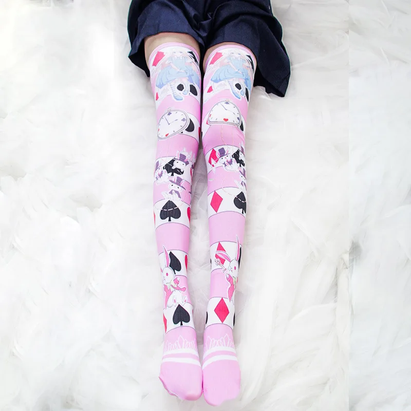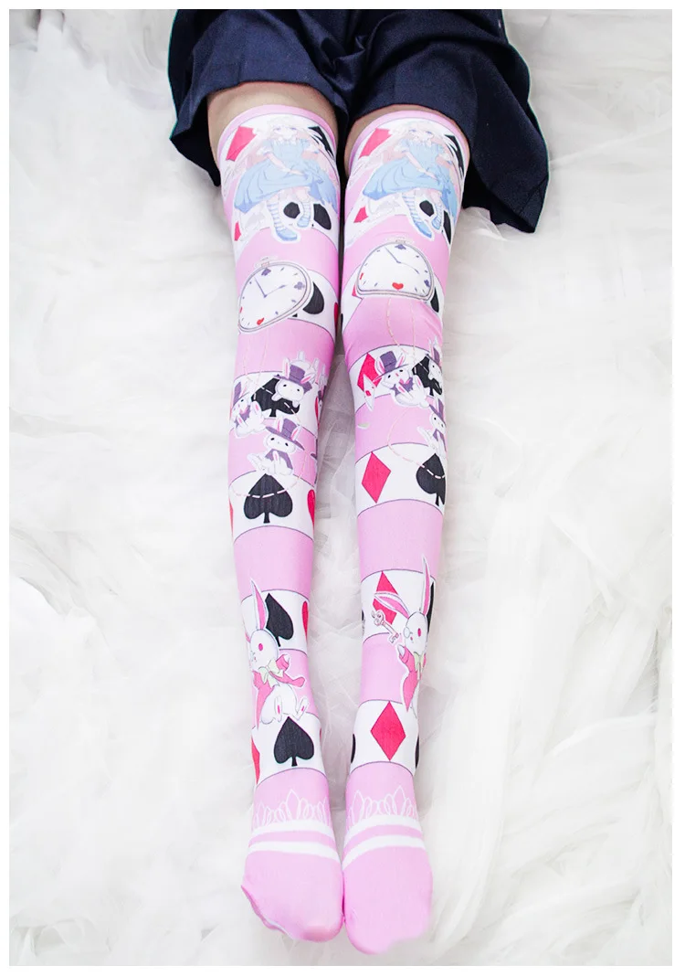 Alice Rabbit & Clock Super Cute Over-knee Stockings Velvet Women Girls Striped Stockings JK Uniform Easy Match