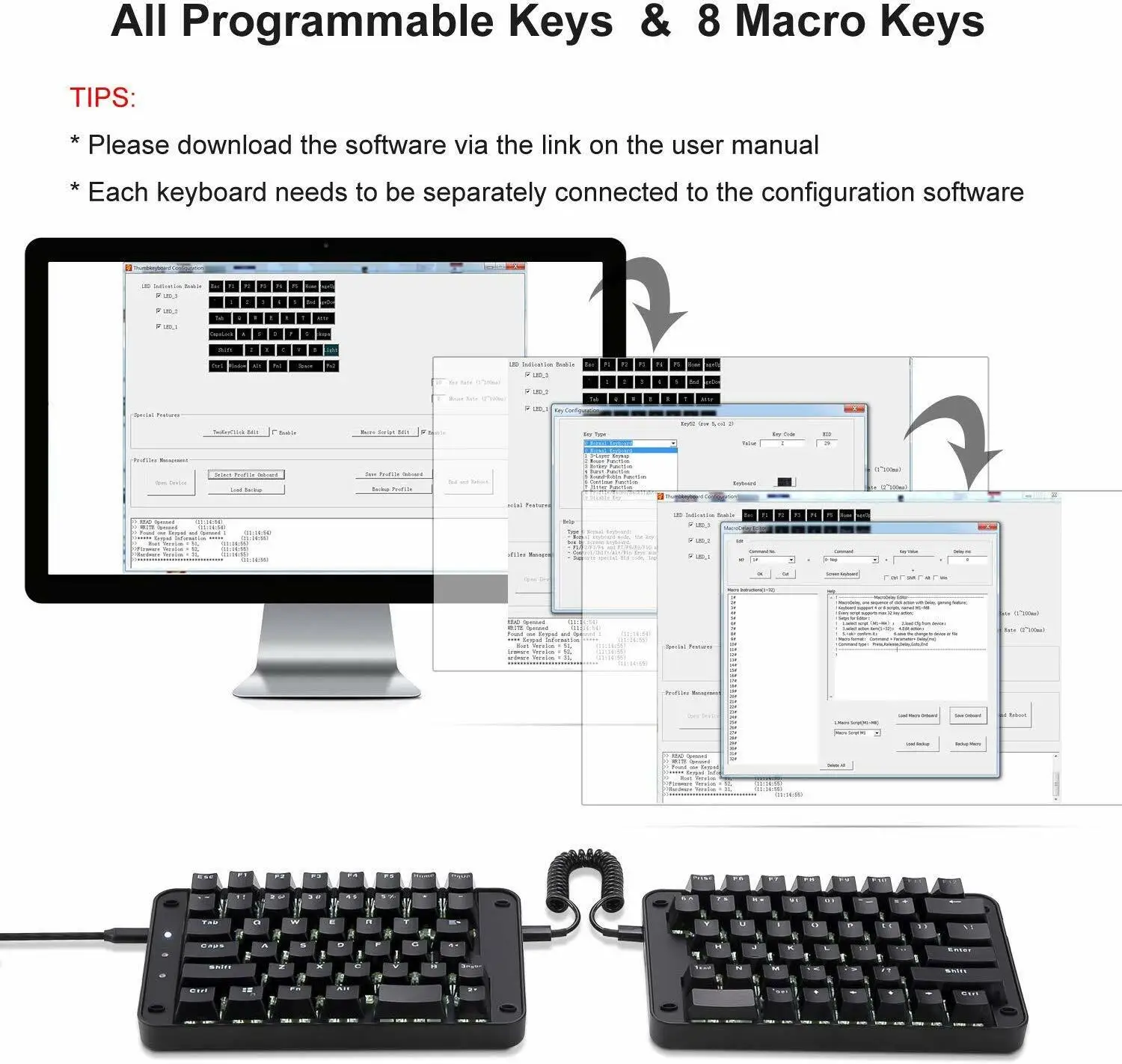 User can download the keyboard configuration software from URL on user manual. Compatible with Windows 7,8,10(Windows XP incompatibled)