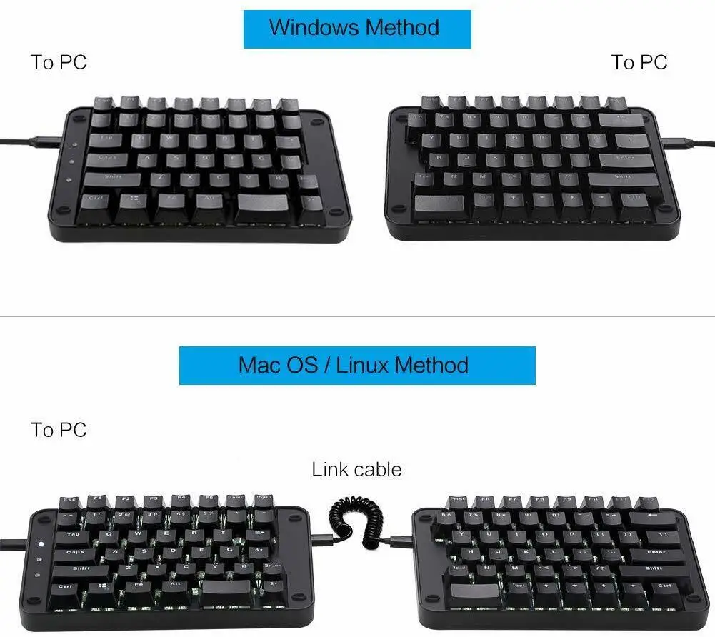 Apple computer and Linux users need to set the keyboard under the Windows 7/8/10. Once set, it will be stored in the keyboard’s MCU, and then get the keyboard to use under Apple computer/Linux