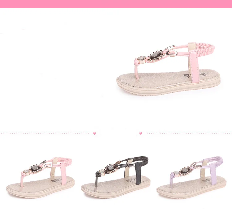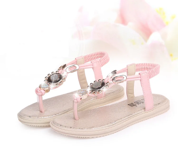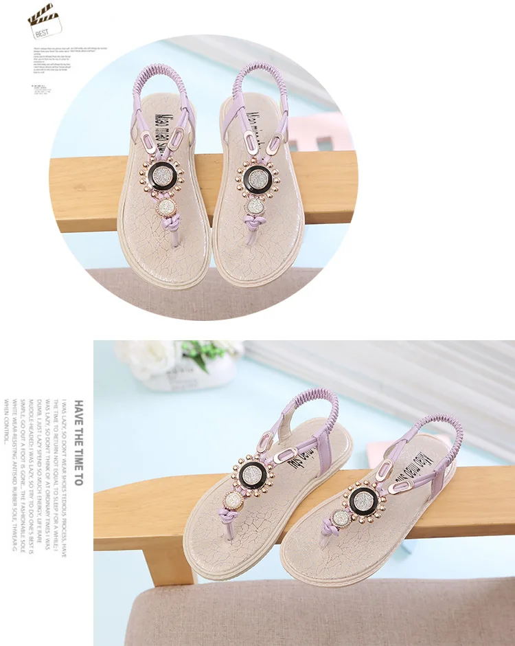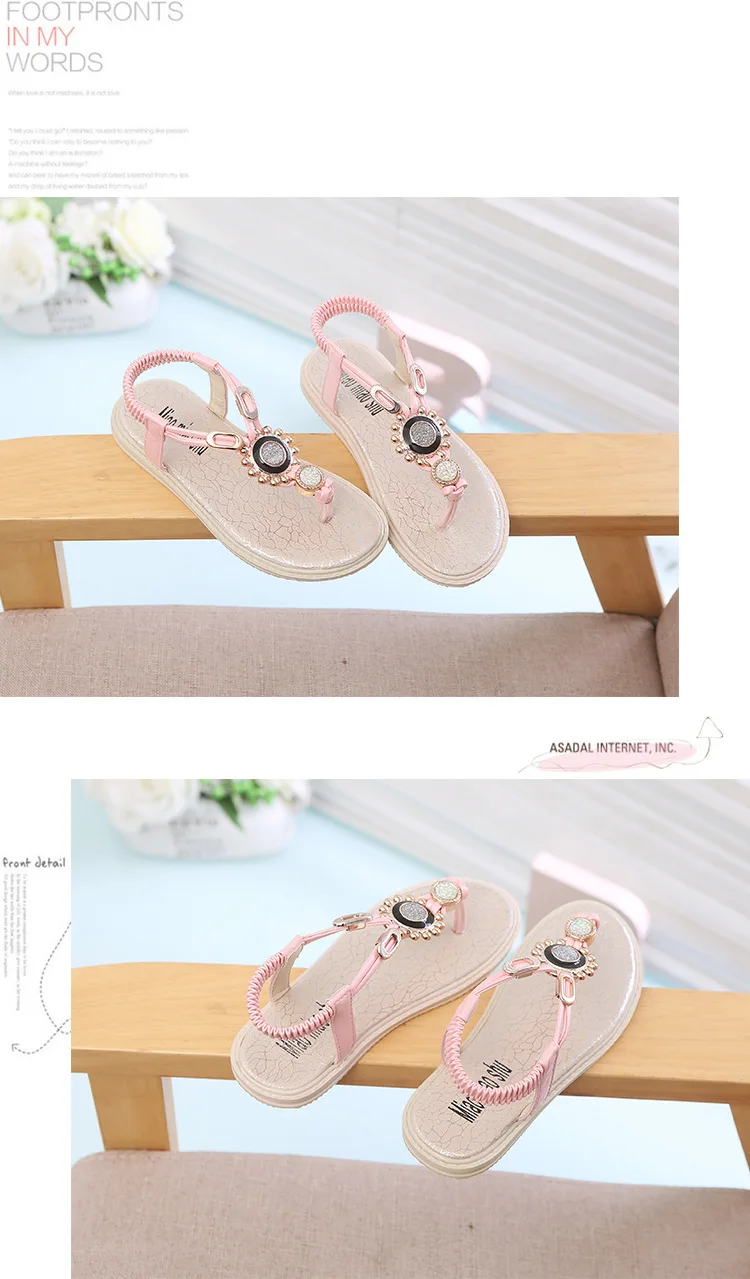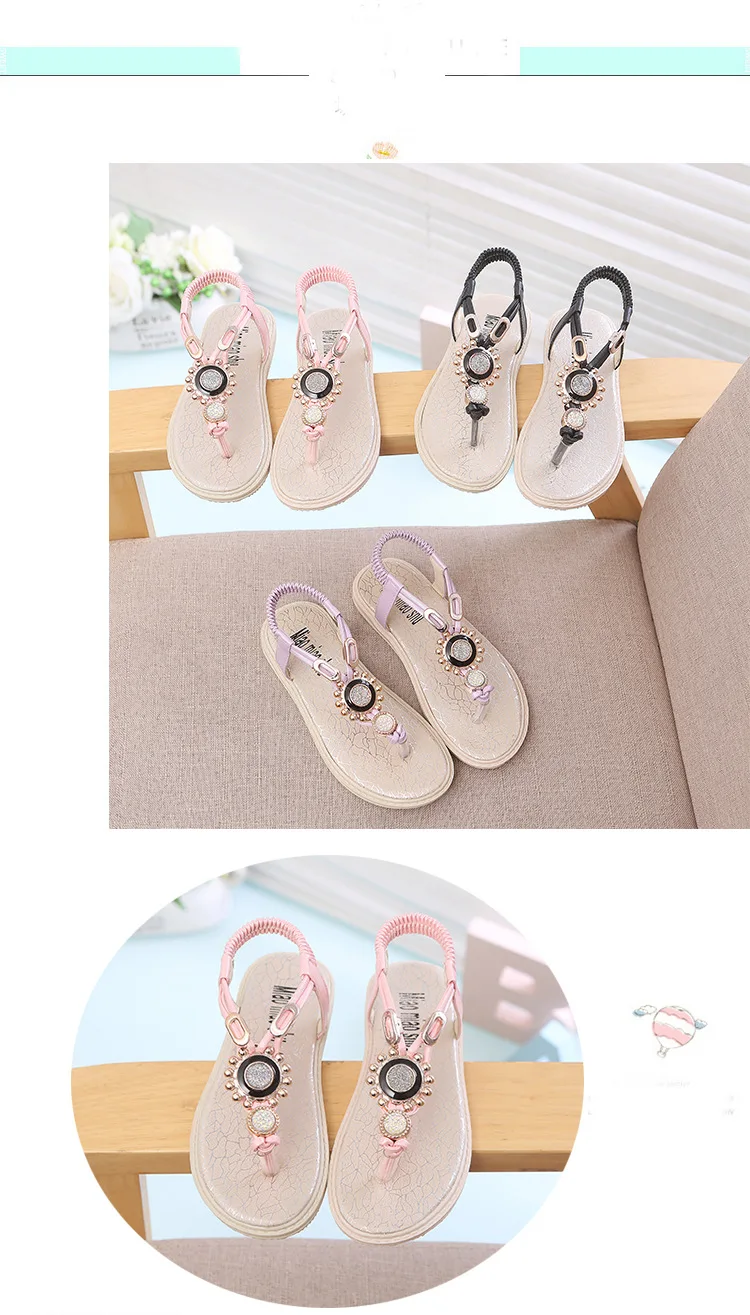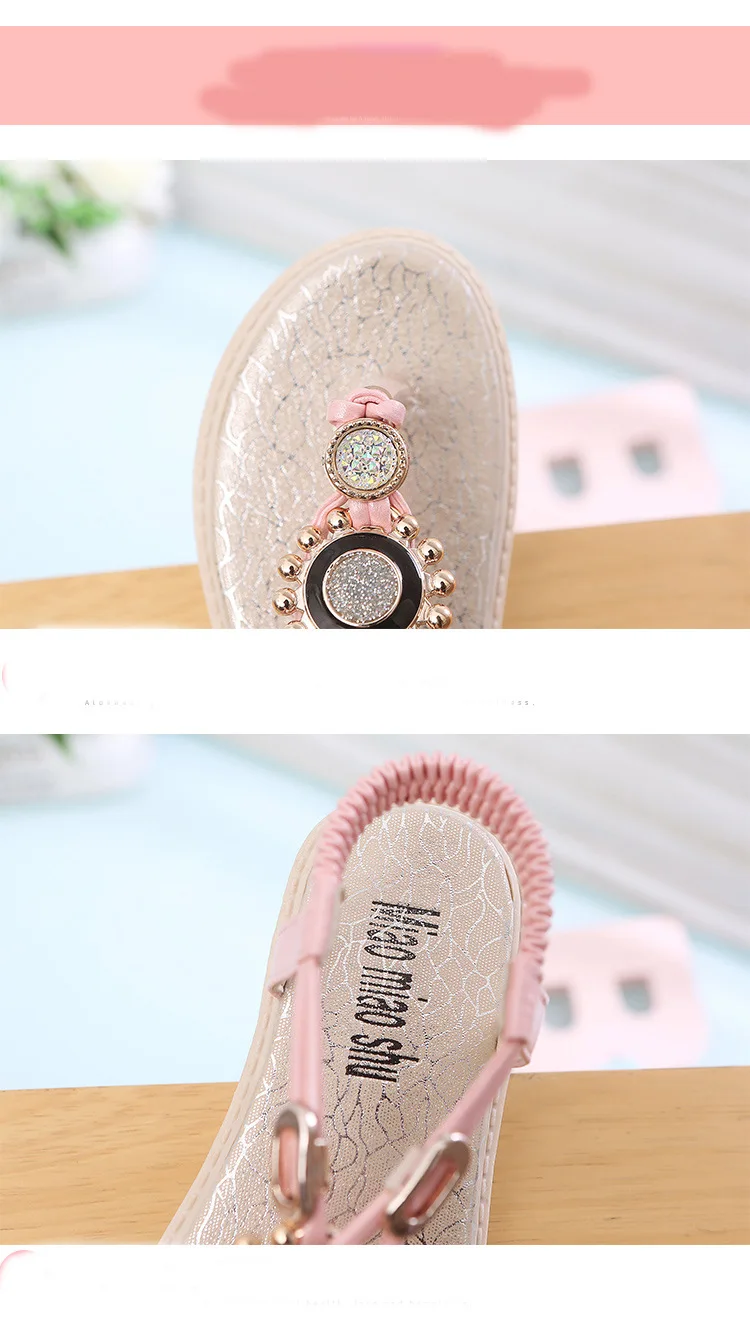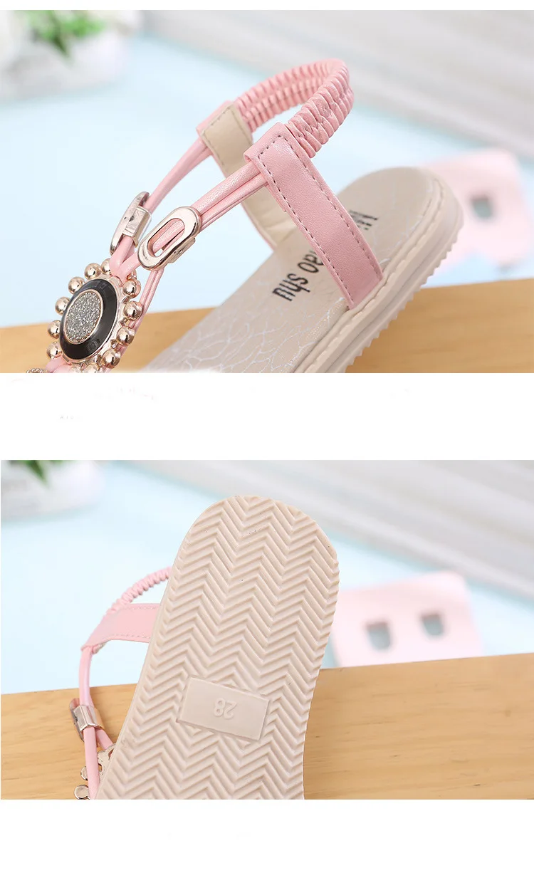All Sizes 21-35 Baby Girl Sandals Summer Girls Flip Flops Beach Sandals Gold Rhineston Beading Children Bohemia Flat Sandals