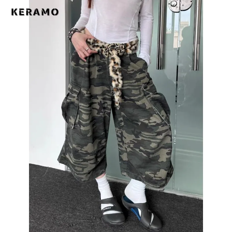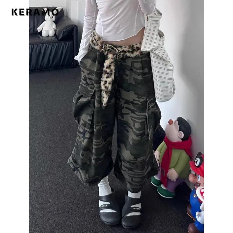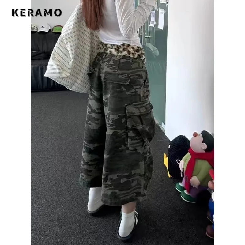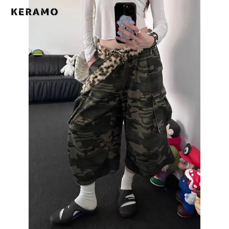 American Retro High Waist Camouflage Jeans Women Pockets Hip-hop Shorts 2024 Summer Casual Y2K Grunge Street Washed Denim Shorts