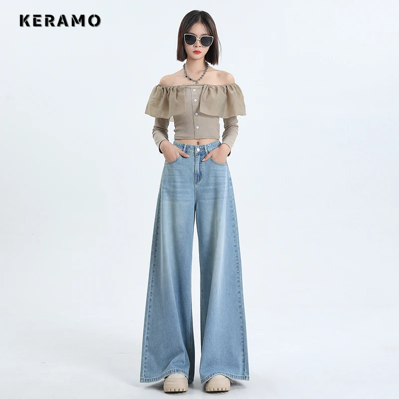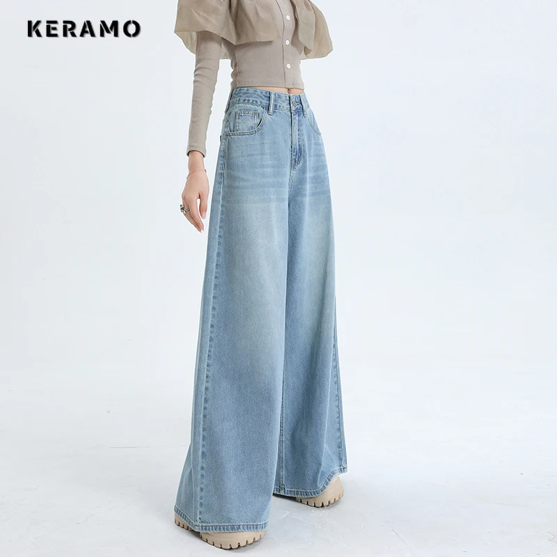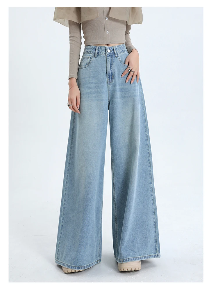 American Retro High Waist Oversized Jeans Pants For Women Casual Baggy Y2K Wide Leg Grunge Streetwear Blue Denim Trouser