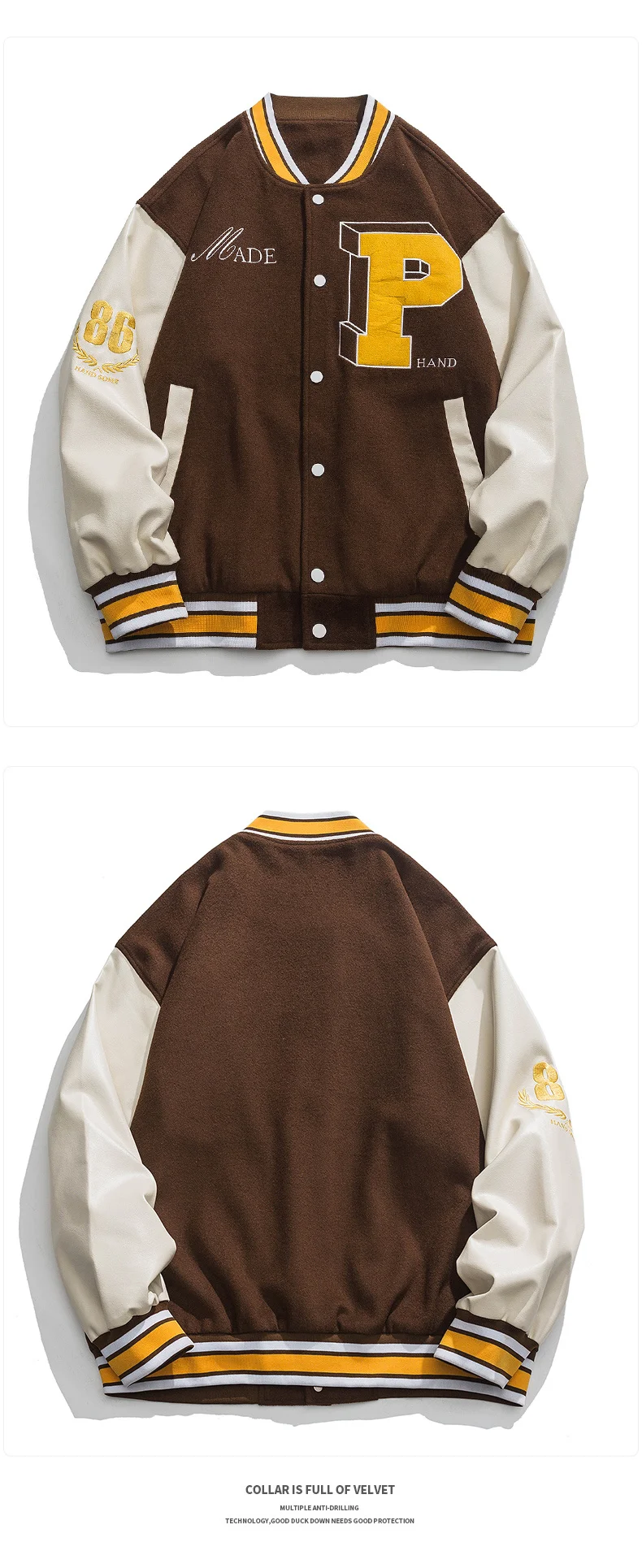 American Retro Letter Embroidered Jackets Coat Men Nice New Street Hip Hop Trend Baseball Uniform Couple Casual Loose Jacket