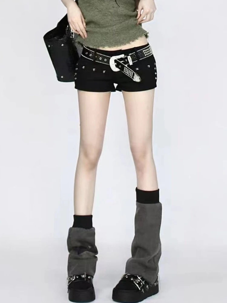 American Retro Sexy Hot Girls Y2k Denim Shorts for Women Low Waist Rivets Solid Streetwear Summer All-match Trendy Tight Fit Ins