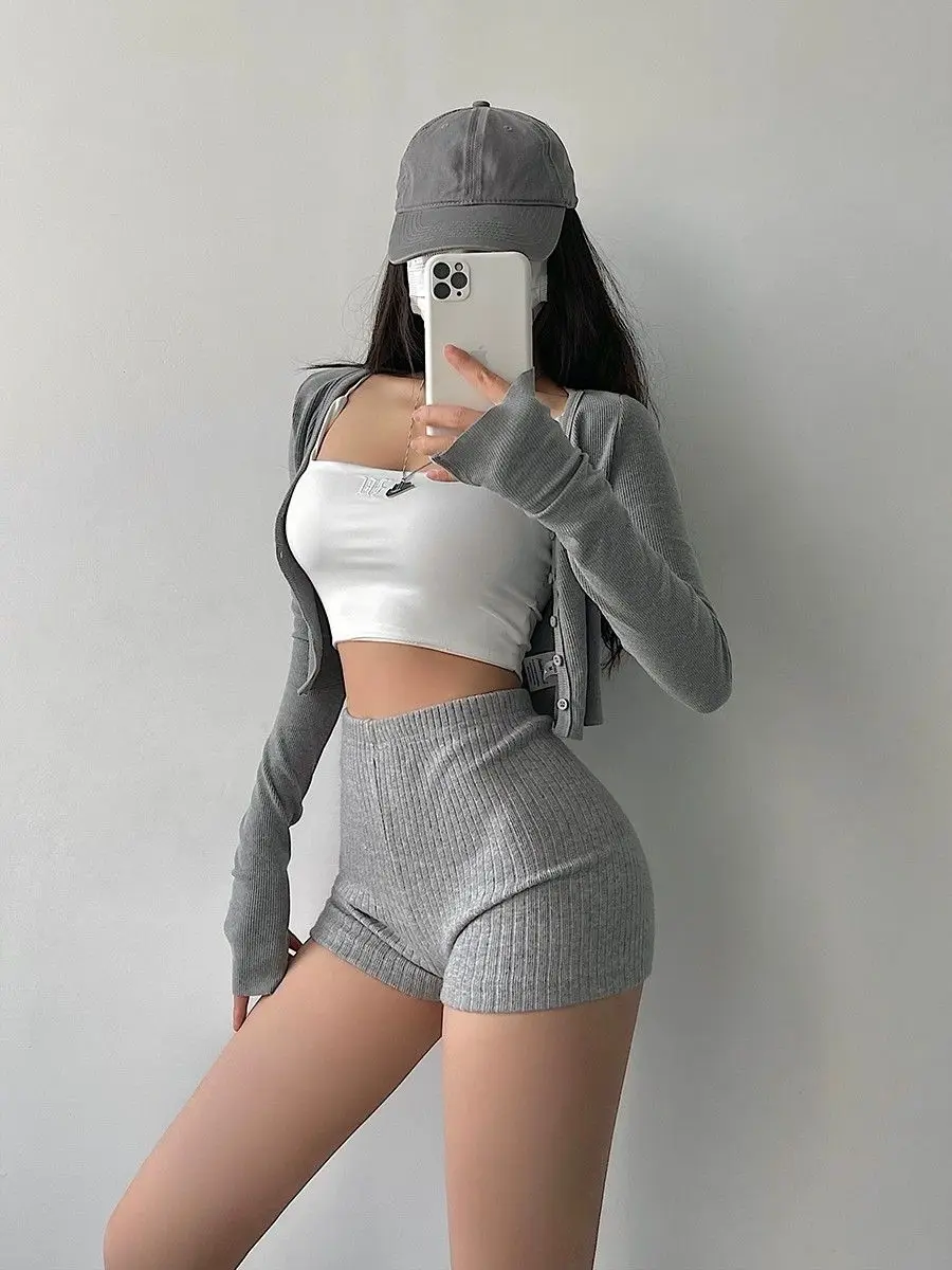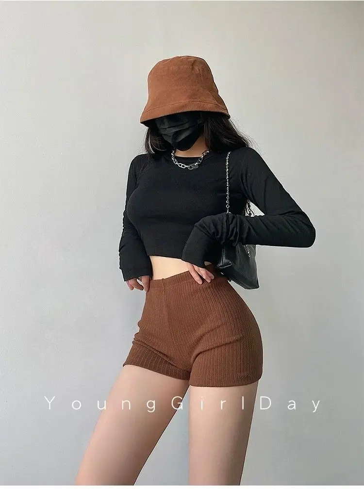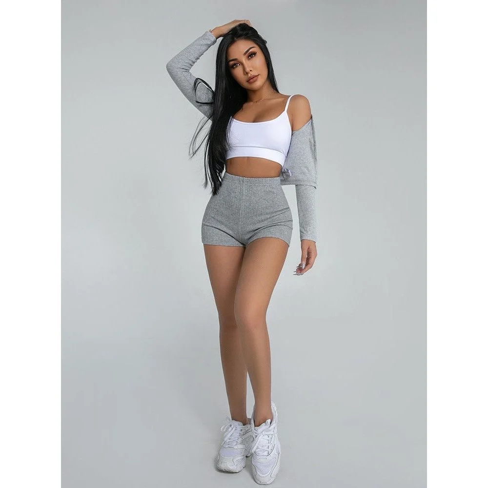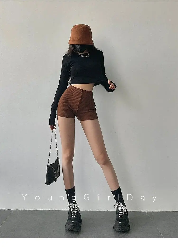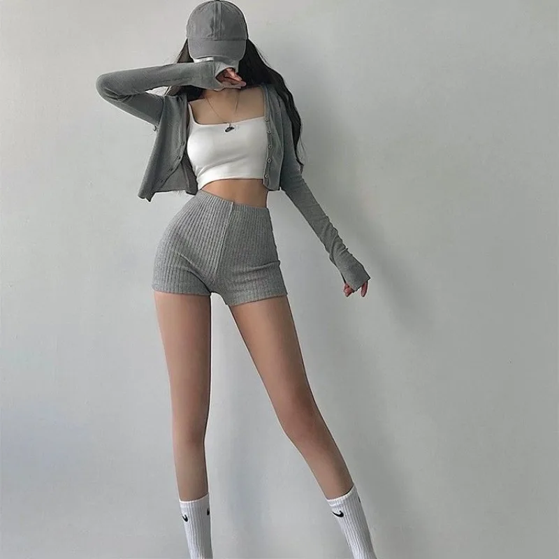 American Style Shorts Women High Waist Sheath Stretch Solid Knitting Hot Trousers Sexy Spice Girls Summer Simple Sporty Casual