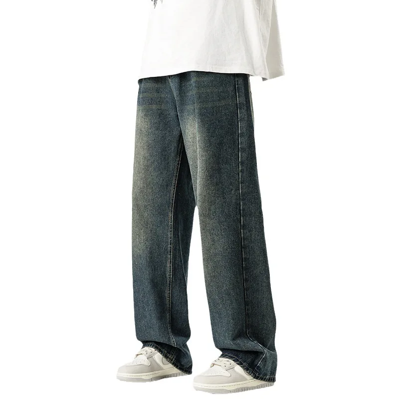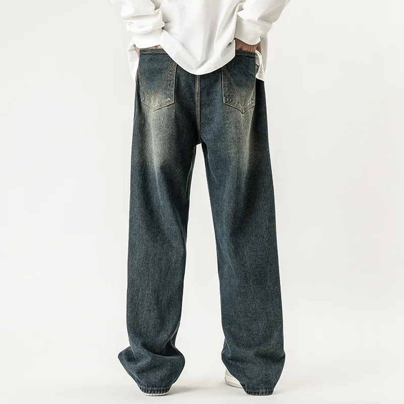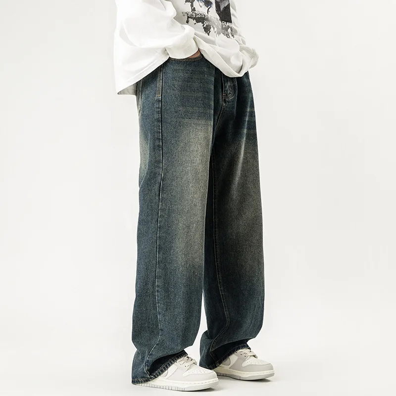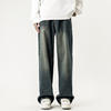 American trendy retro straight leg jeans men’s autumn and winter washed nostalgic color long pants baggy vintage jean