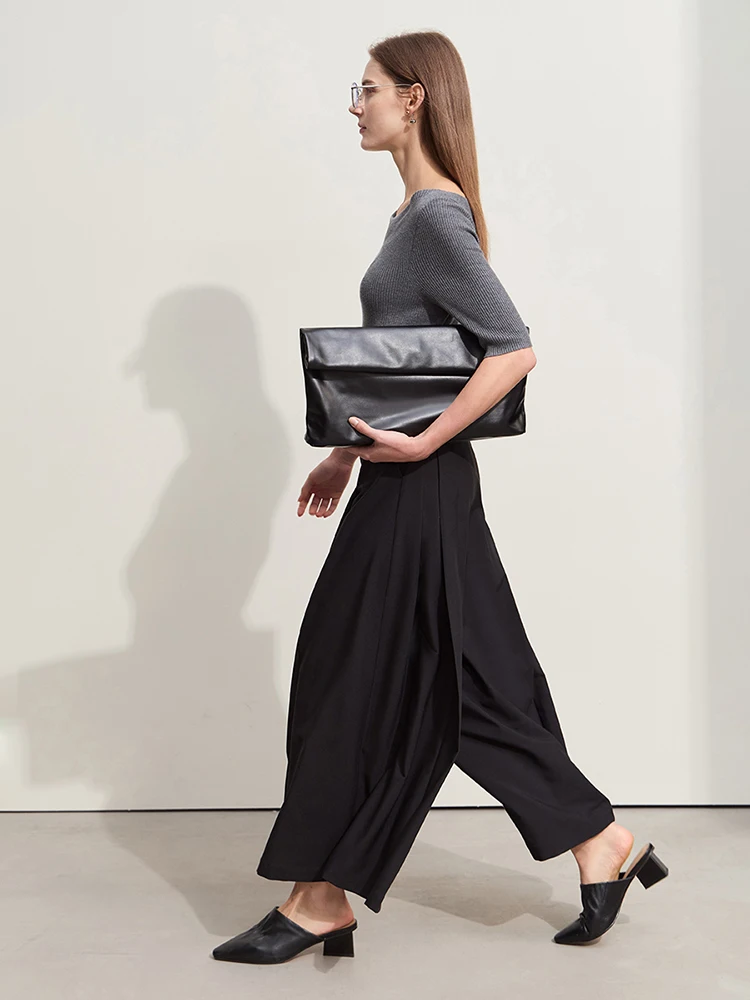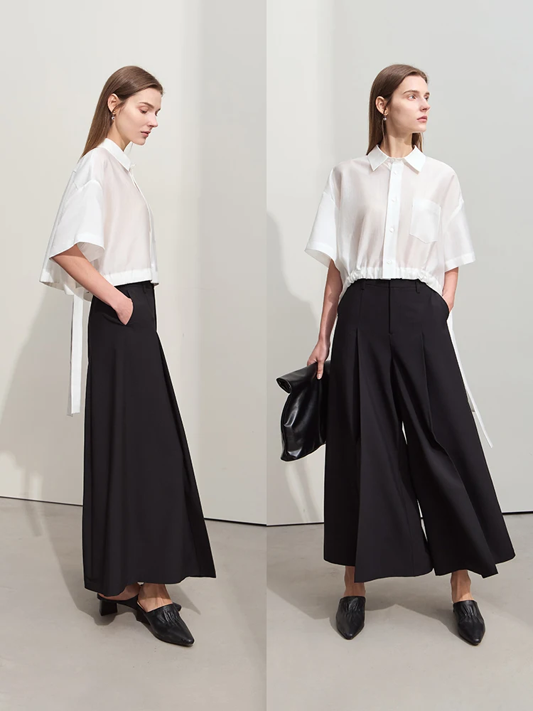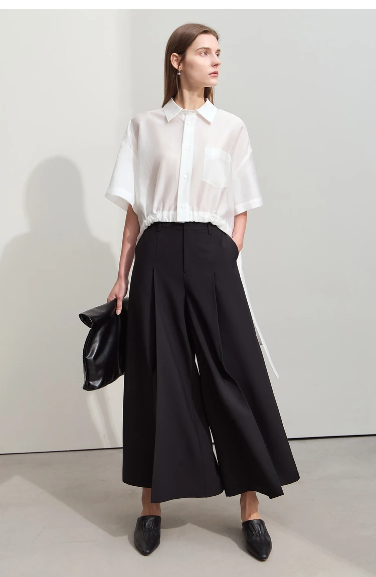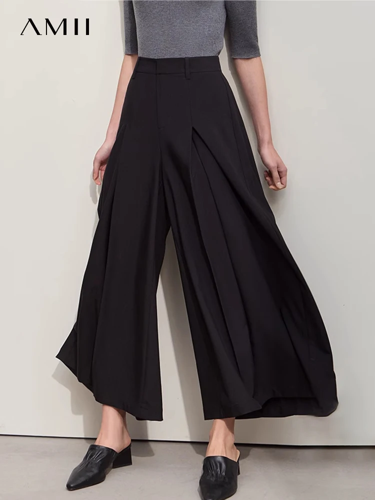 Amii Minimalism 2024 Summer New Women Casual Pants Commuter Handsome Loose Pleated Pants Female Black Wide-leg Trousers 12442041