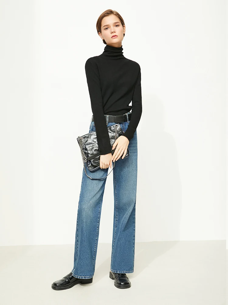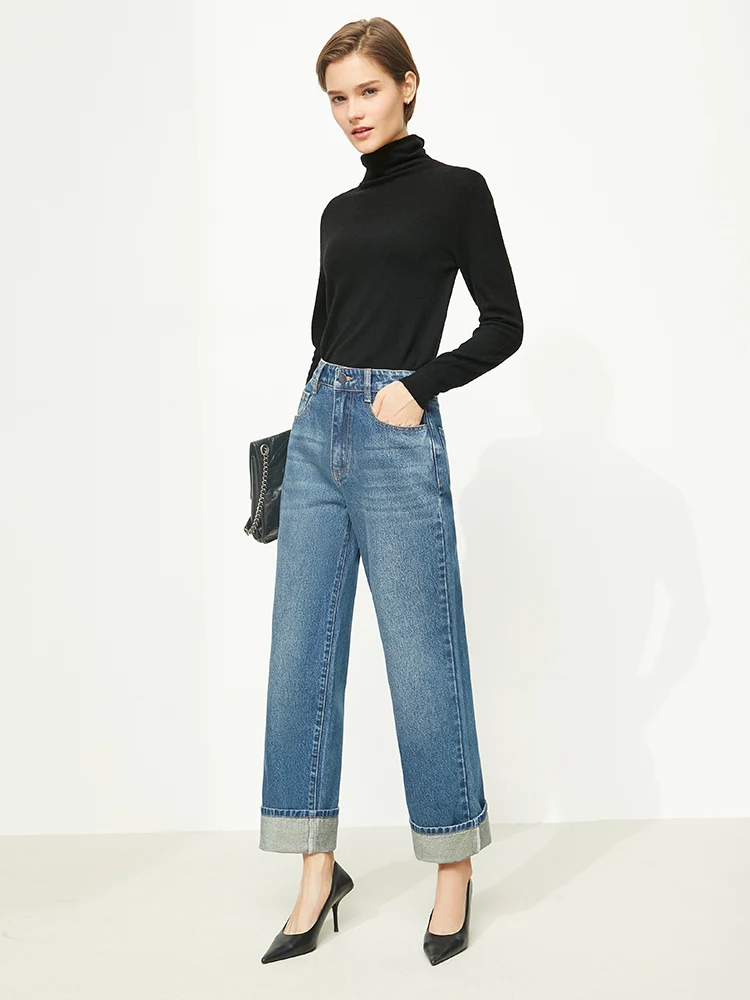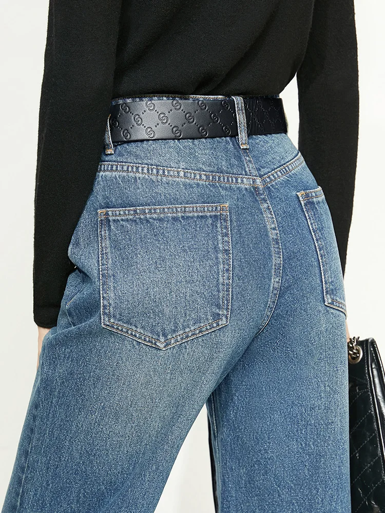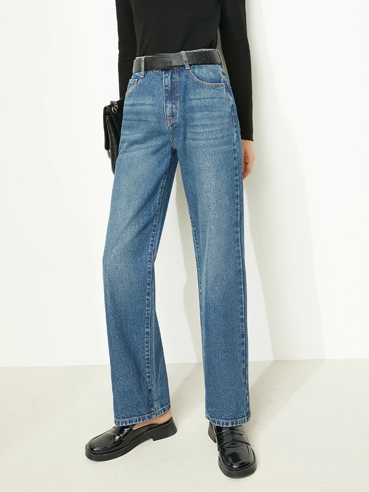 AMII Minimalism Hong Kong Style Women’s Jeans 2023 Autumn New Loose Wide Leg Pants High Waist Straight Casual Trousers 12343312