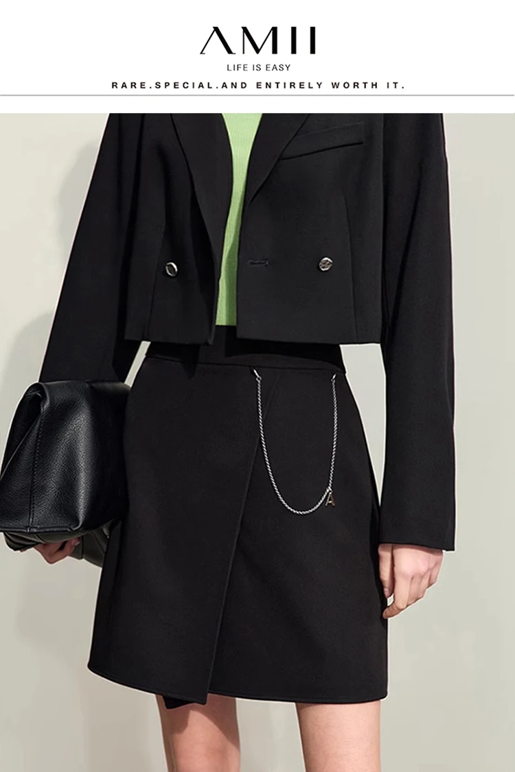 AMII Minimalism Women’s Casual Shorts Spring 2024 New Office Lady Removable Chain Female A-line Solid Shorts Skirts 12441073