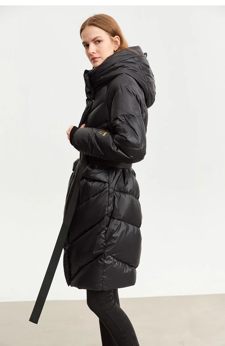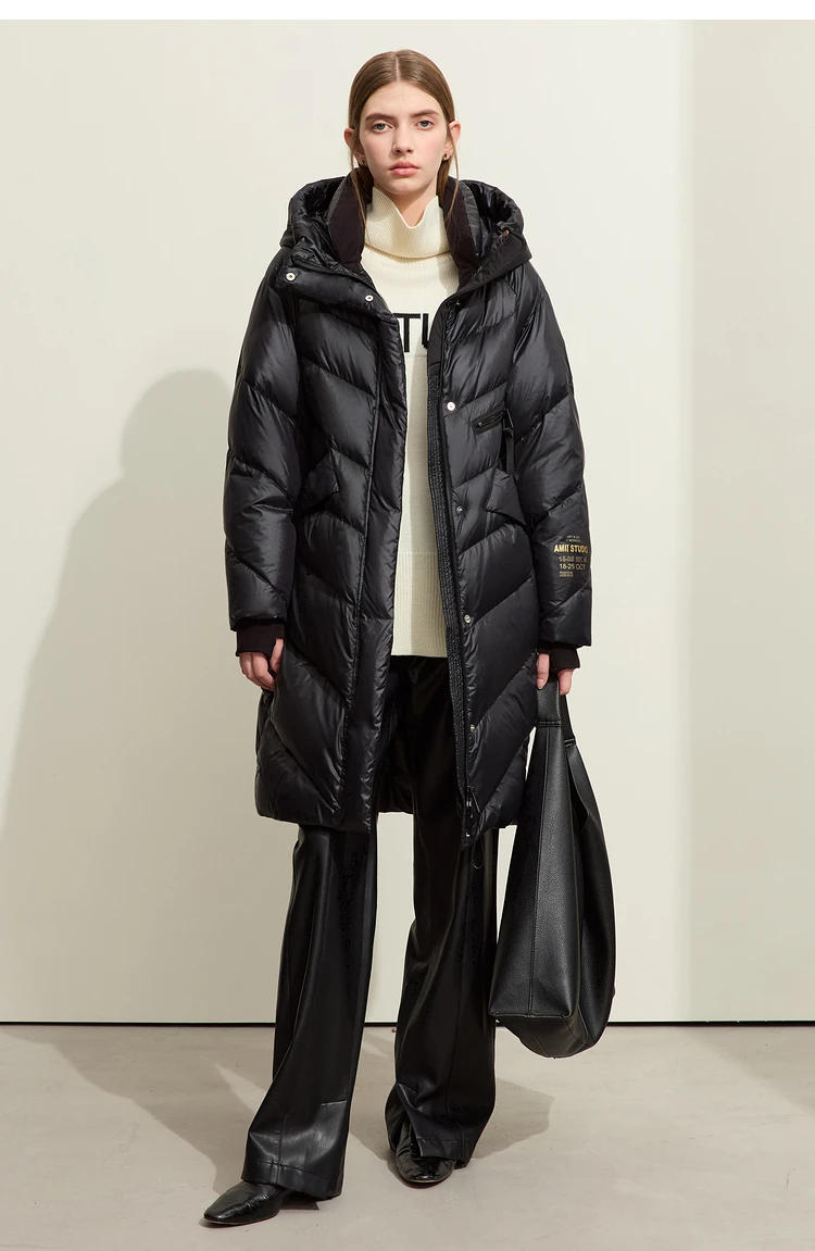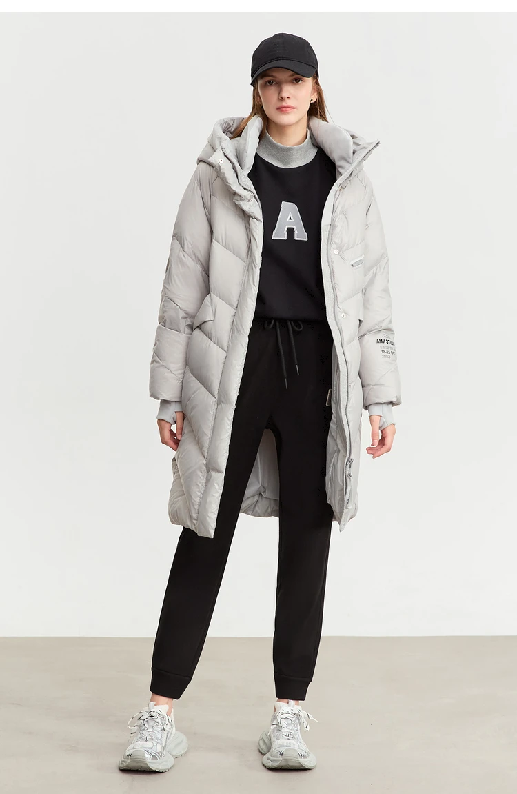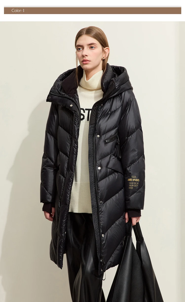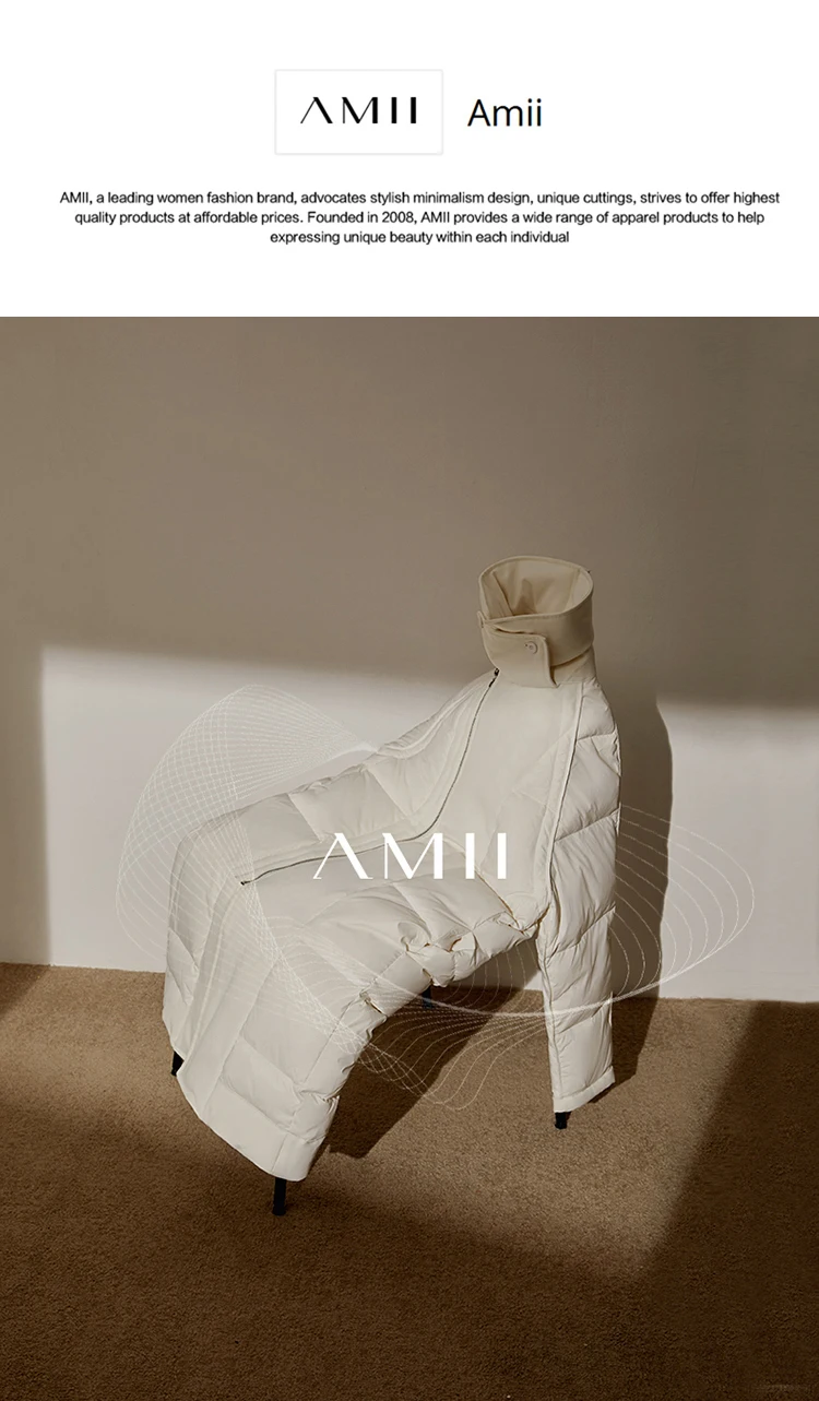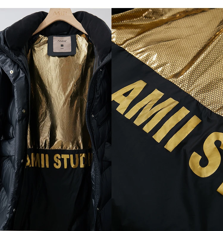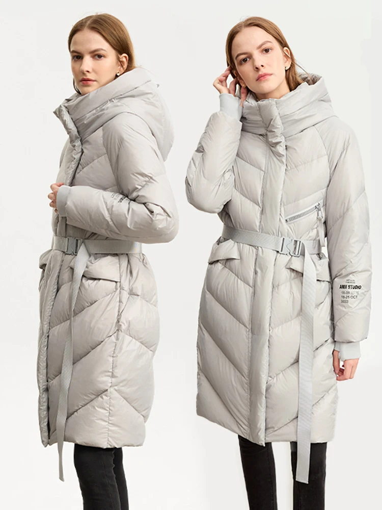AMII Minimalist 2023 Winter Down Puffer Coat For Women New Warm Hooded With Belt Outerwear Female Letter Print Top 12324011
