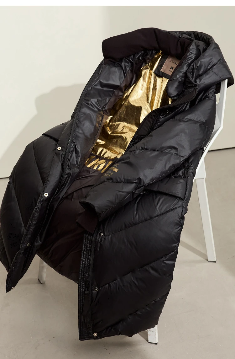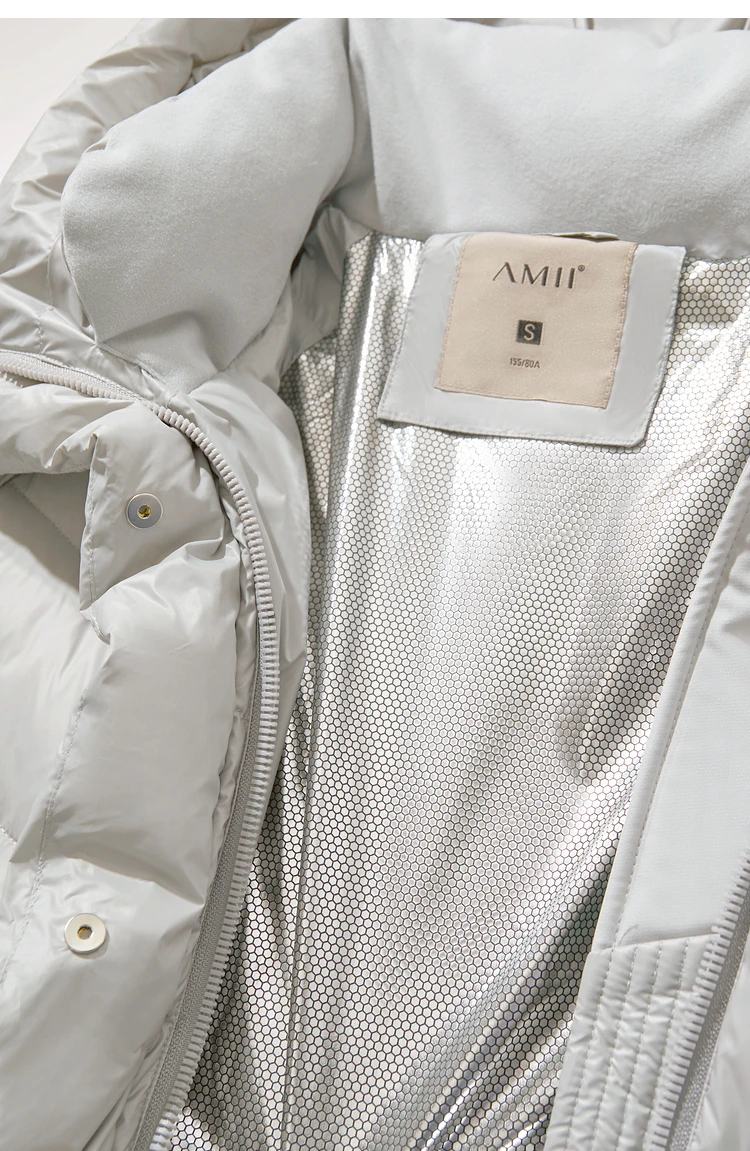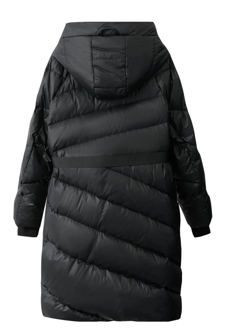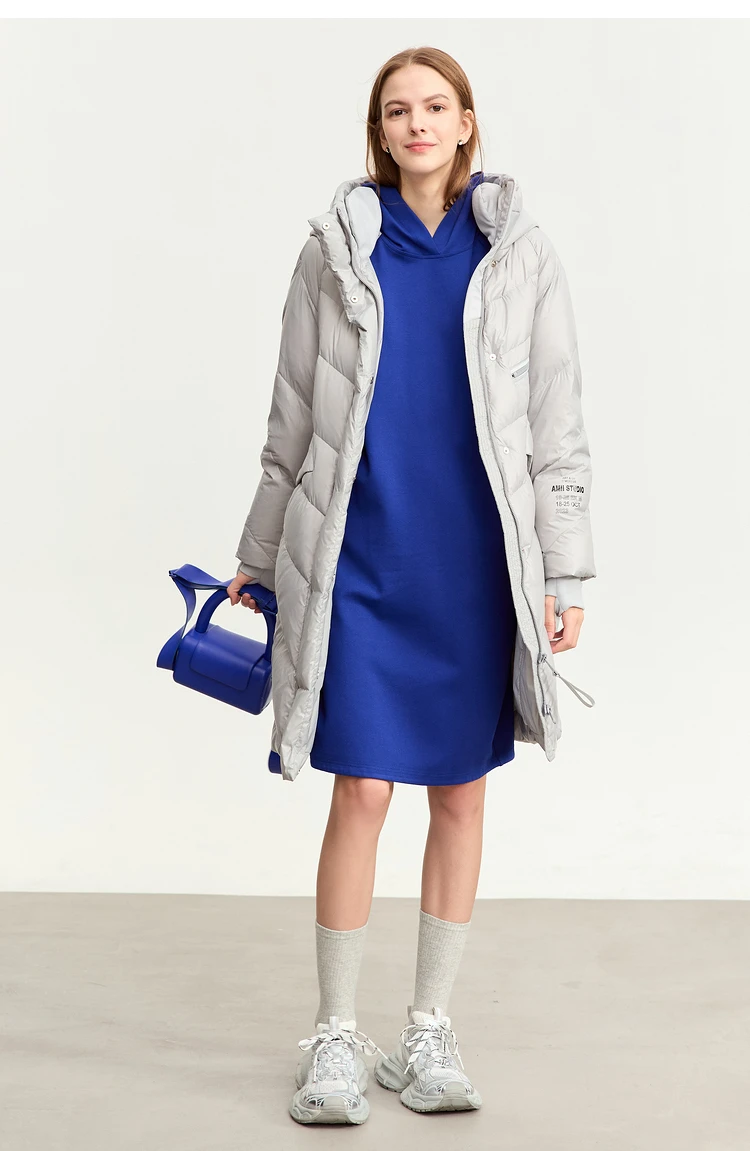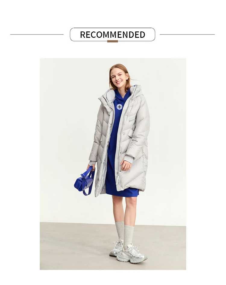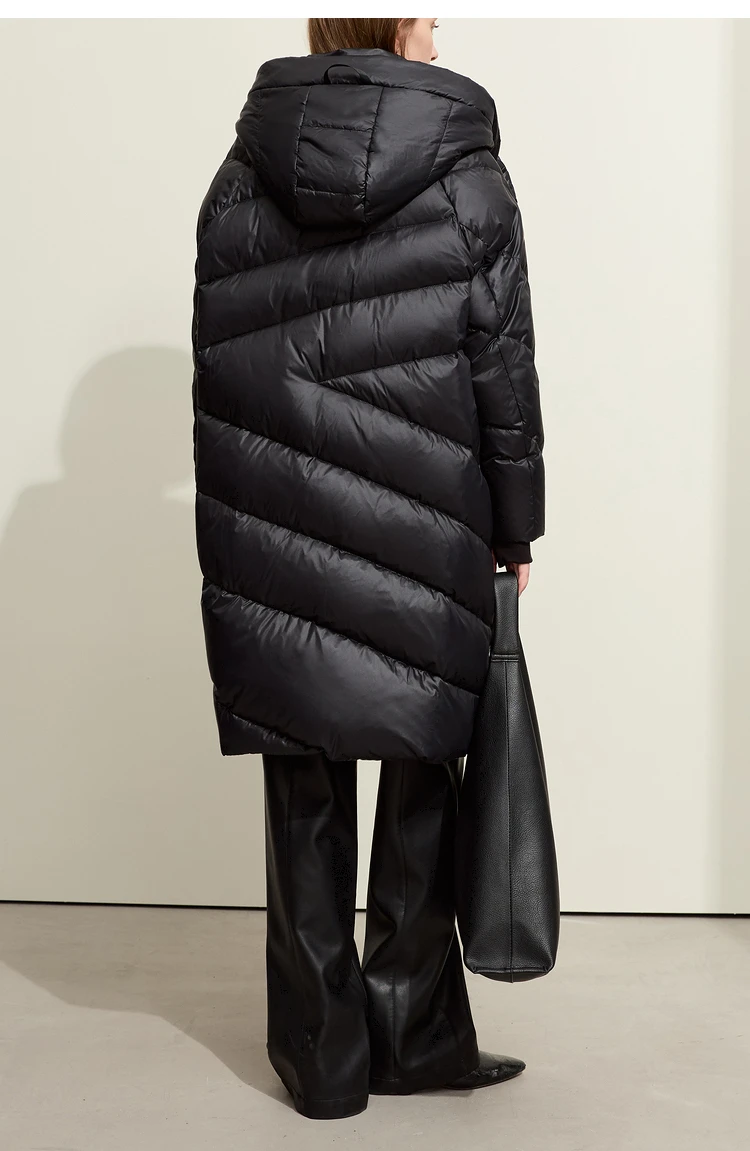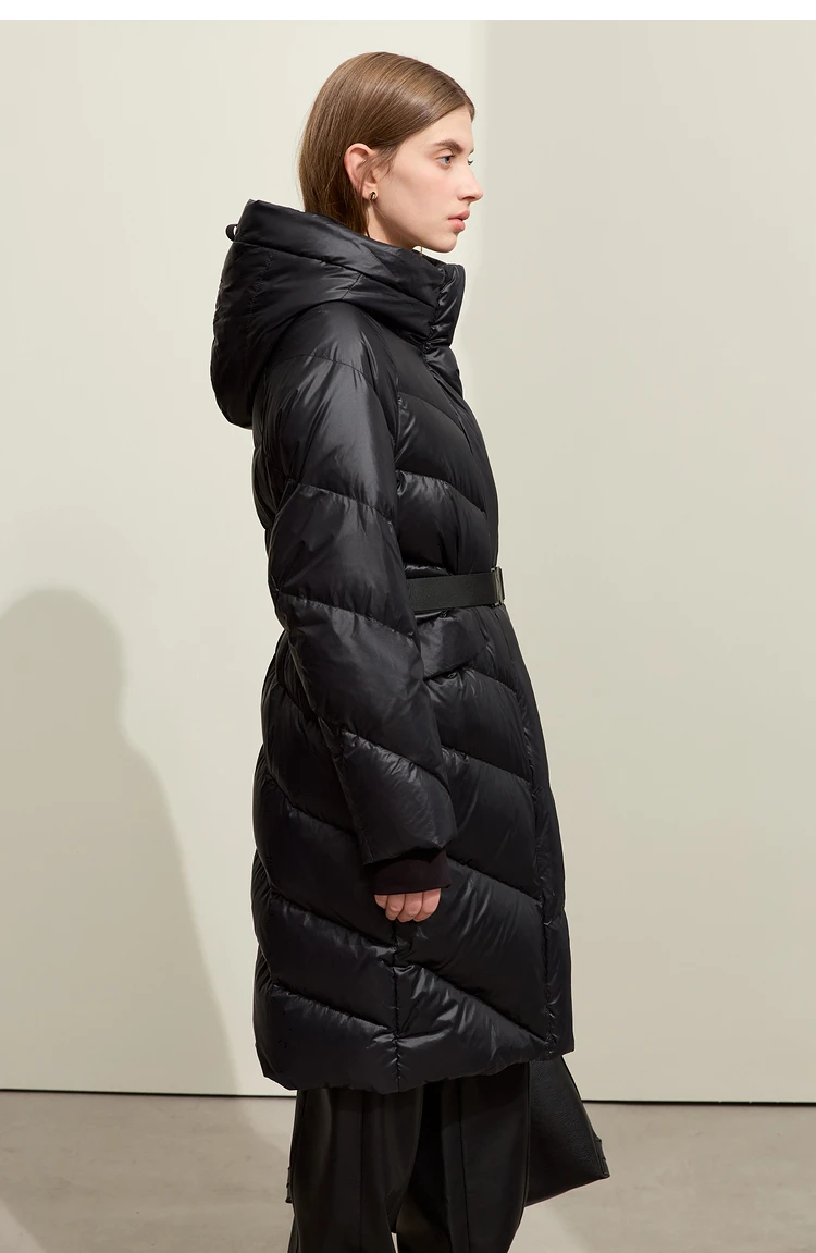 AMII Minimalist 2023 Winter Down Puffer Coat For Women New Warm Hooded With Belt Outerwear Female Letter Print Top 12324011