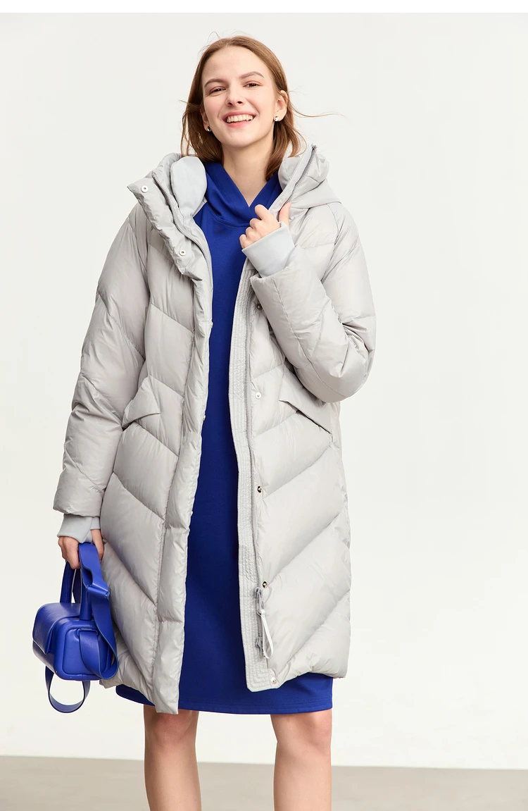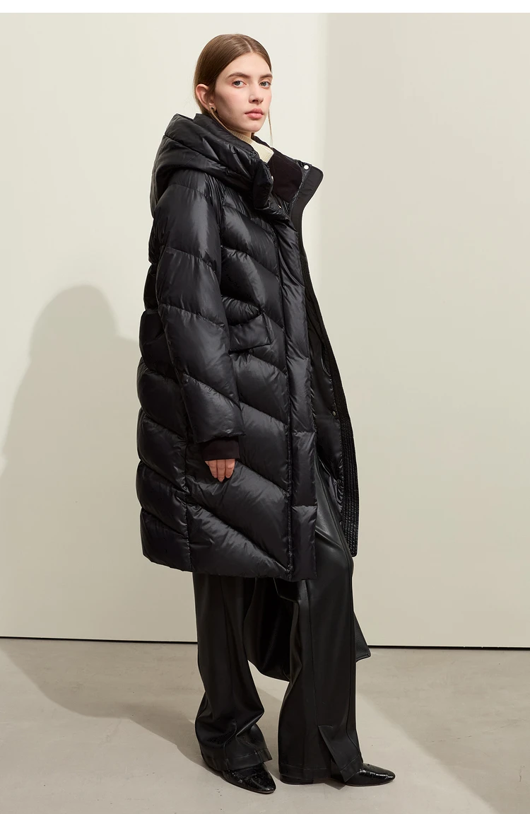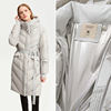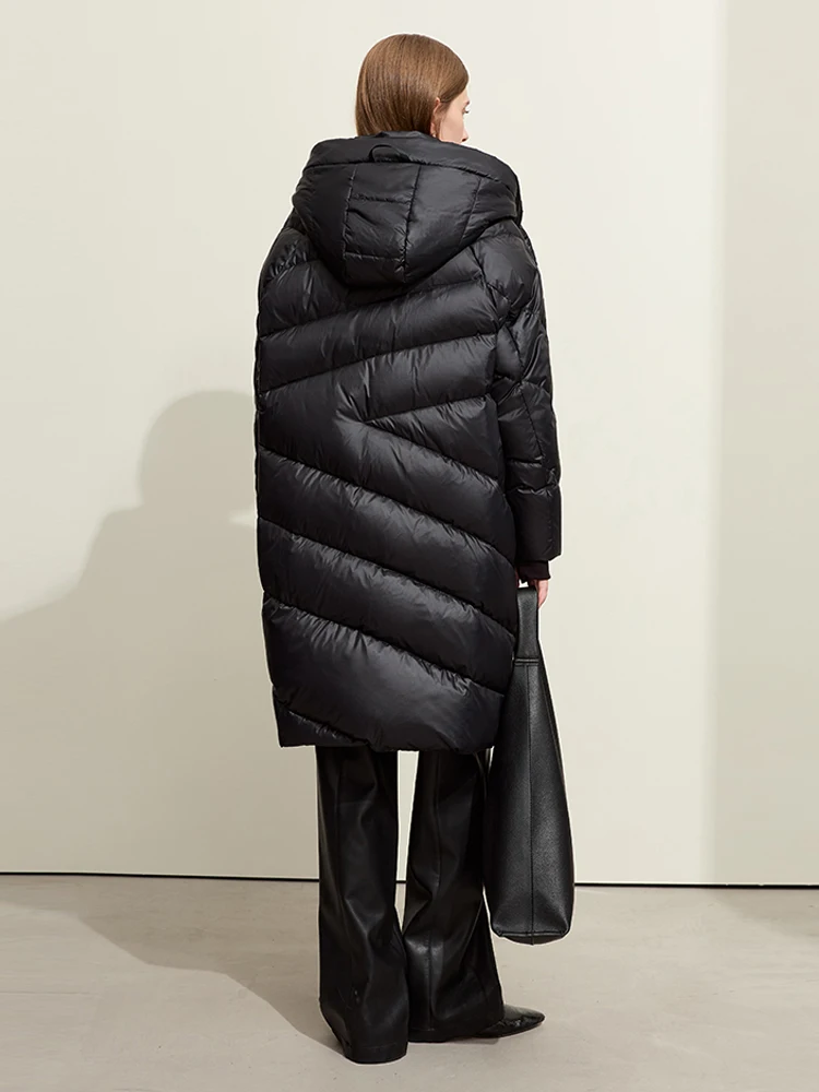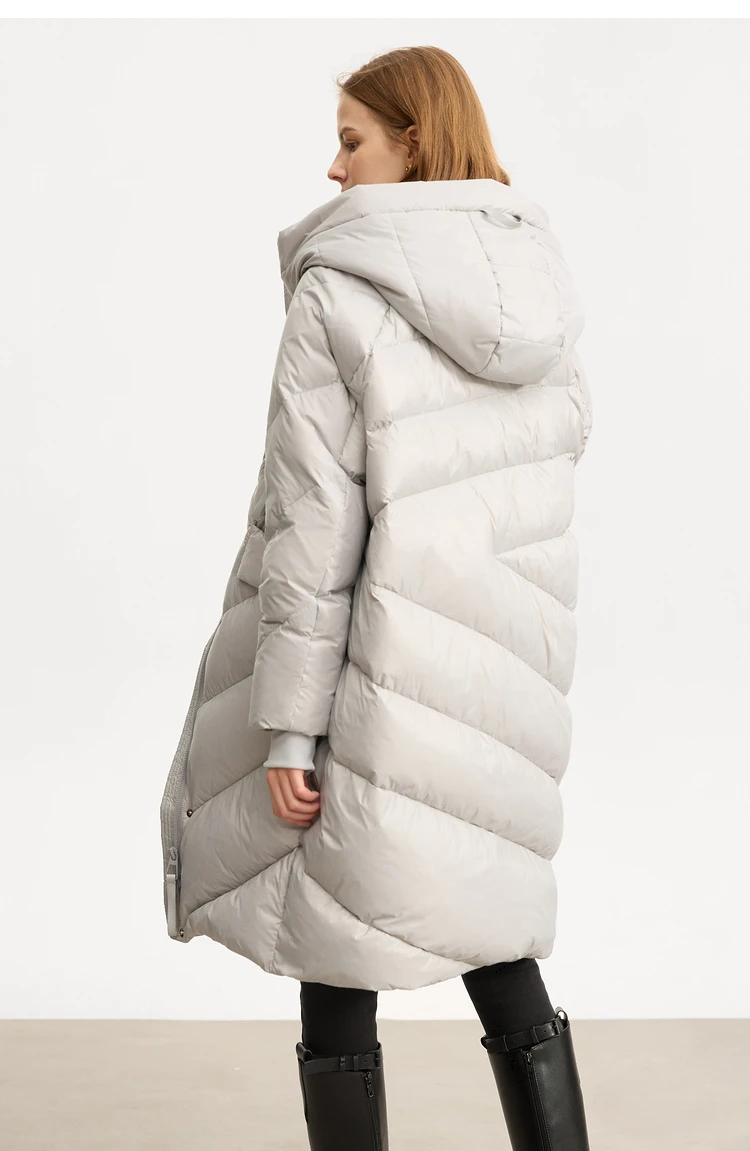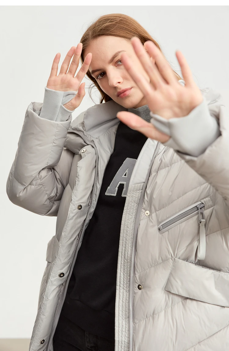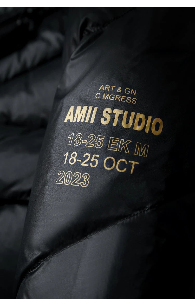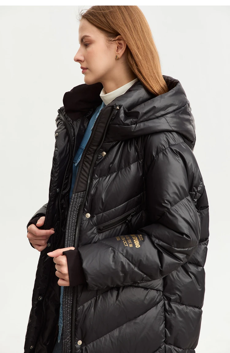 AMII Minimalist 2023 Winter Down Puffer Coat For Women New Warm Hooded With Belt Outerwear Female Letter Print Top 12324011