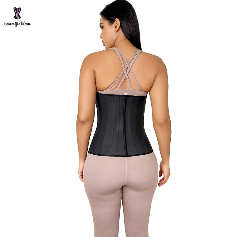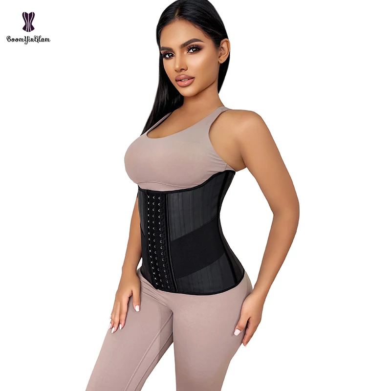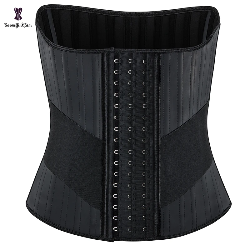 Angle-Wing Shape Chest Binder Bustiers Black 3 Hook 16 Buckles 30CM Shinny Latex Waist Trainer Plus Size Corset For Women
