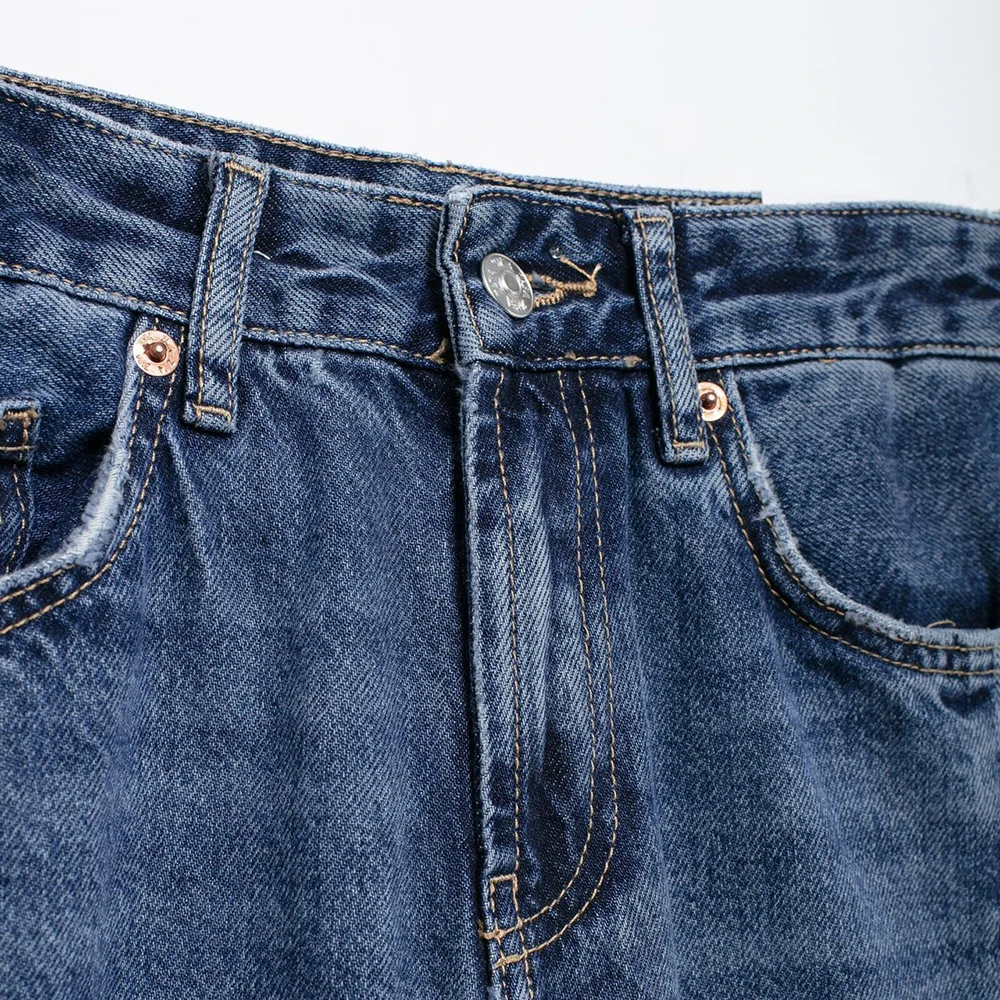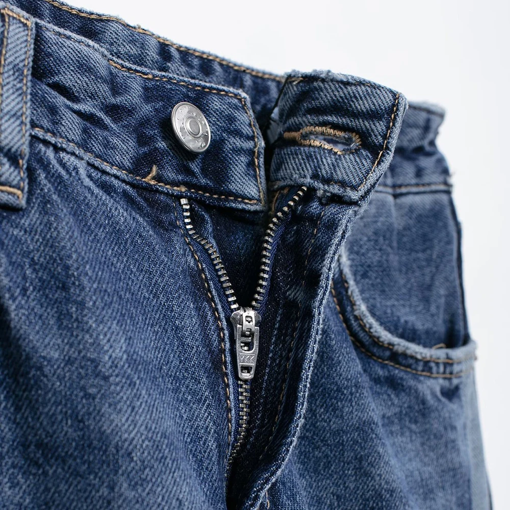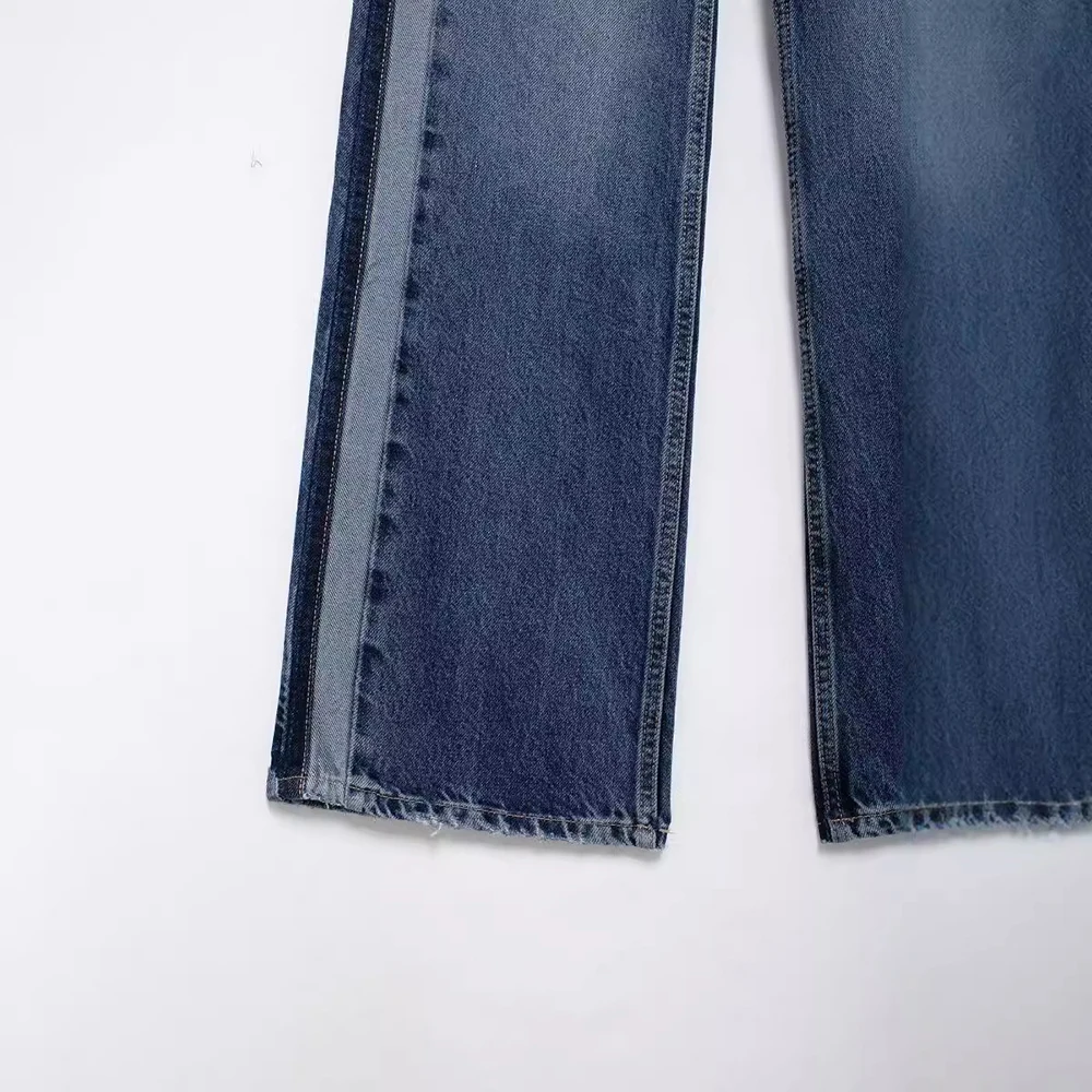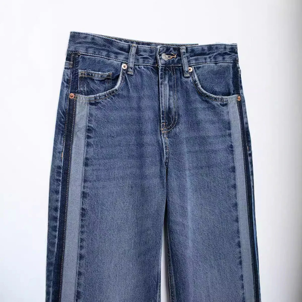 Aoaiiys Baggy Jeans for Women Fashion Blue Denim Pants Patchwork Zipper Pockets Trousers High Street Wide Leg Loose Basic Jeans