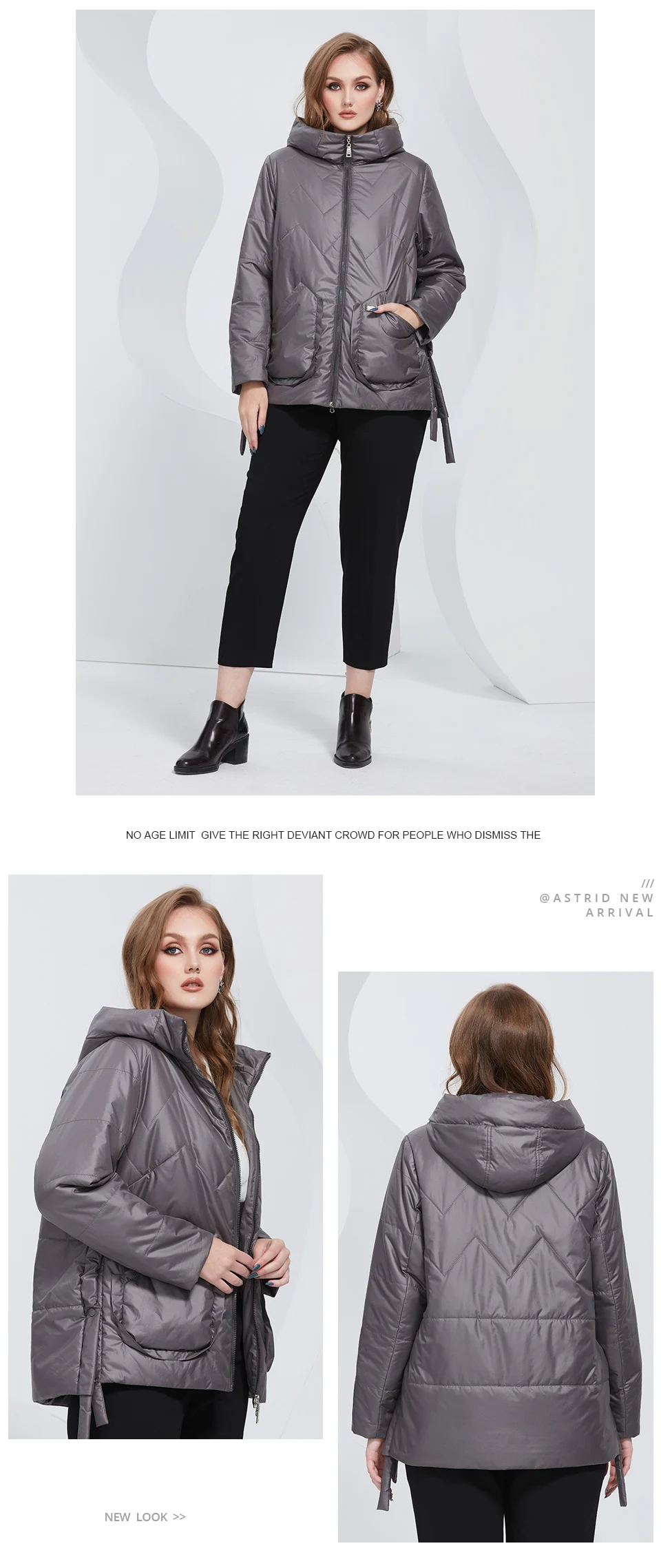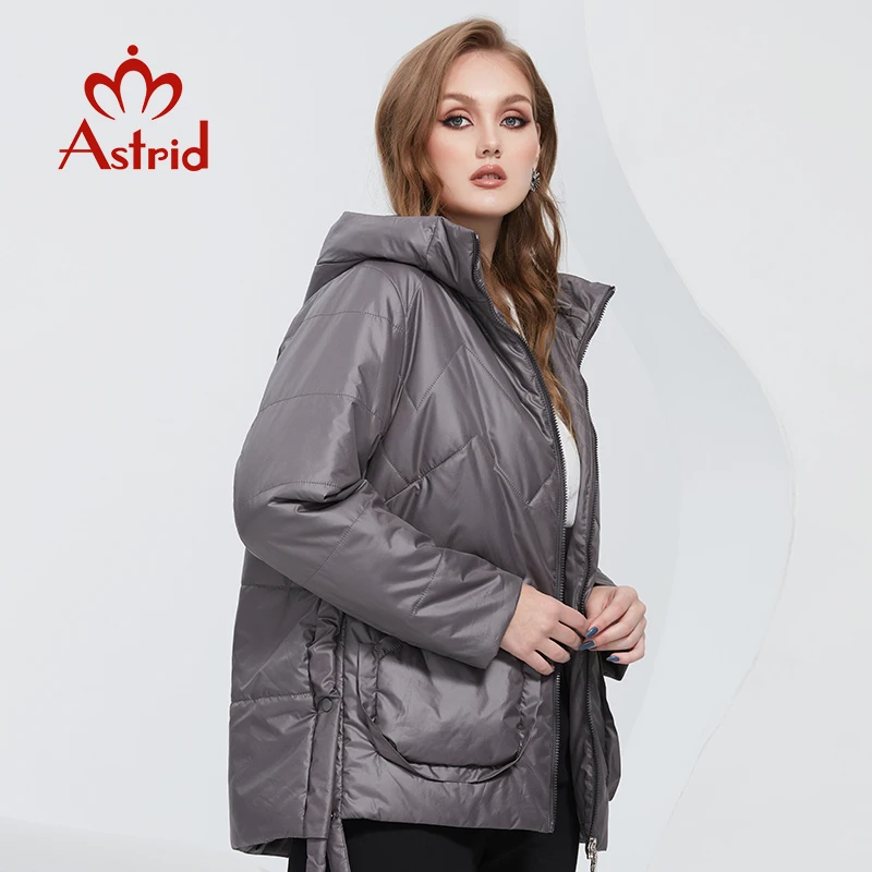 Astrid 2022 Spring Women Parkas Oversize Short Grey Padded Down Coats Hooded Women’s Jacket Fashion Outerwear Quilted AM-10075