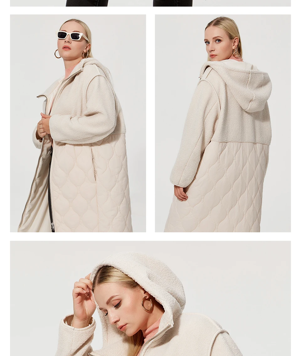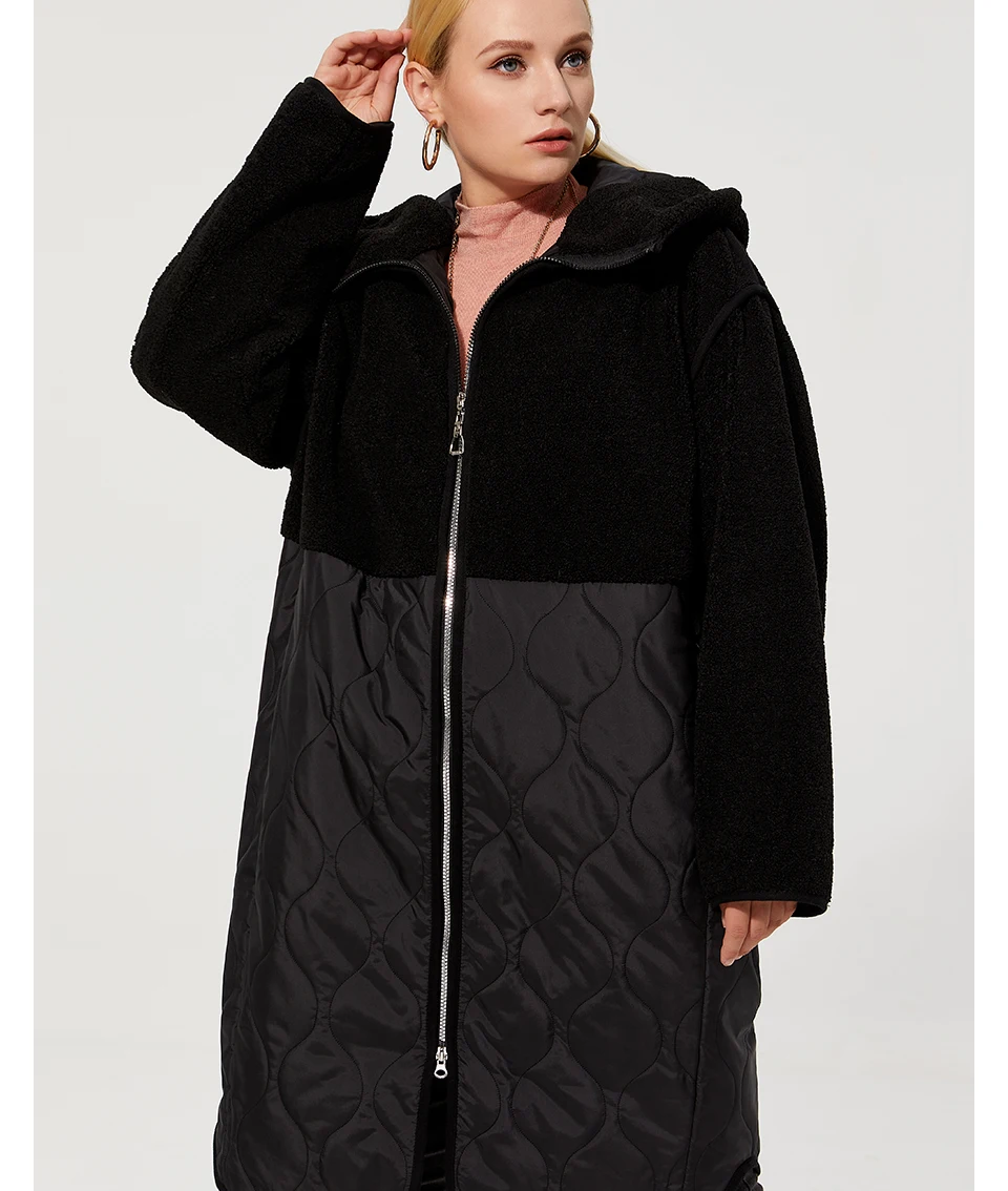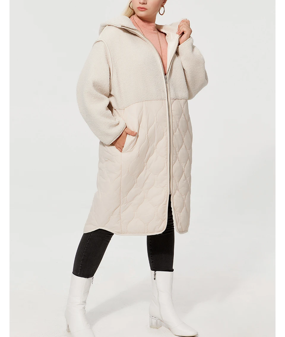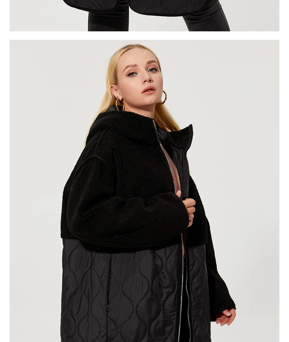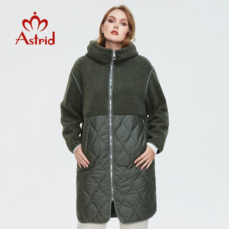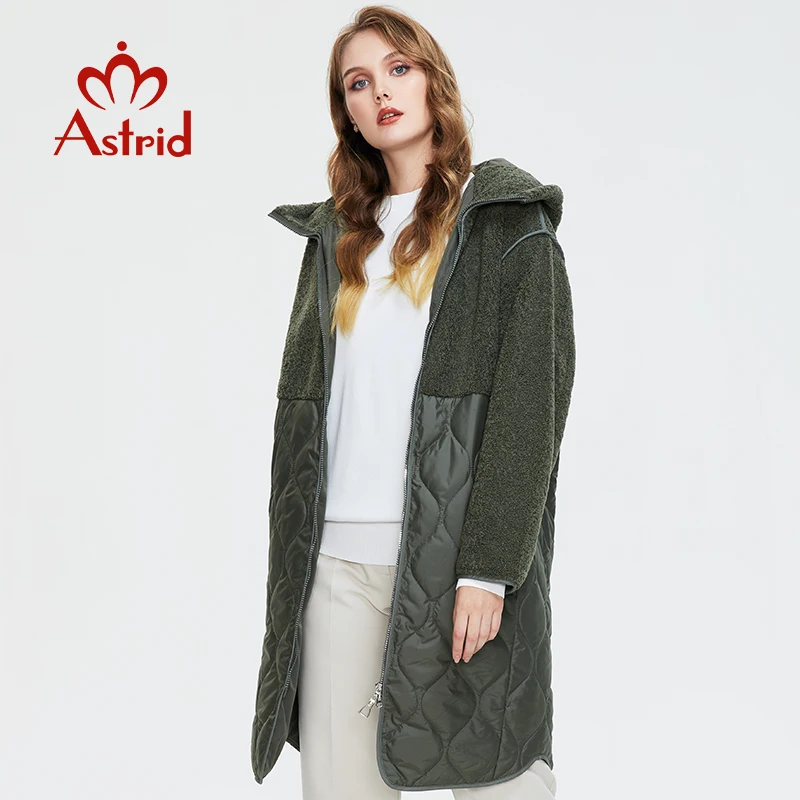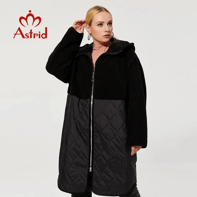Astrid 2022 Women’s autumn winter coat faux Fur tops Fashion stitching down jacket Hooded Oversize parkas Women coat AM-7542