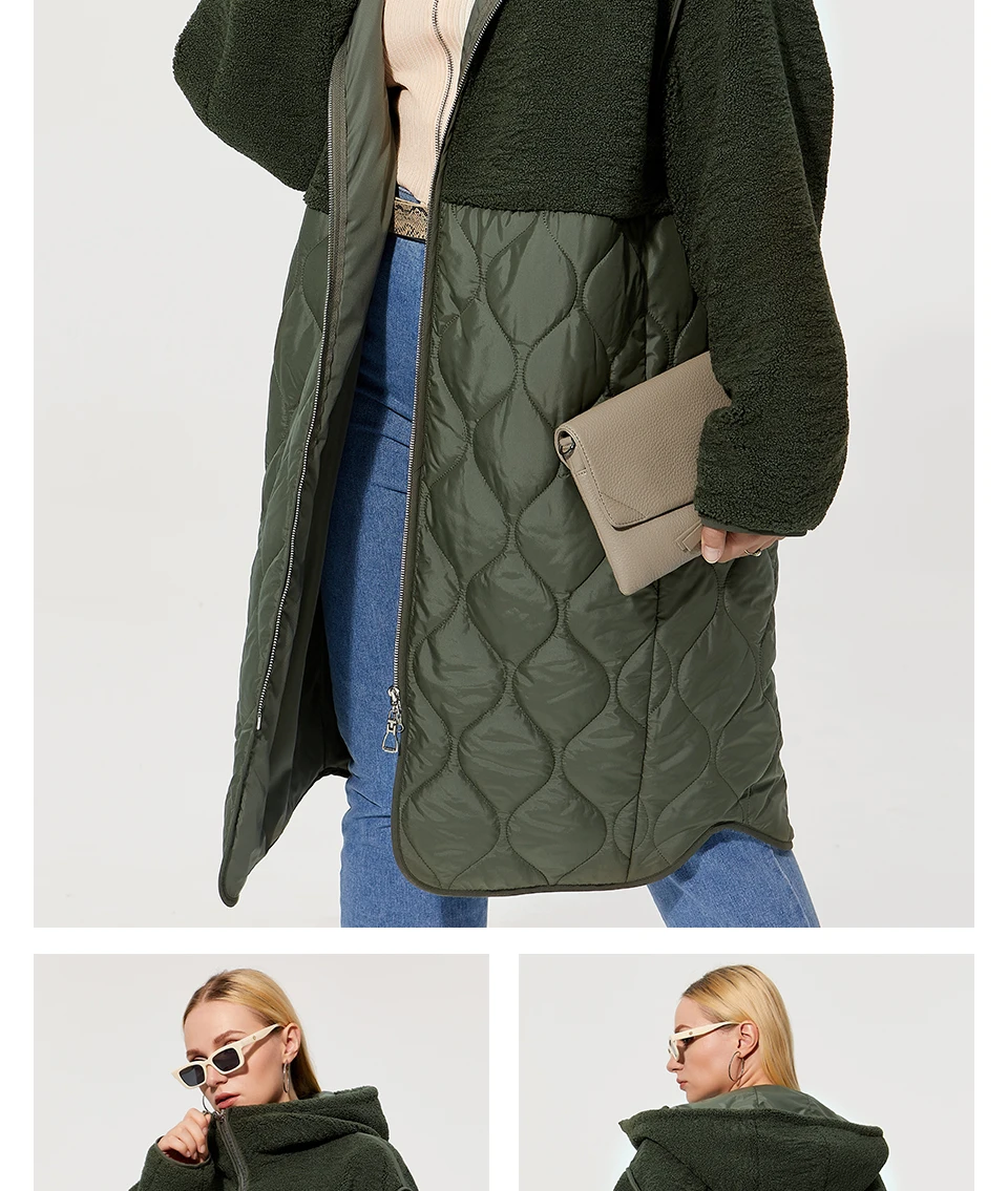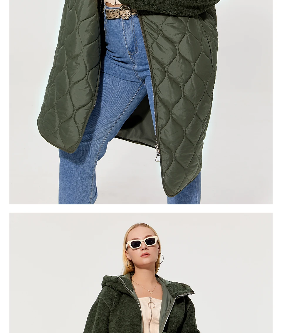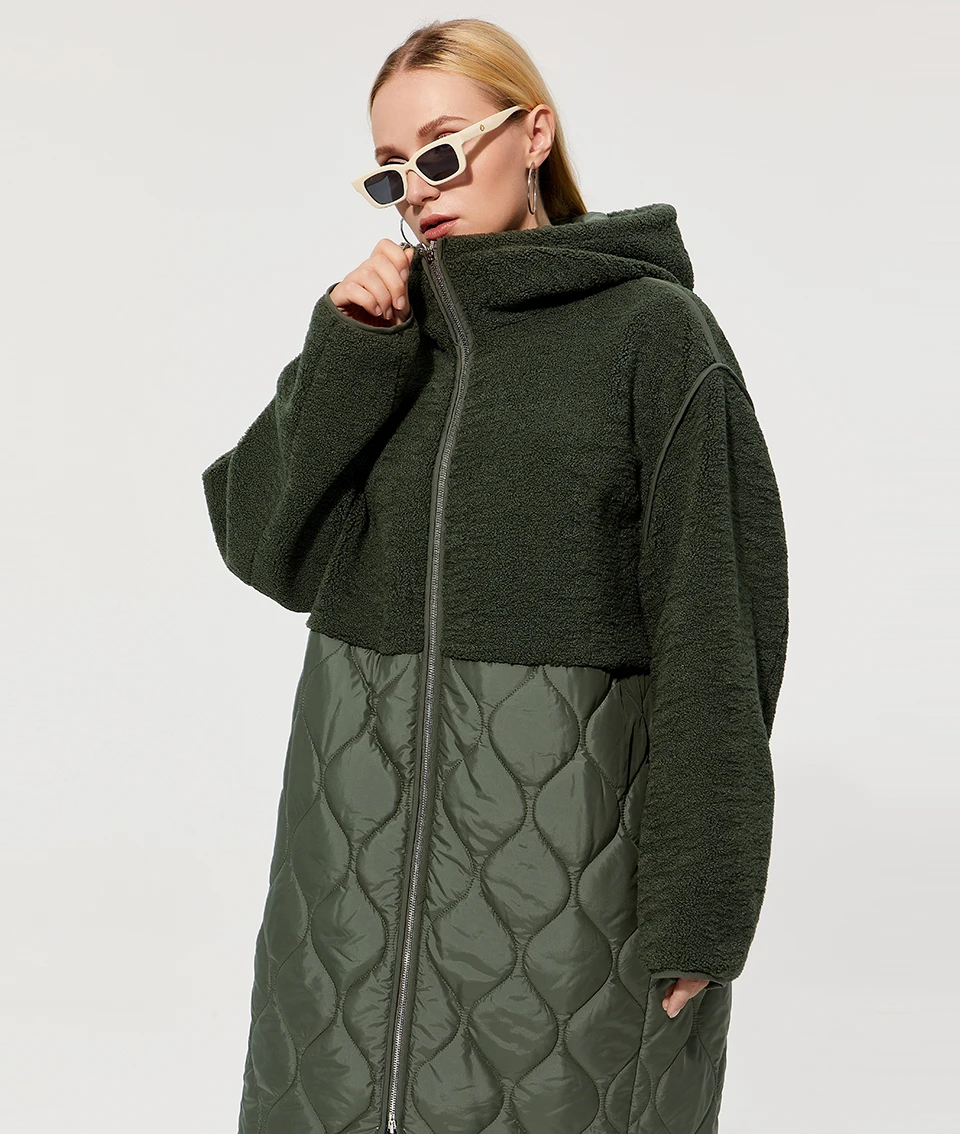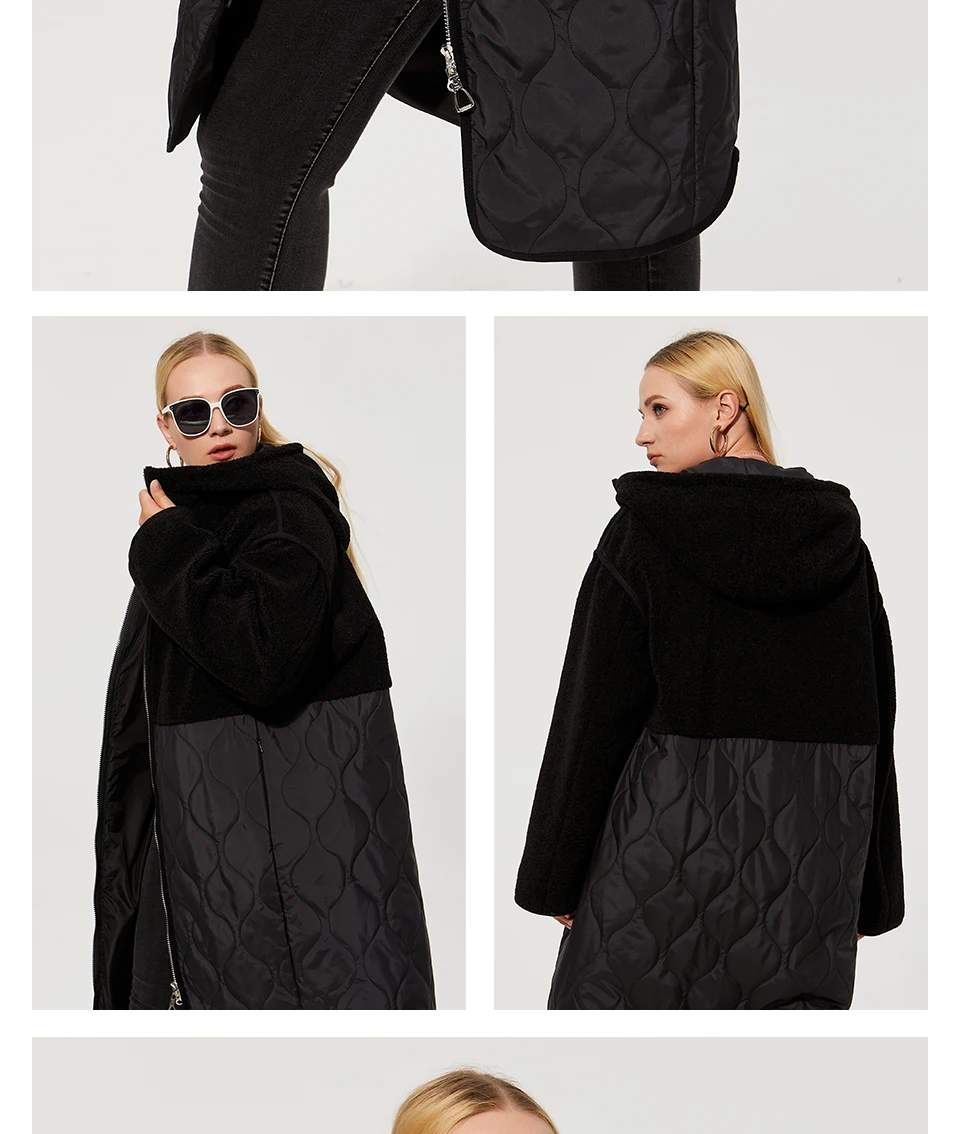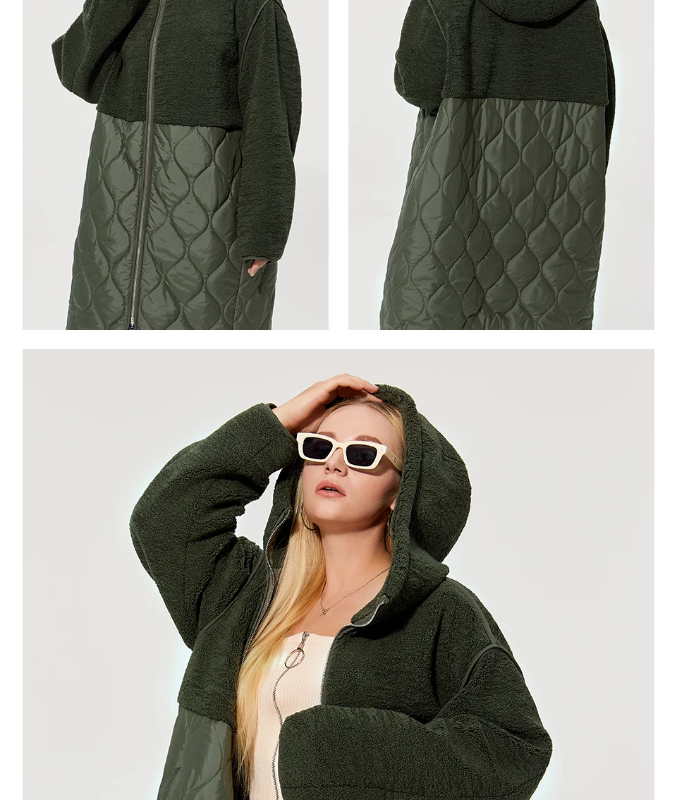 Astrid 2022 Women’s autumn winter coat faux Fur tops Fashion stitching down jacket Hooded Oversize parkas Women coat AM-7542