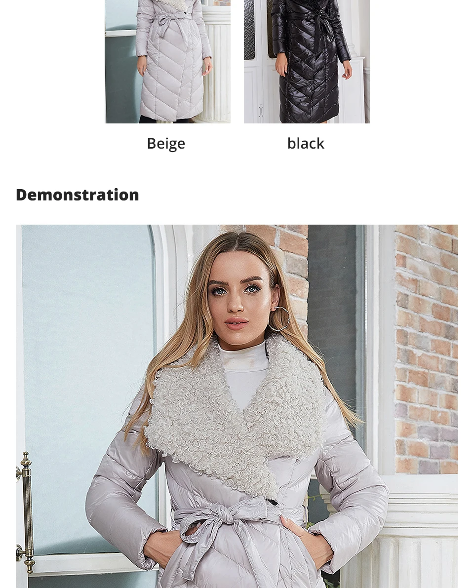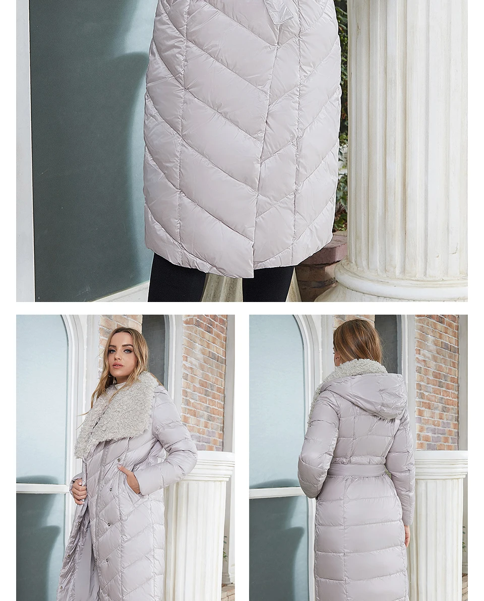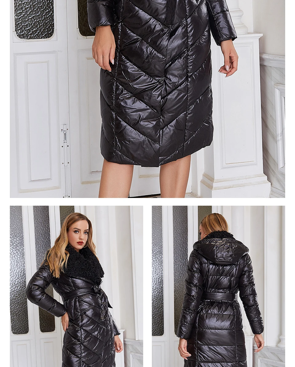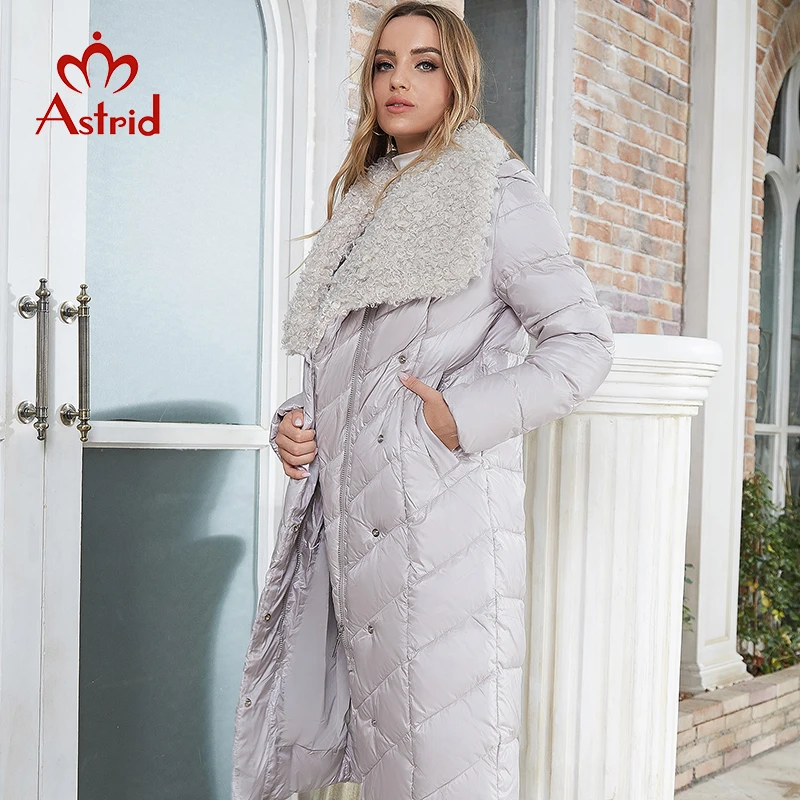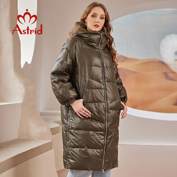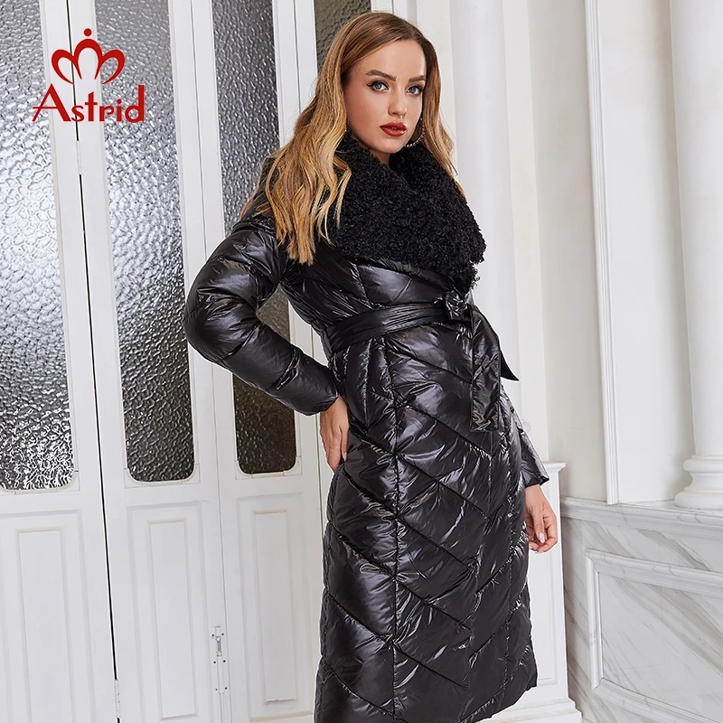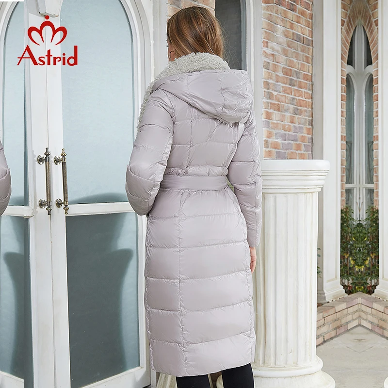 Astrid 2023 Women’s Jacket Female faux Fur lapel Hooded Elegant Tie Belt stitching down jacket Oversize parkas Women coat 8690
