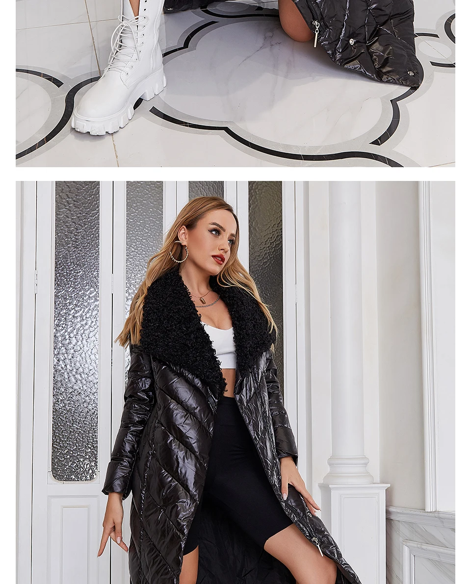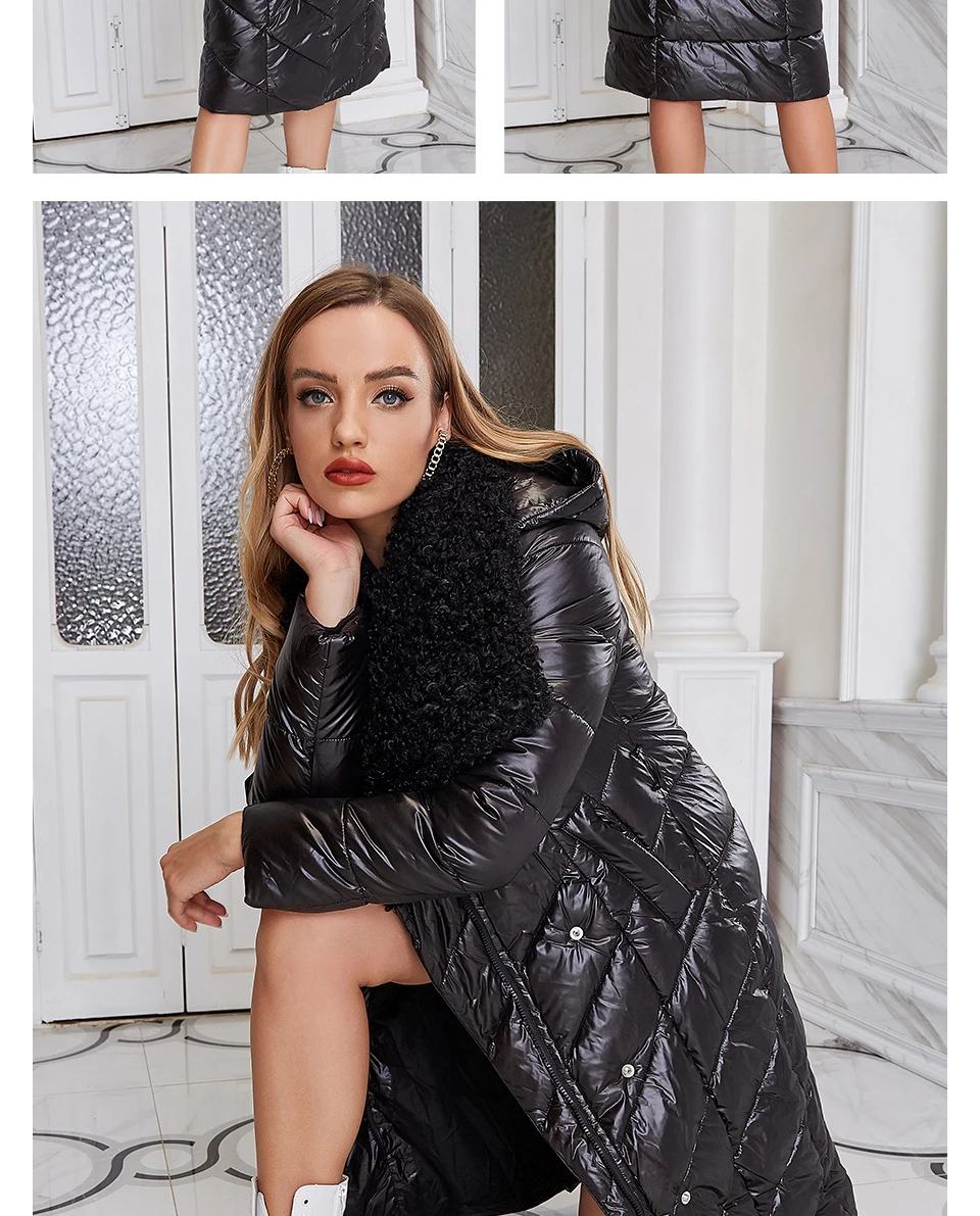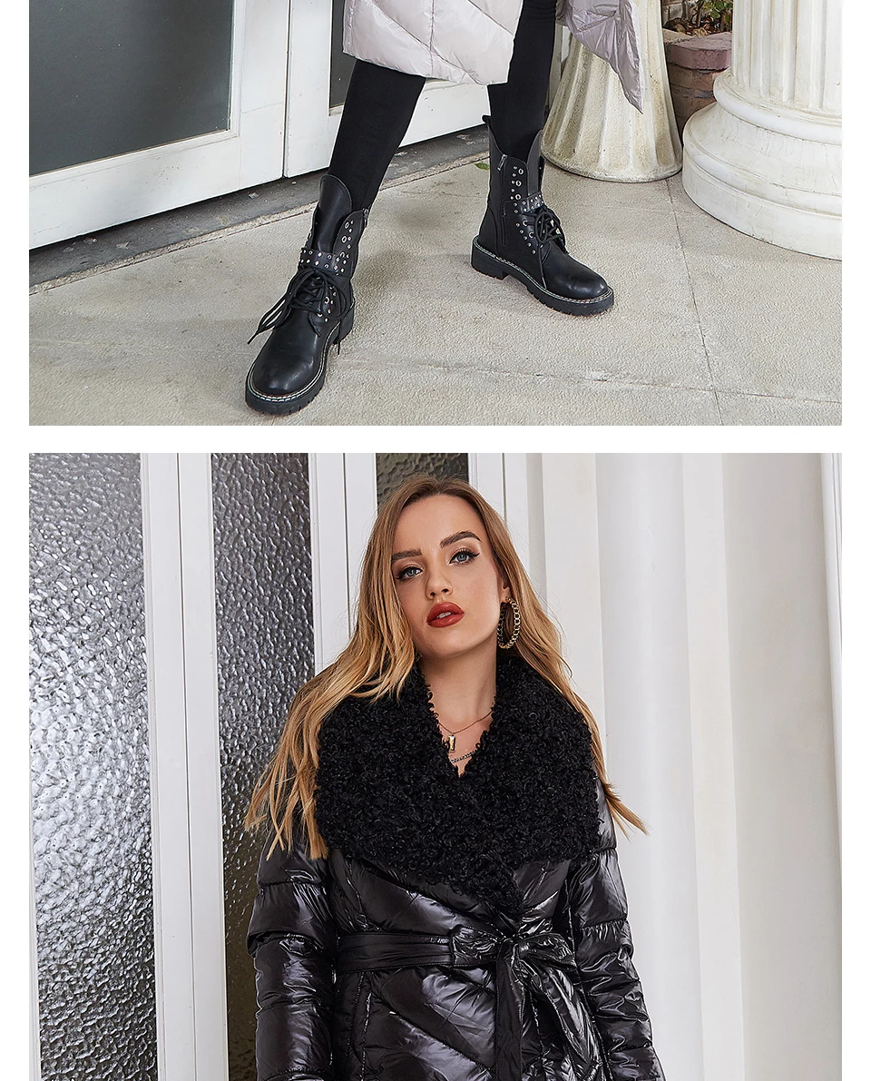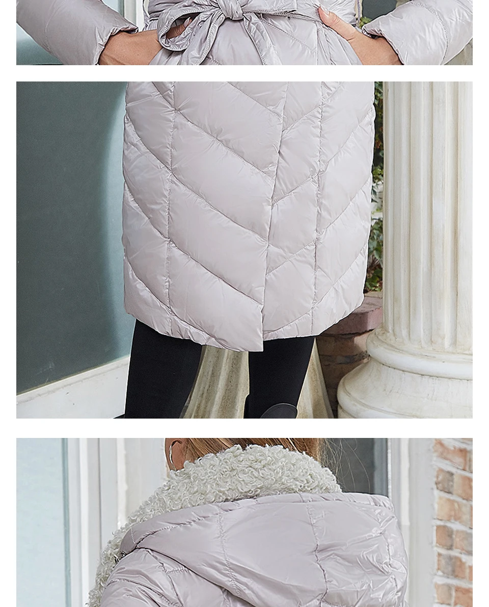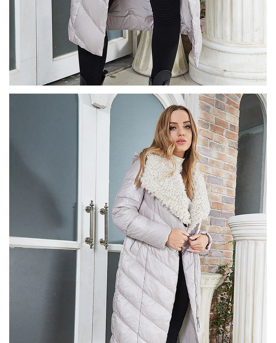Astrid 2023 Women’s Jacket Female faux Fur lapel Hooded Elegant Tie Belt stitching down jacket Oversize parkas Women coat 8690