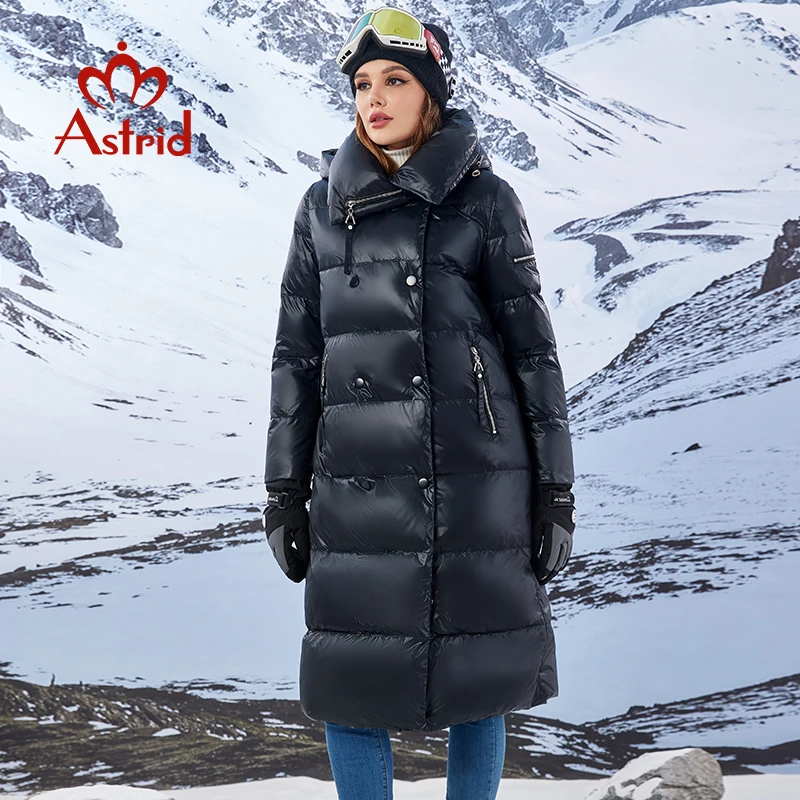 Astrid Women’s Winter Jacket Hooded Double Breasted Long Parkas Warm Padding Puffer Quilted Coat Down Jacket Thick Snow Wear