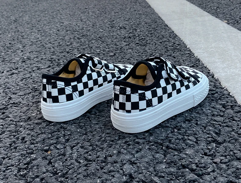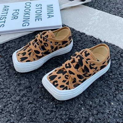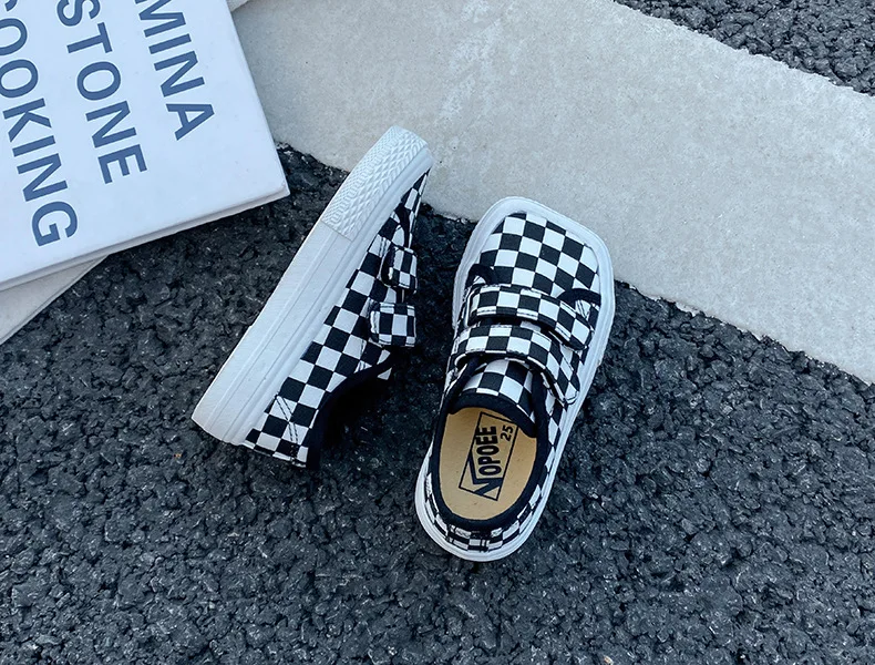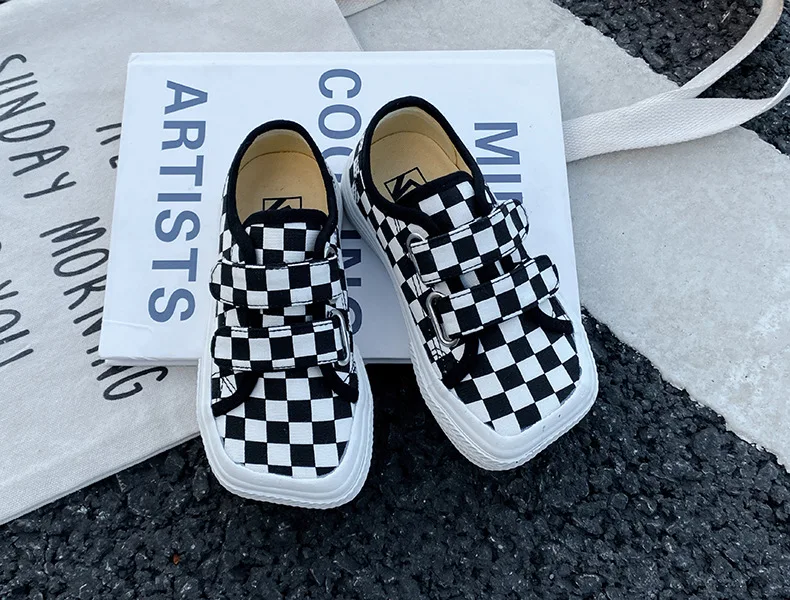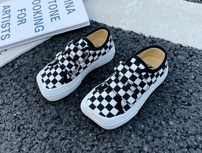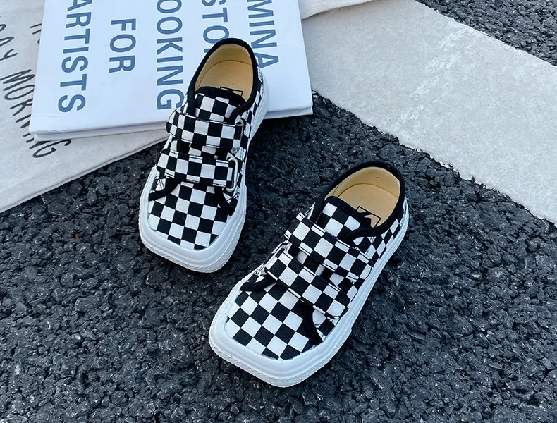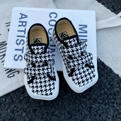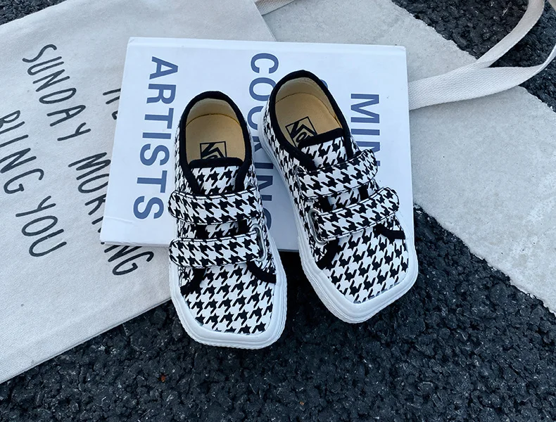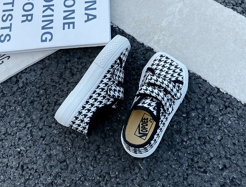 Autumn Girls Boys Canvas Shoes Soft Sports Sneaker Black Kids Running Sneakers Zebra Lattice Prints Square Toe Soft Children
