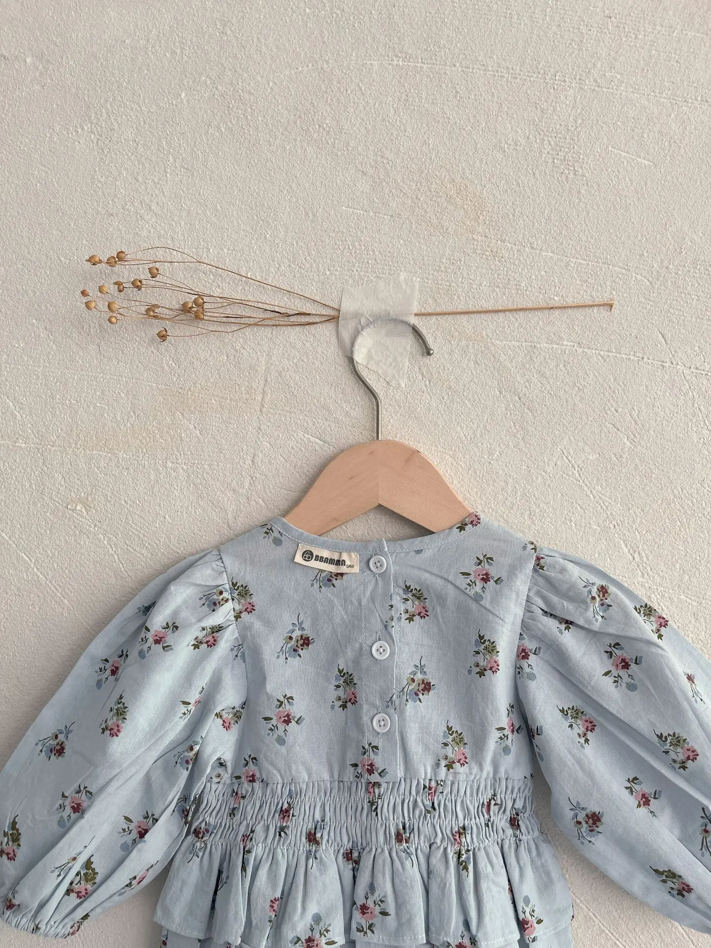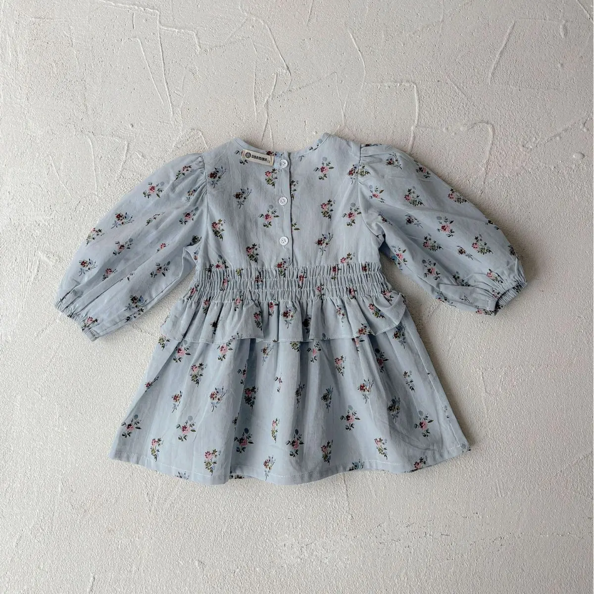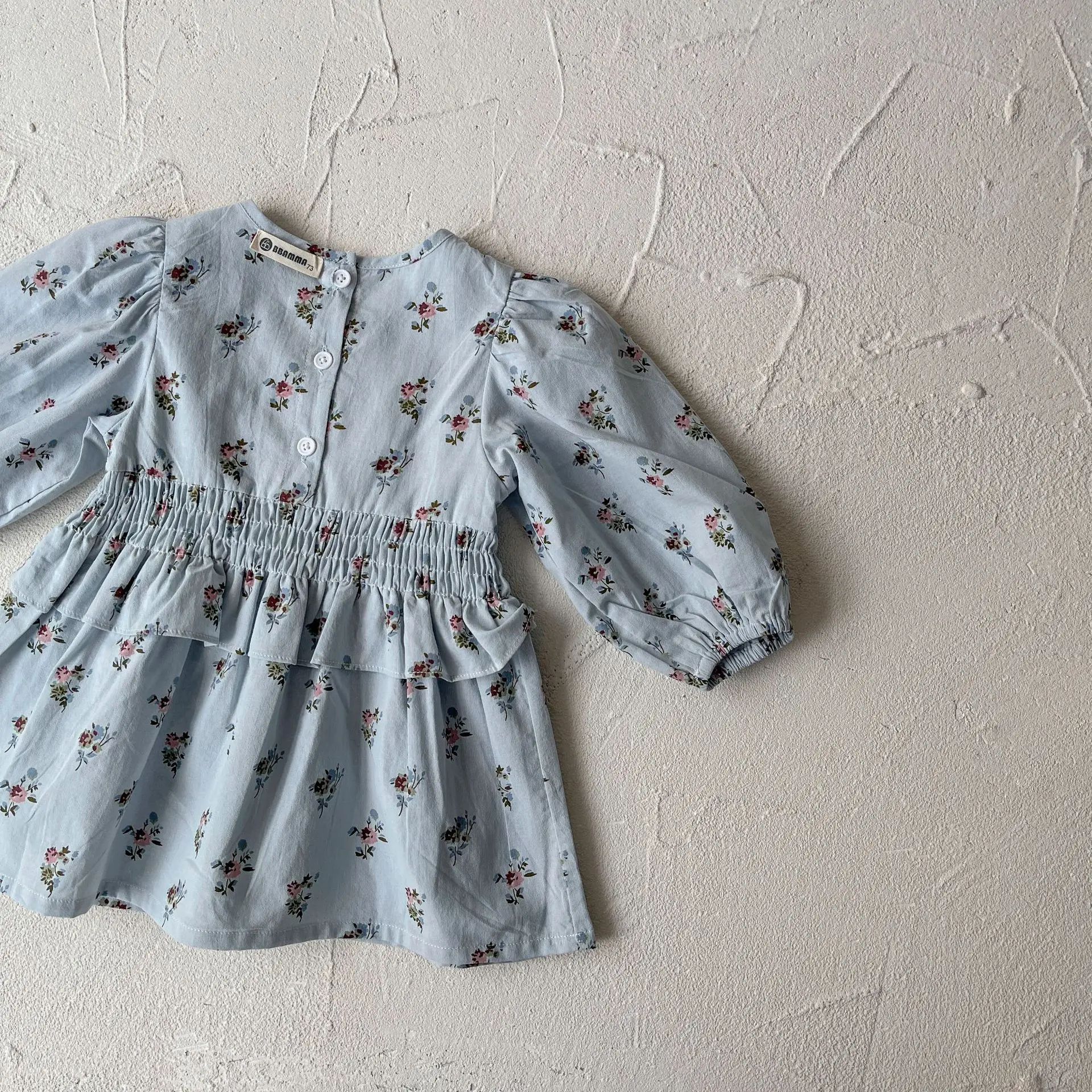 Autumn little princess floral smocking stitch long-sleeved dresses 0-3 years girls fashion cotton dress