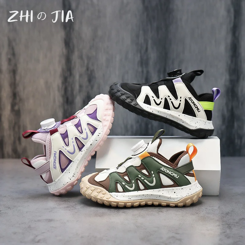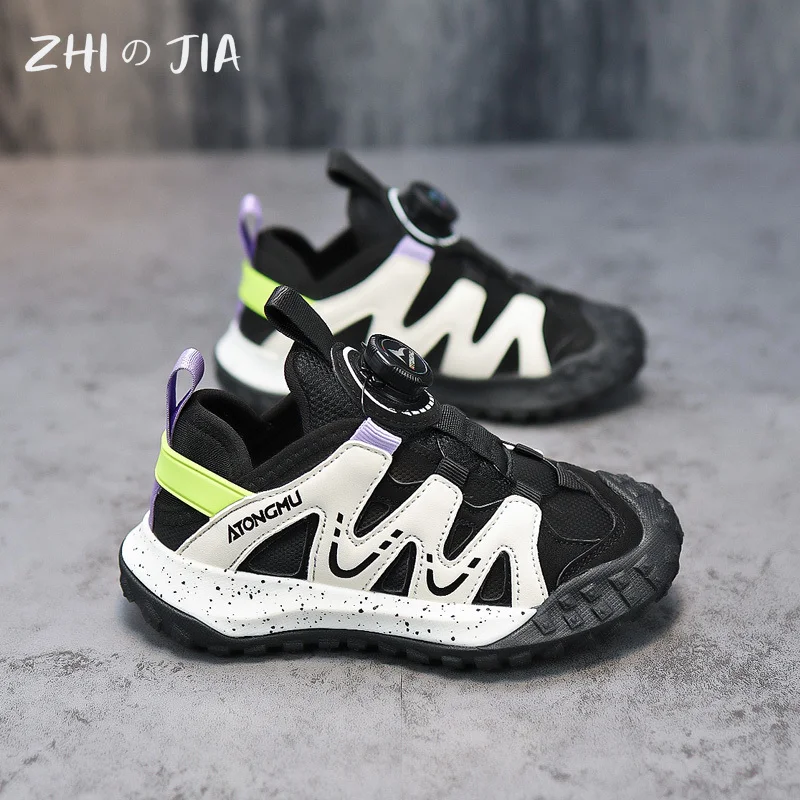 Autumn New Rotating Buckle Children’s Shoes Boys Girls Lightweight Non Slip Sneaker Outdoor Fashion Casual Running Footwear