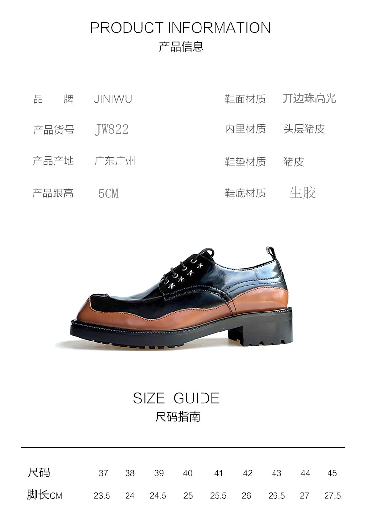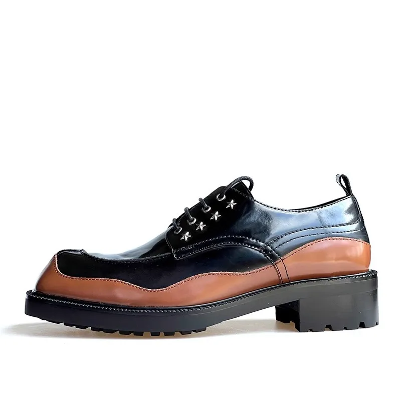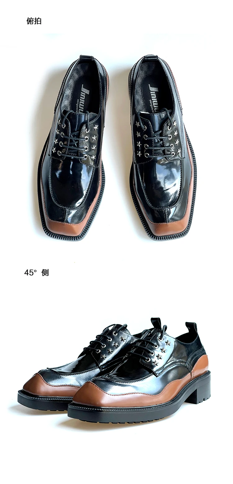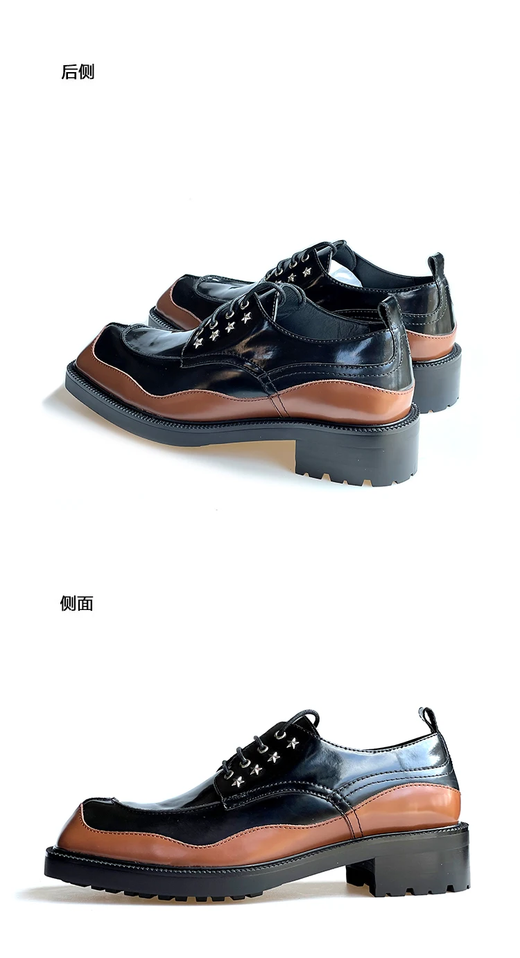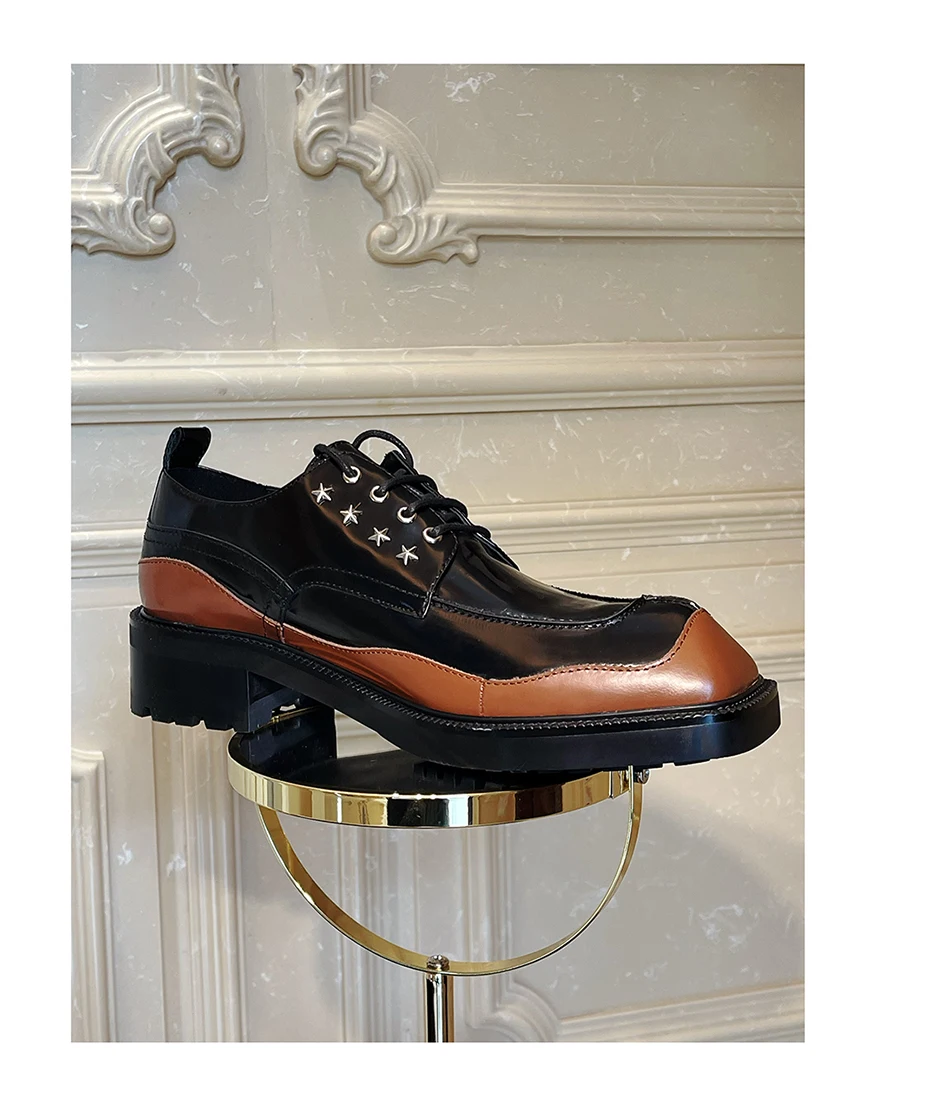 Autumn Shaped Cowhide Lace Up Colored Thick Sole Derby Shoes Banquet Versatile Square Heel Elevated Large and Small Men’s Shoes