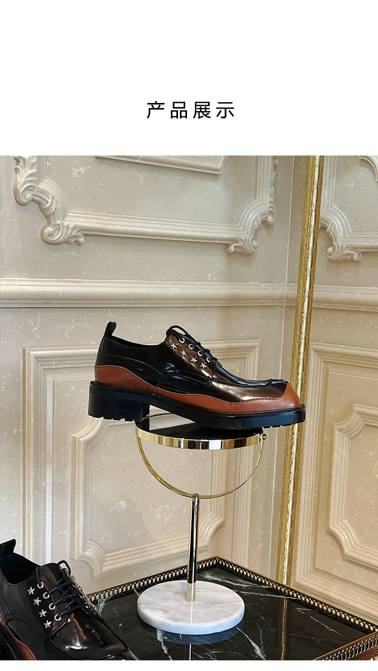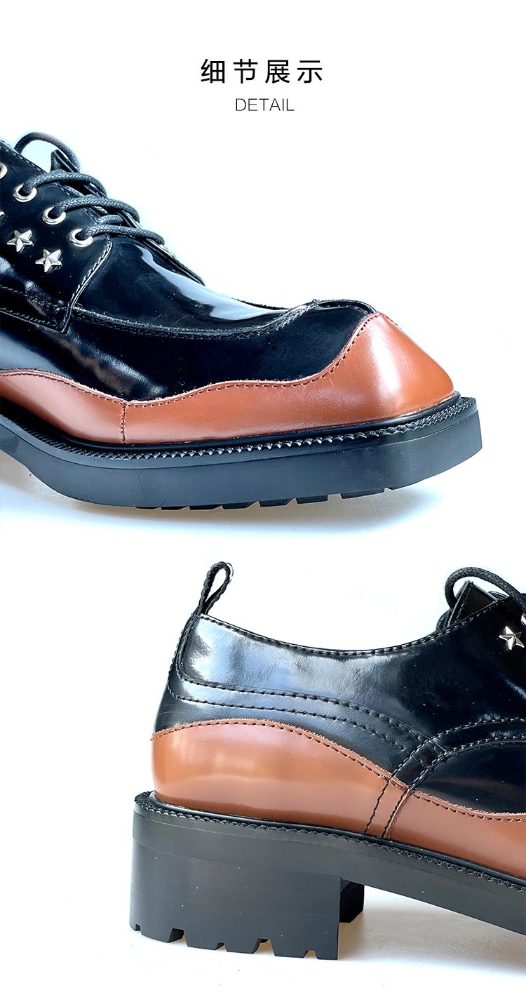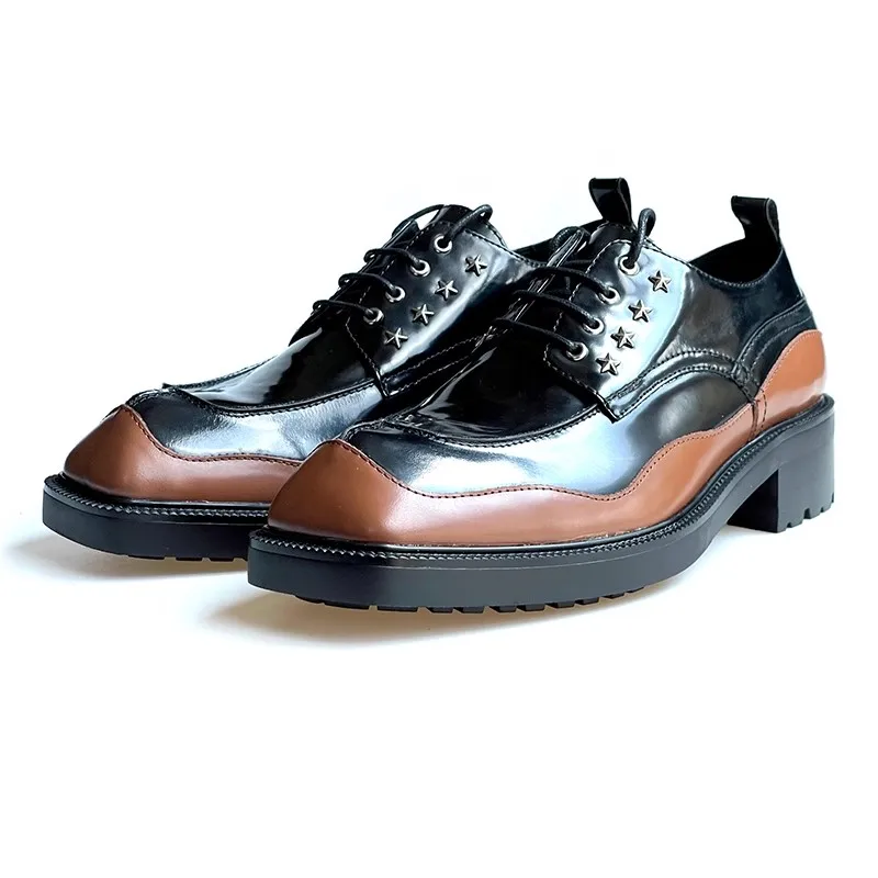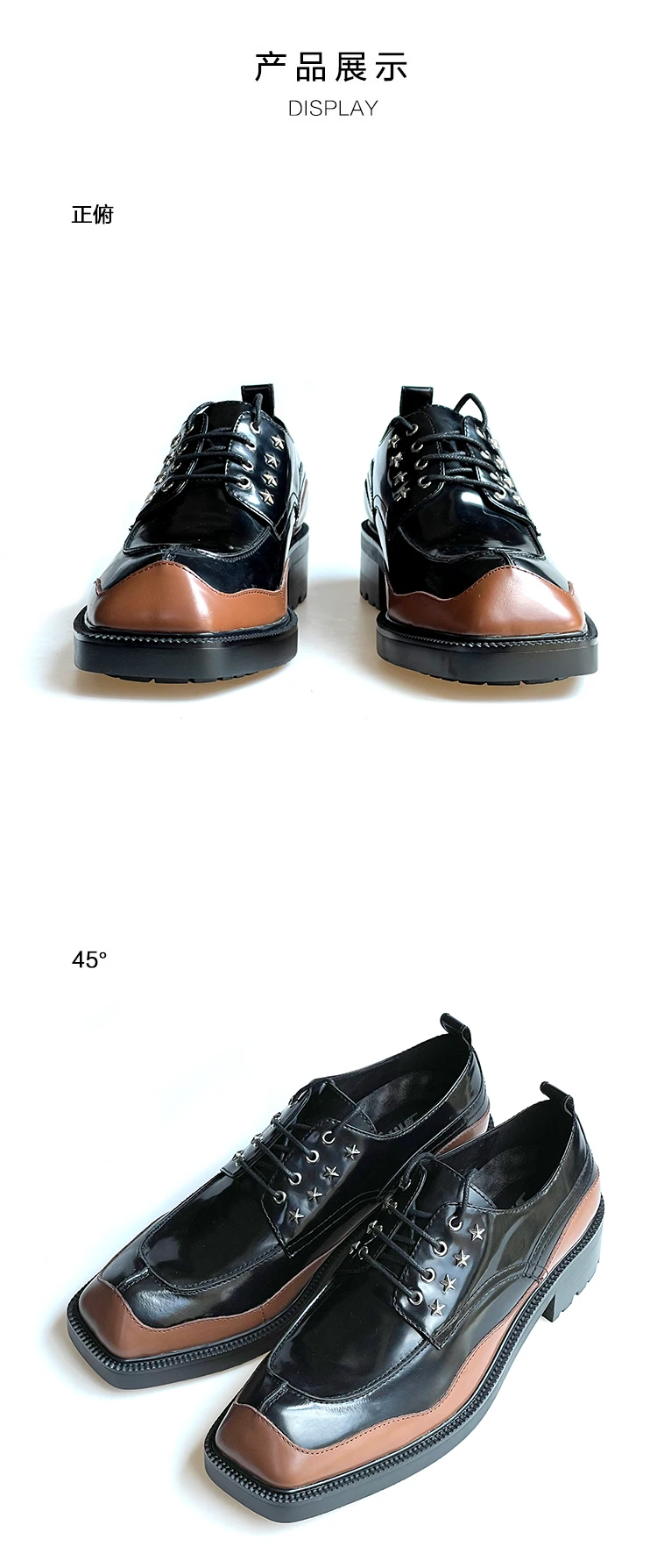 Autumn Shaped Cowhide Lace Up Colored Thick Sole Derby Shoes Banquet Versatile Square Heel Elevated Large and Small Men’s Shoes