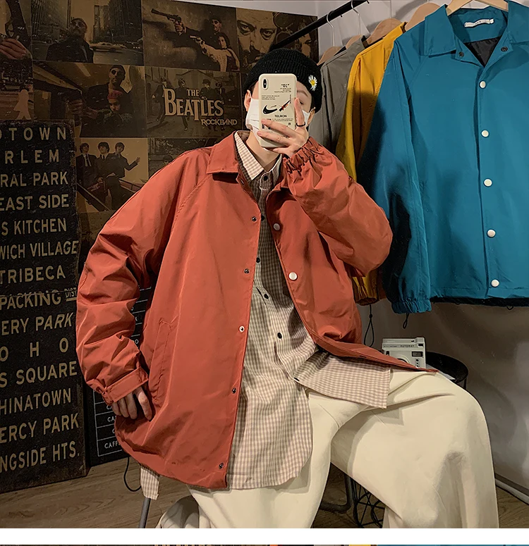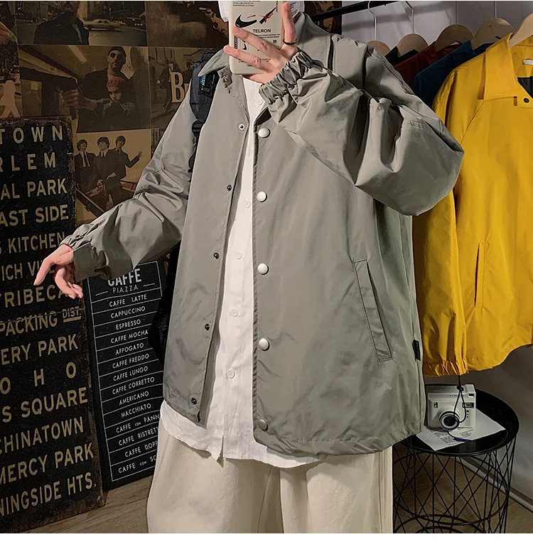 Autumn Thin Jacket Men’s Fashion Solid Color Casual Baseball Uniform Jackets Mens Streetwear Loose Hip-hop Bomber Jacket Men