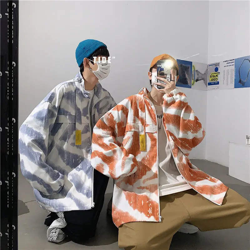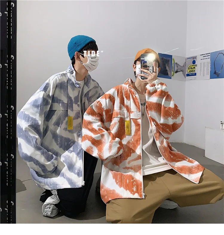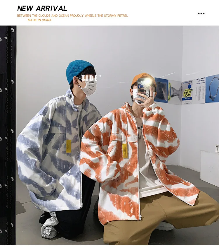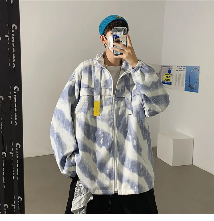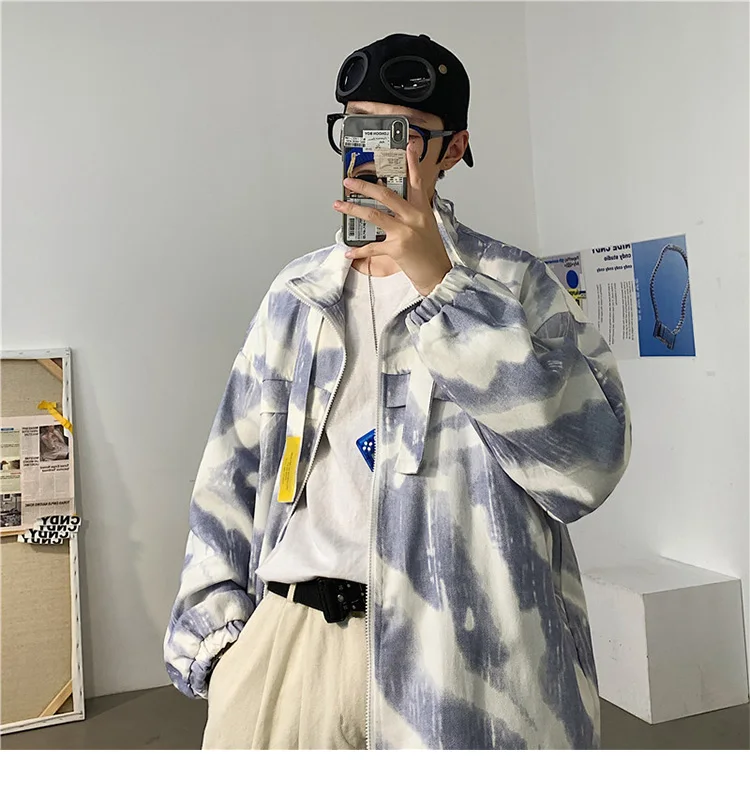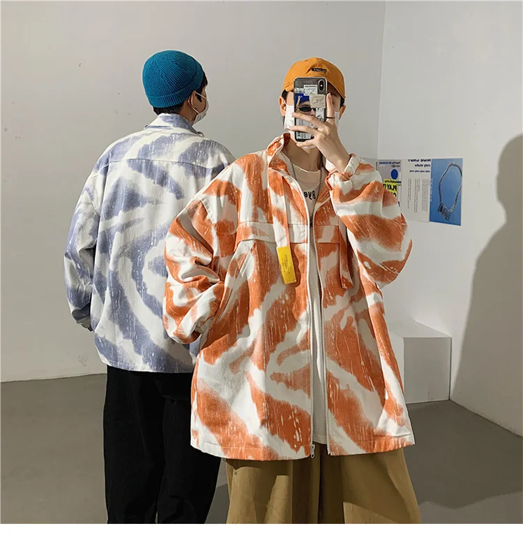 Autumn Tie-dye Jacket Men’s Fashion Retro Cotton Casual Baseball Uniform Jackets Mens Streetwear Loose Hip-hop Bomber Jacket Men