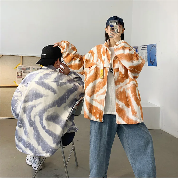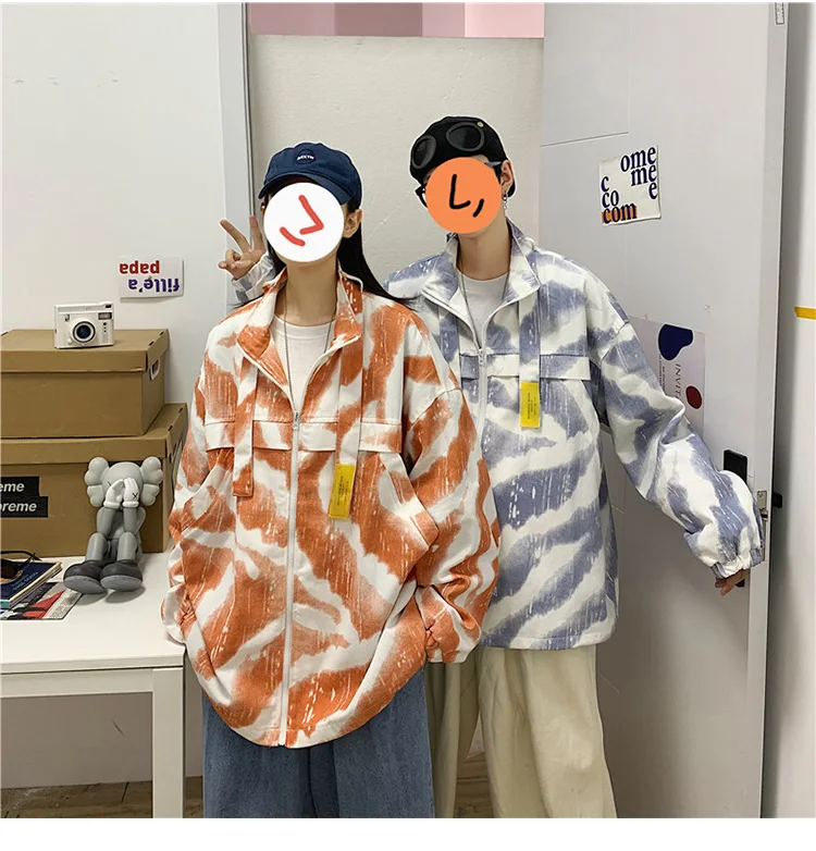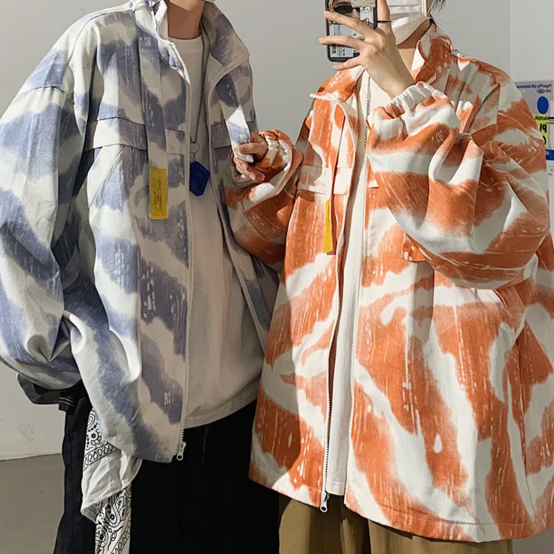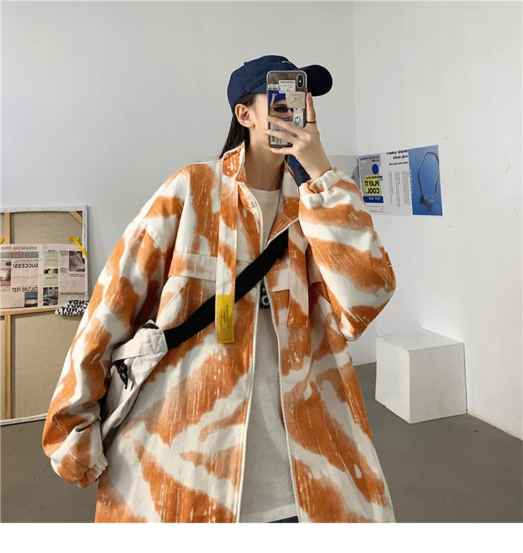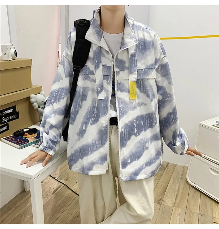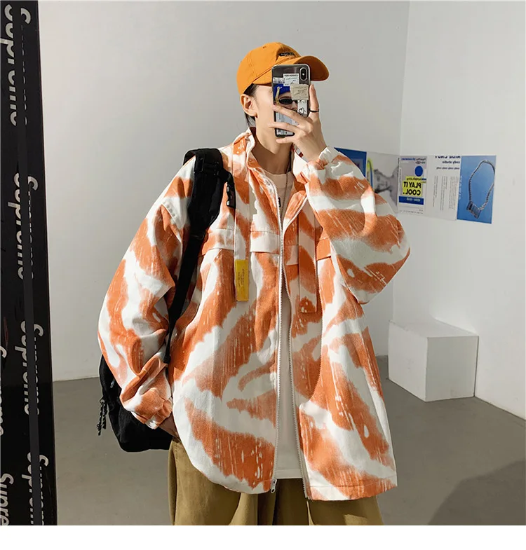 Autumn Tie-dye Jacket Men’s Fashion Retro Cotton Casual Baseball Uniform Jackets Mens Streetwear Loose Hip-hop Bomber Jacket Men