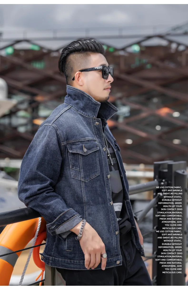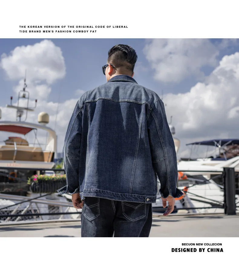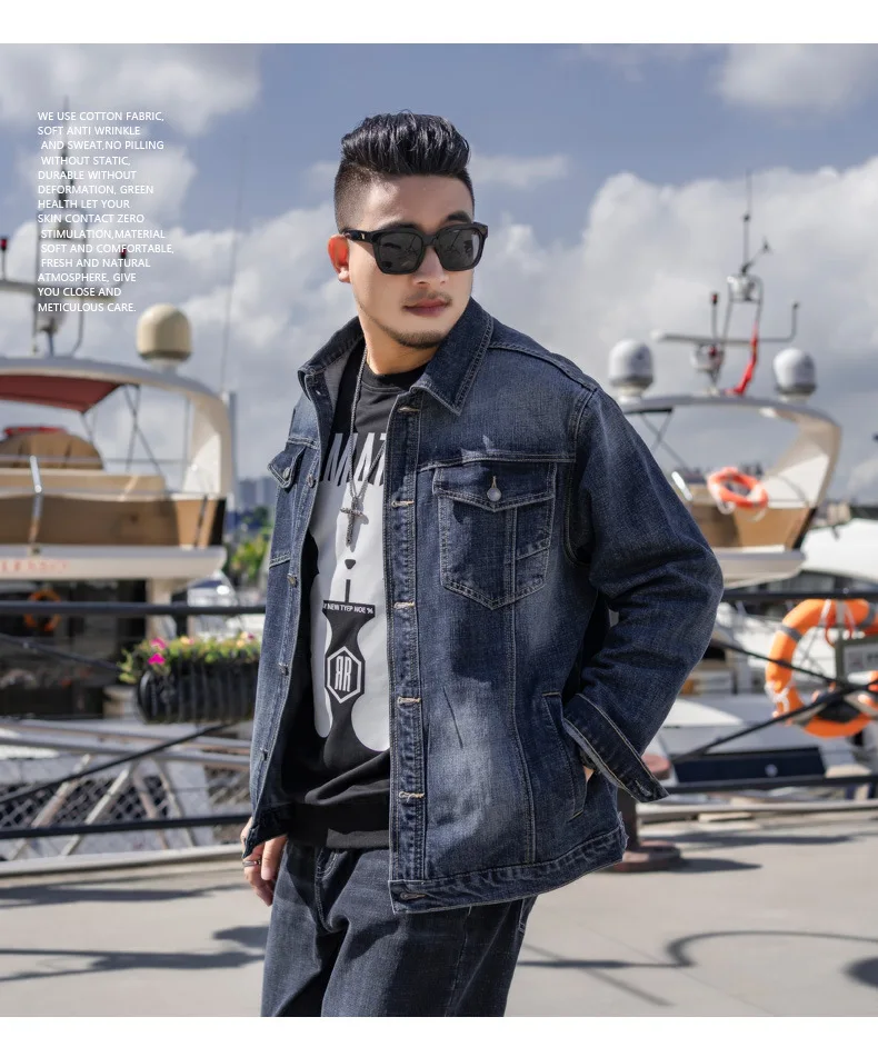 Autumn winter 10XL cotton dark blue denim jacket Plus Size classic style men’s loose high-quality jacket size 9xl