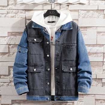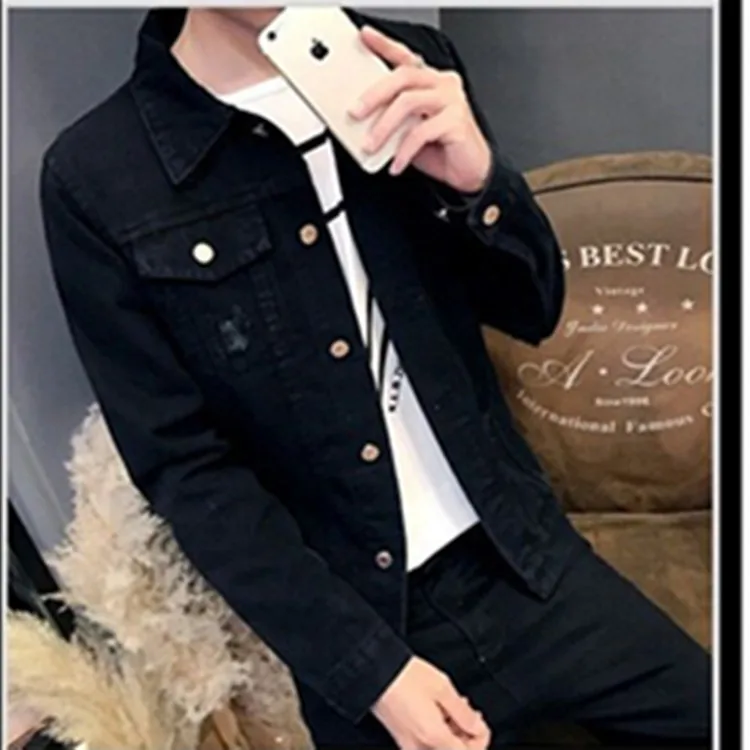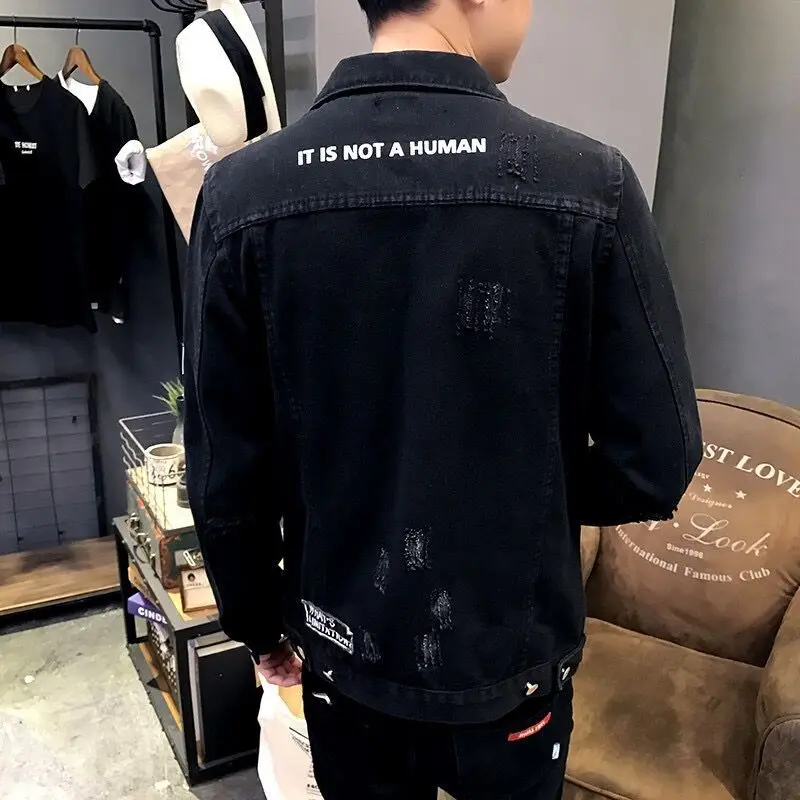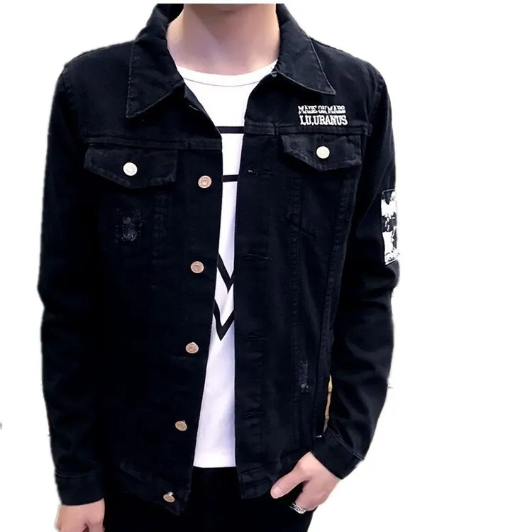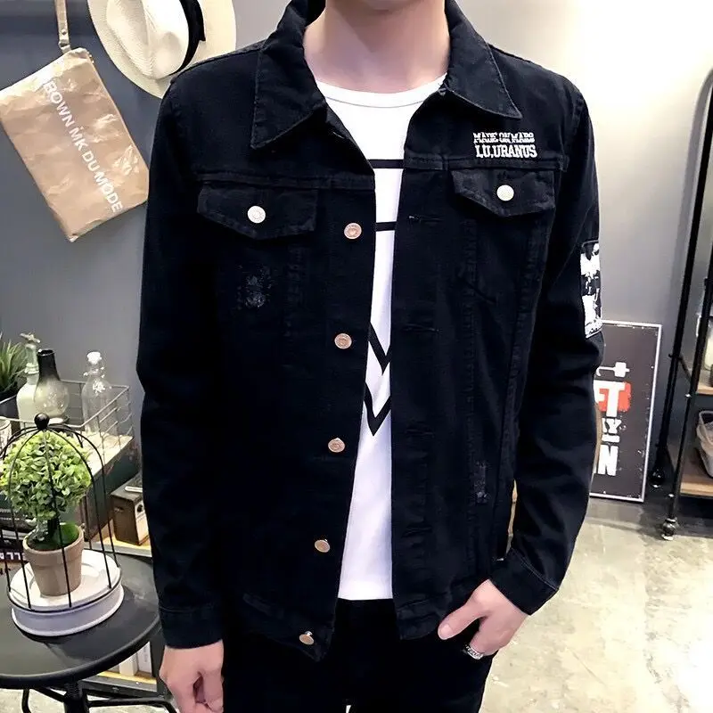 Autumn winter 2020 embroidery black teenagers new menswear trend denim Korean lapel washed denim slim jacket black jacket top