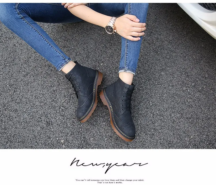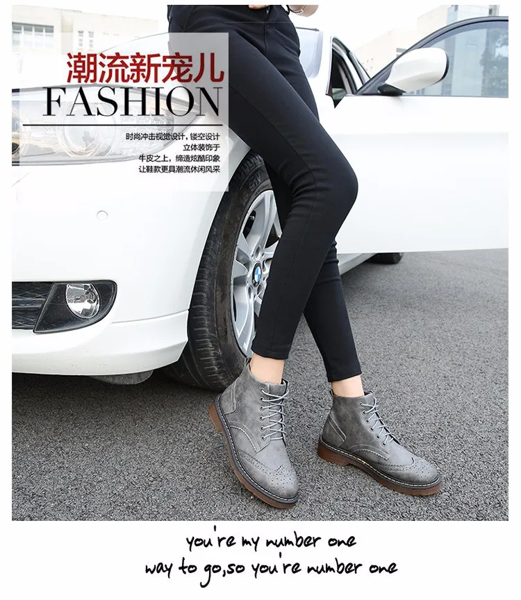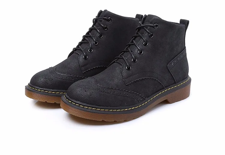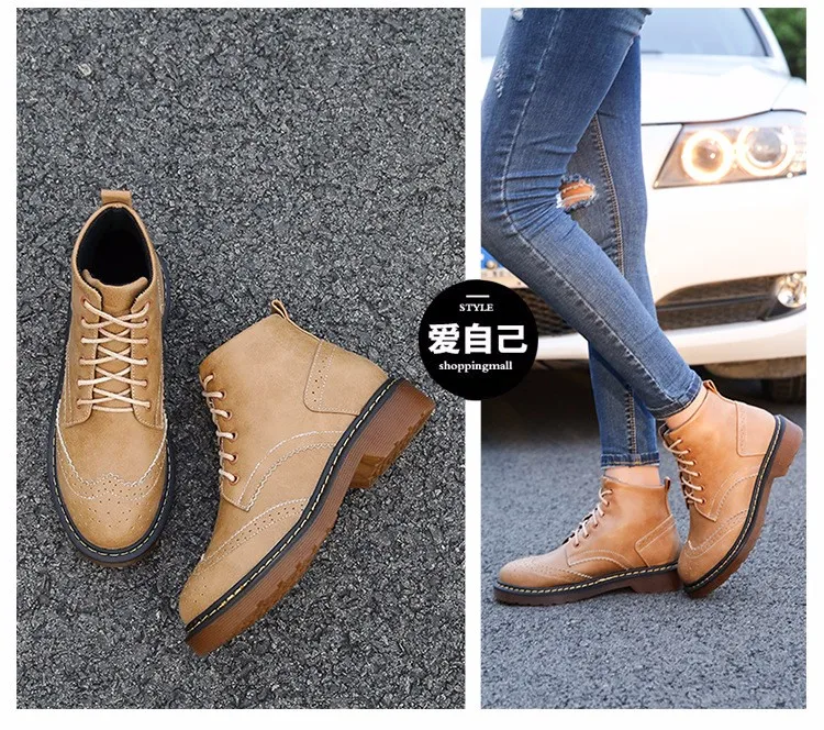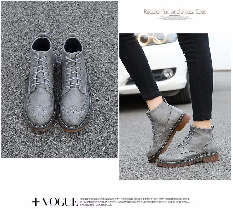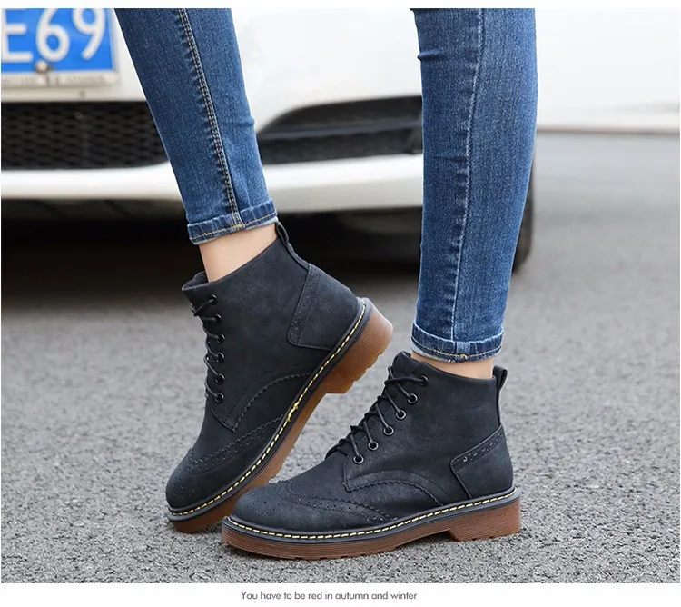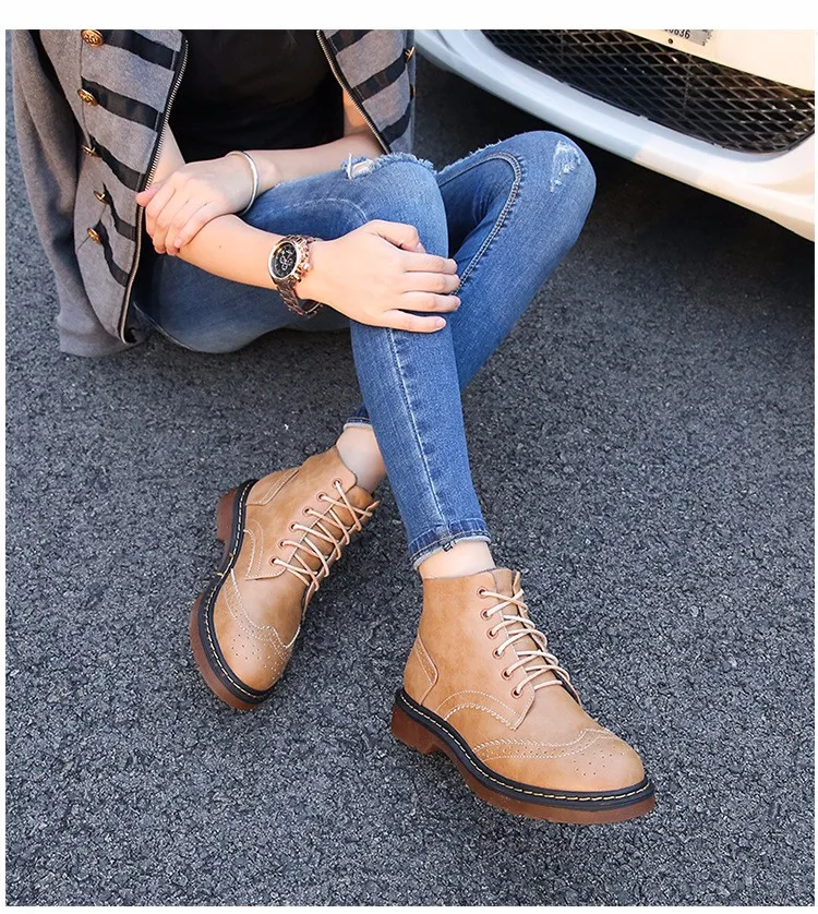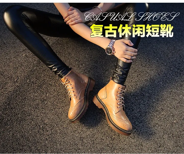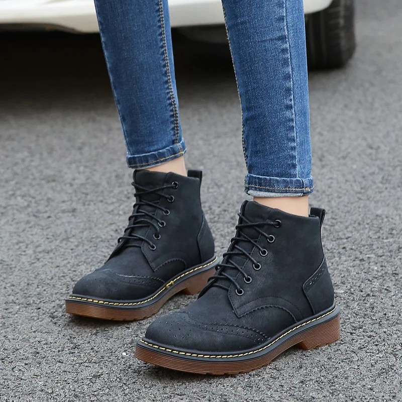 autumn winter boots women designer brogue shoes woman lace up oxford ankle boots genuine leather snow boots with fur big size 43