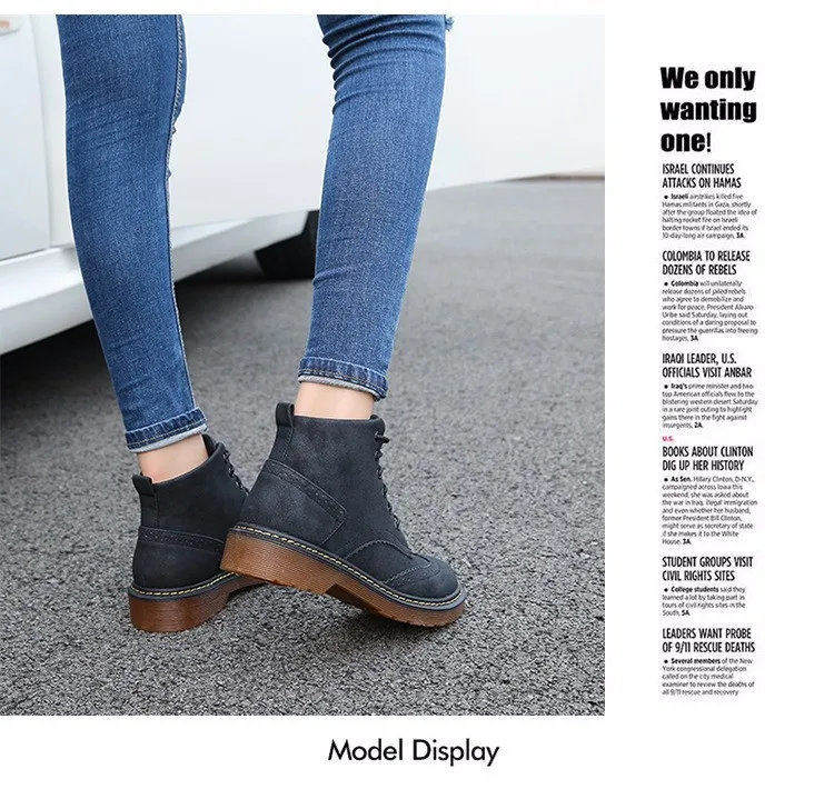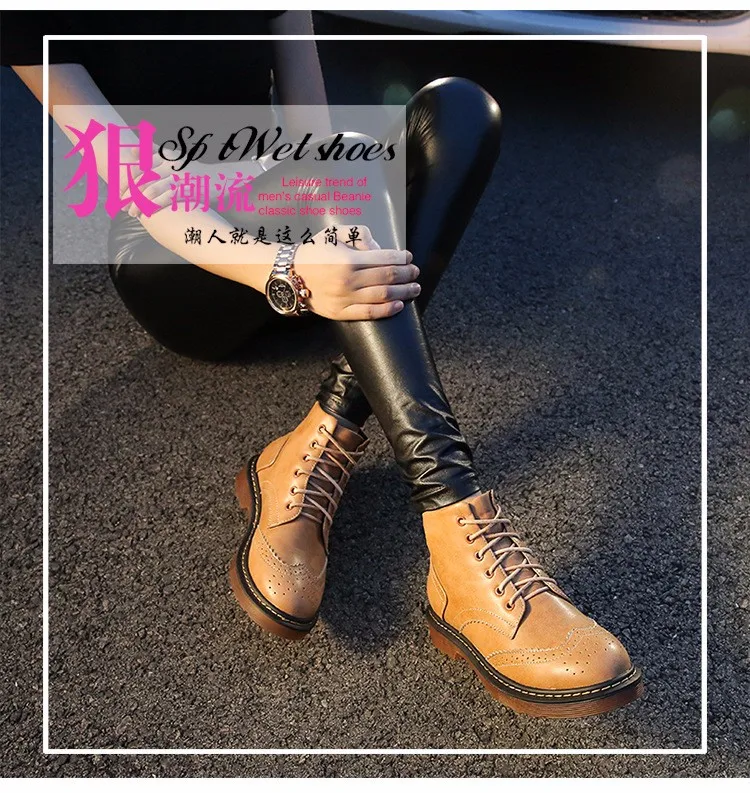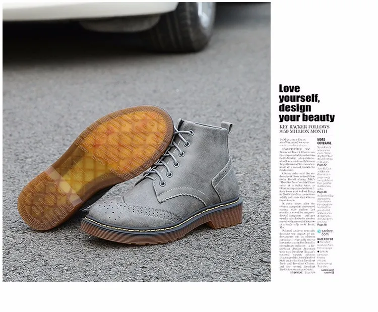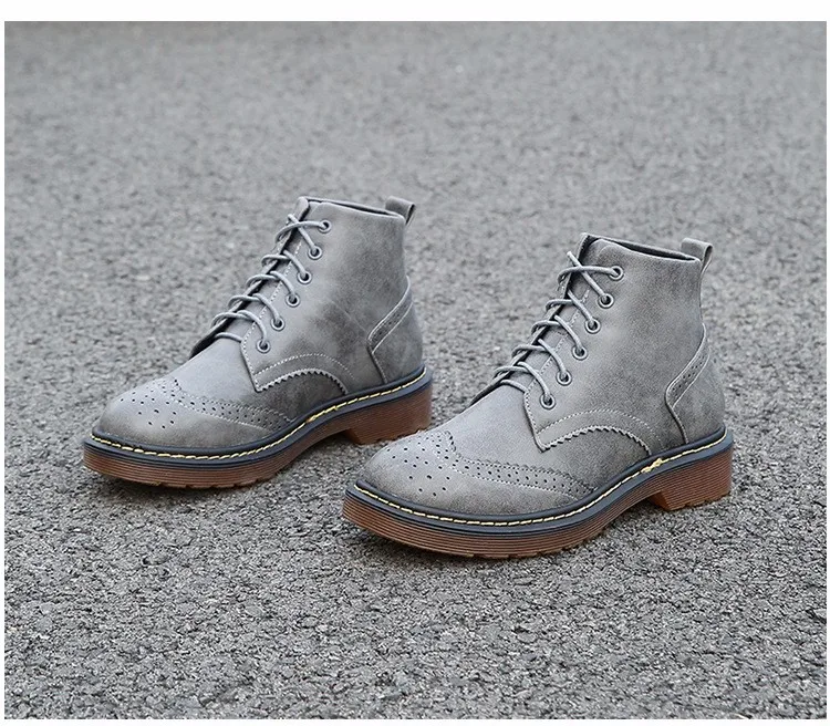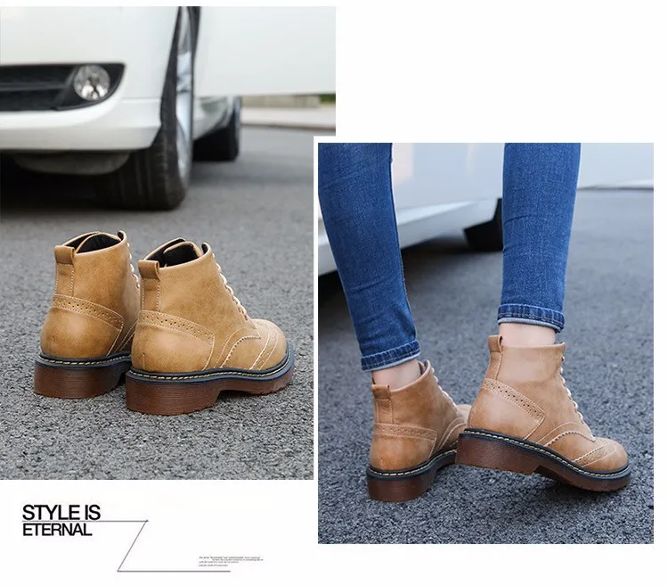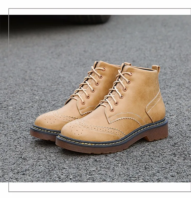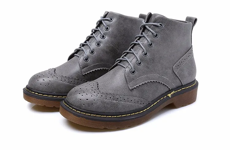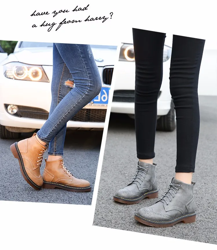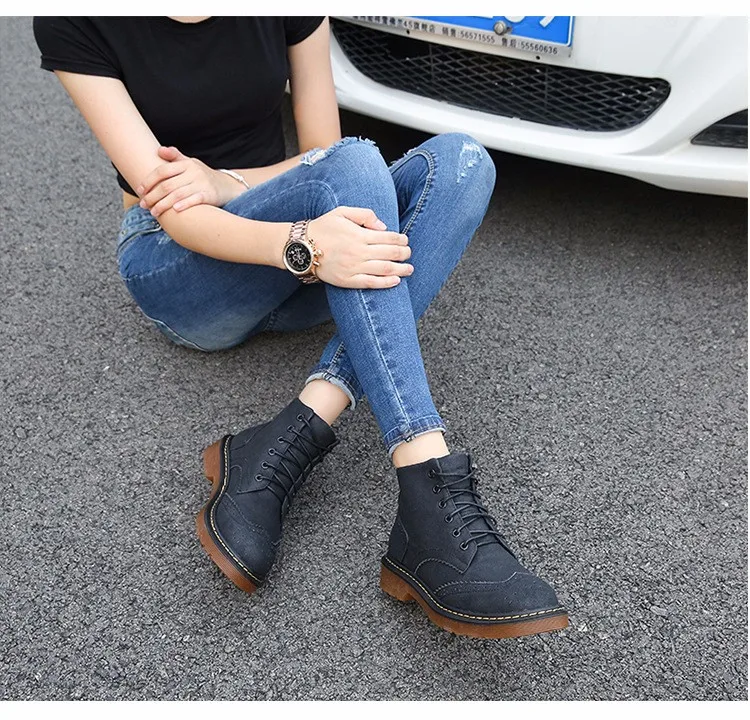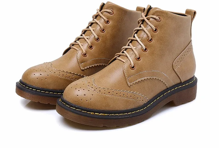 autumn winter boots women designer brogue shoes woman lace up oxford ankle boots genuine leather snow boots with fur big size 43
