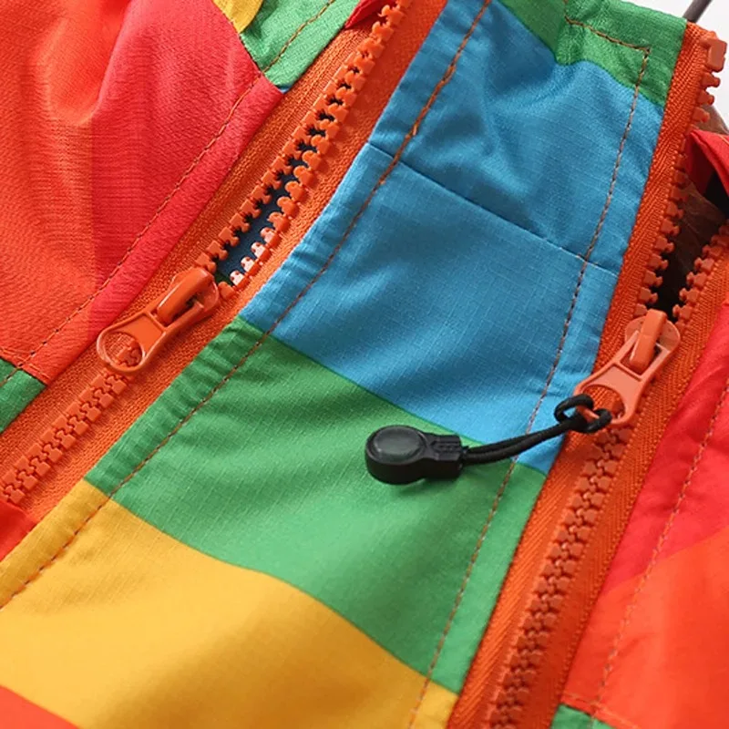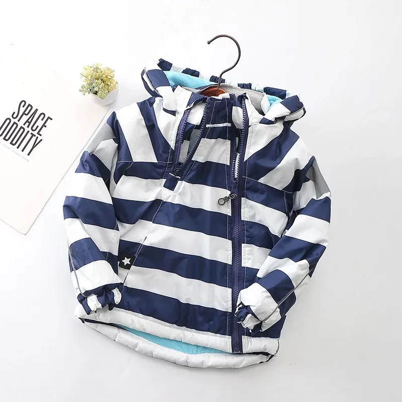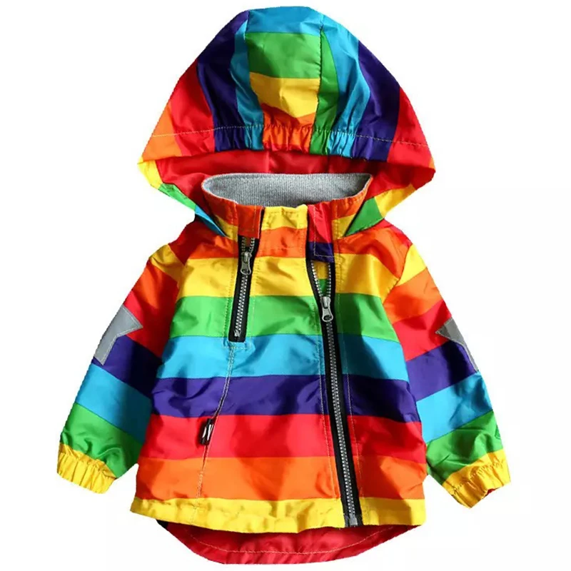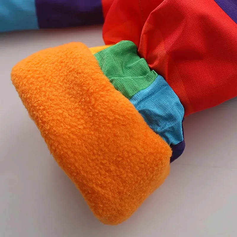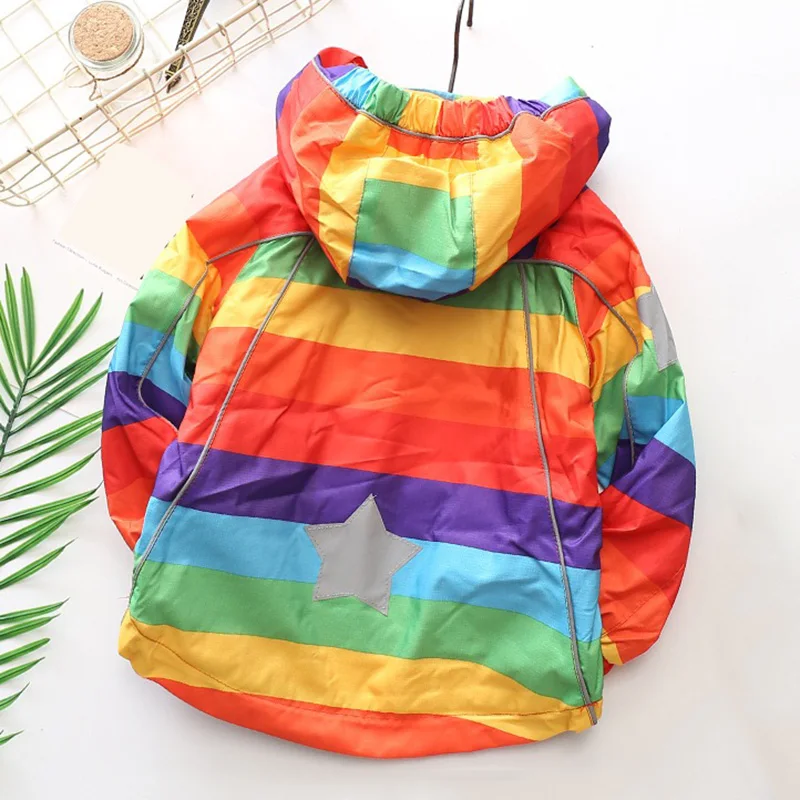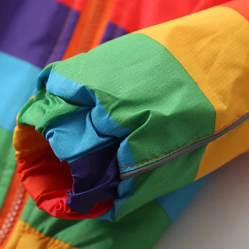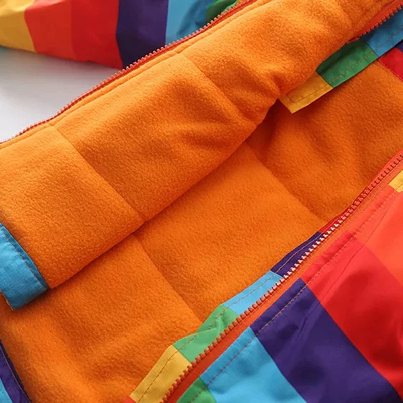 Autumn winter children outerwear kids warm coat hooded thickening waterproof windproof for boys girls rainbow stripe jacket 2-7y