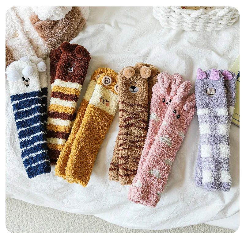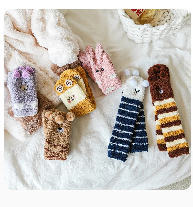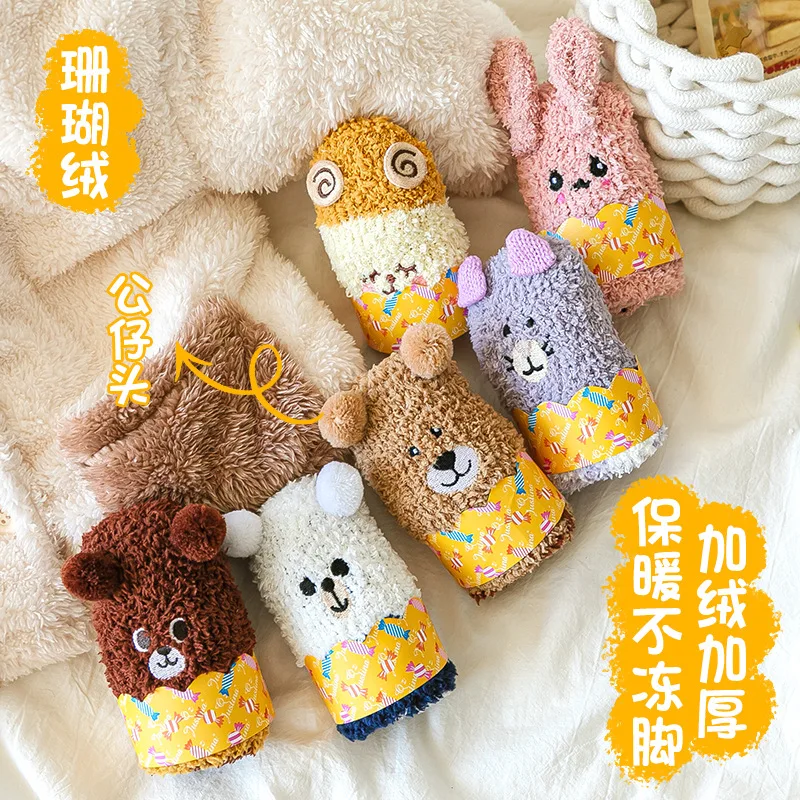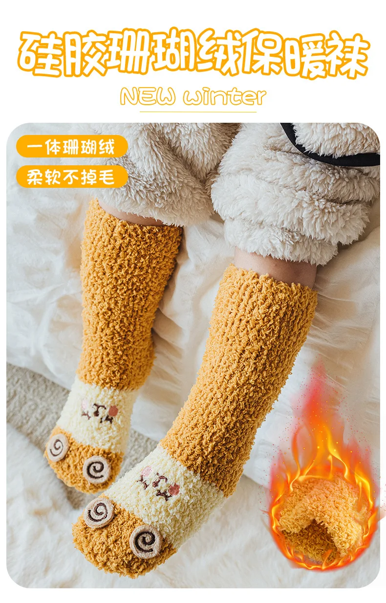 Autumn Winter Coral Fleece Thickened Warm Children Socks Cute Cartoon Non-slip Floor Socks Newborn Toddler Baby Socks