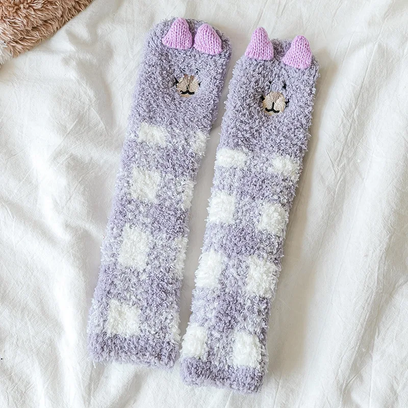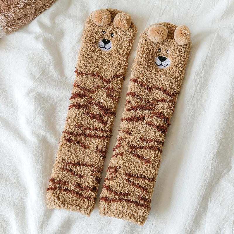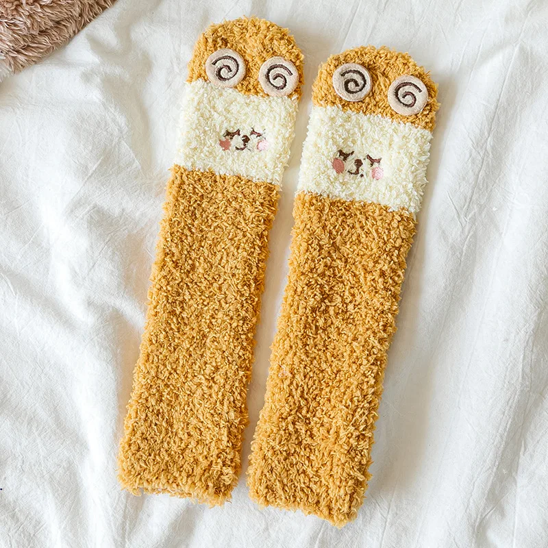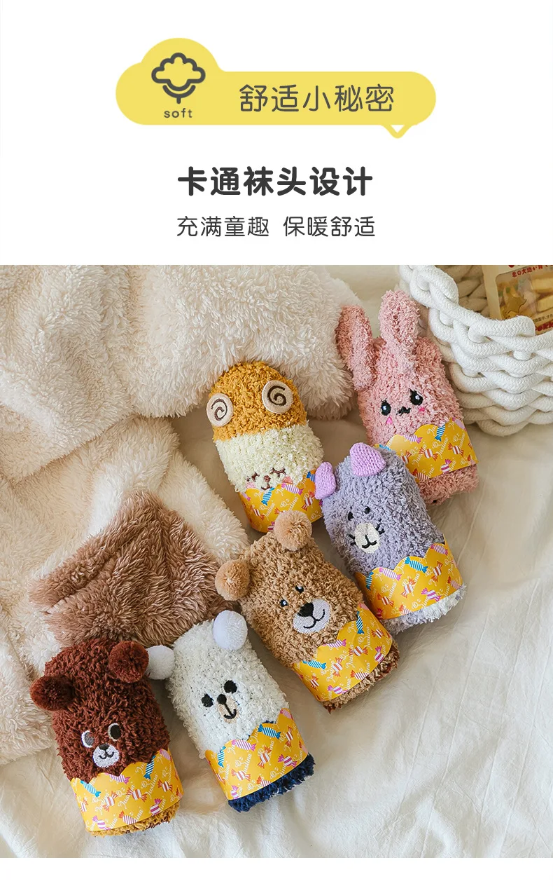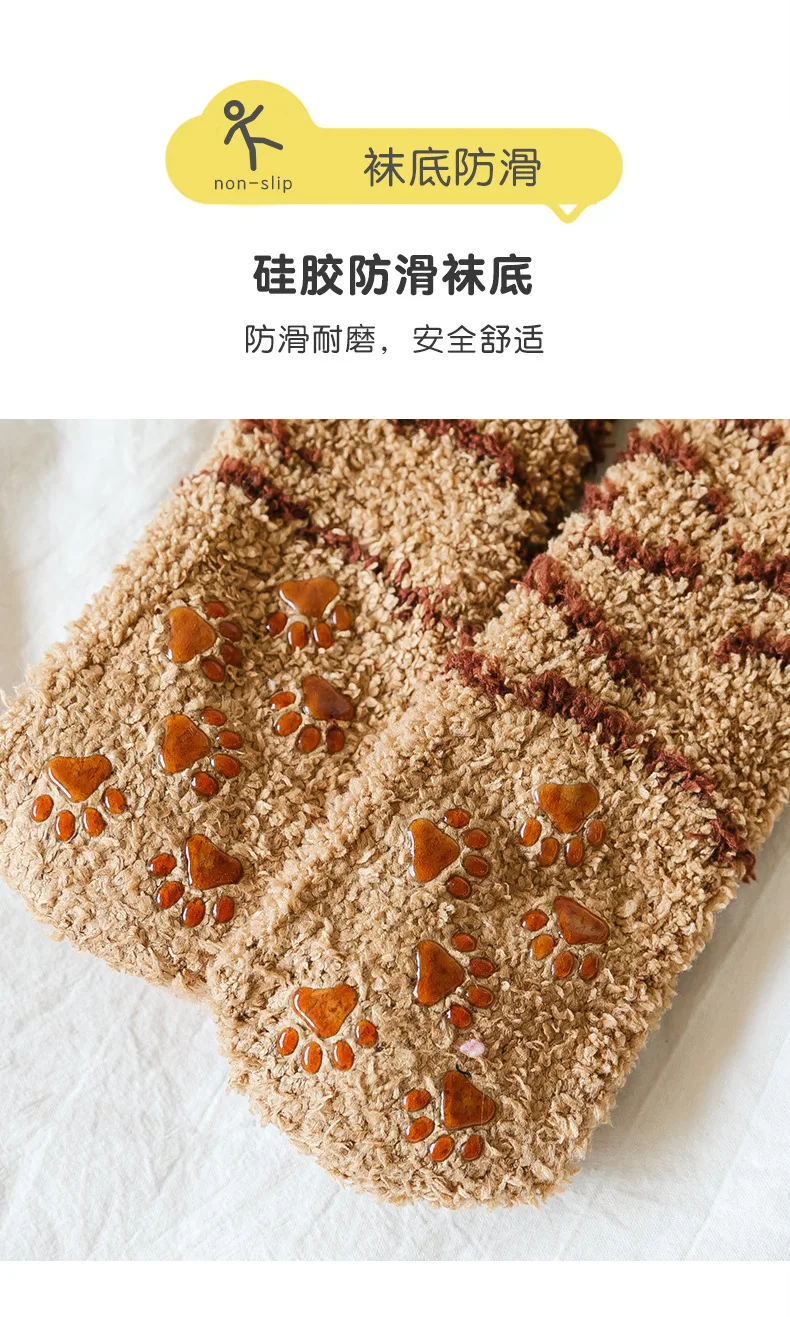 Autumn Winter Coral Fleece Thickened Warm Children Socks Cute Cartoon Non-slip Floor Socks Newborn Toddler Baby Socks