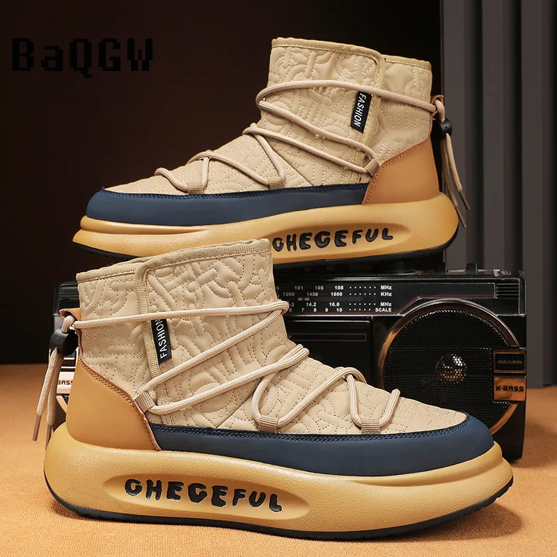 Autumn Winter Designer Luxury High-tops Snow Boots Warm Furry Fashion Fleece Shoes Comfortable Outdoor Lace-up Sneakers Student
