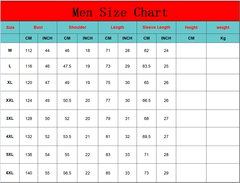 (There are 1-3cm margin of error, If you are not sure the size, Please send the information of your Height, Weight and Chest to me, I will help you choose the correct size. )