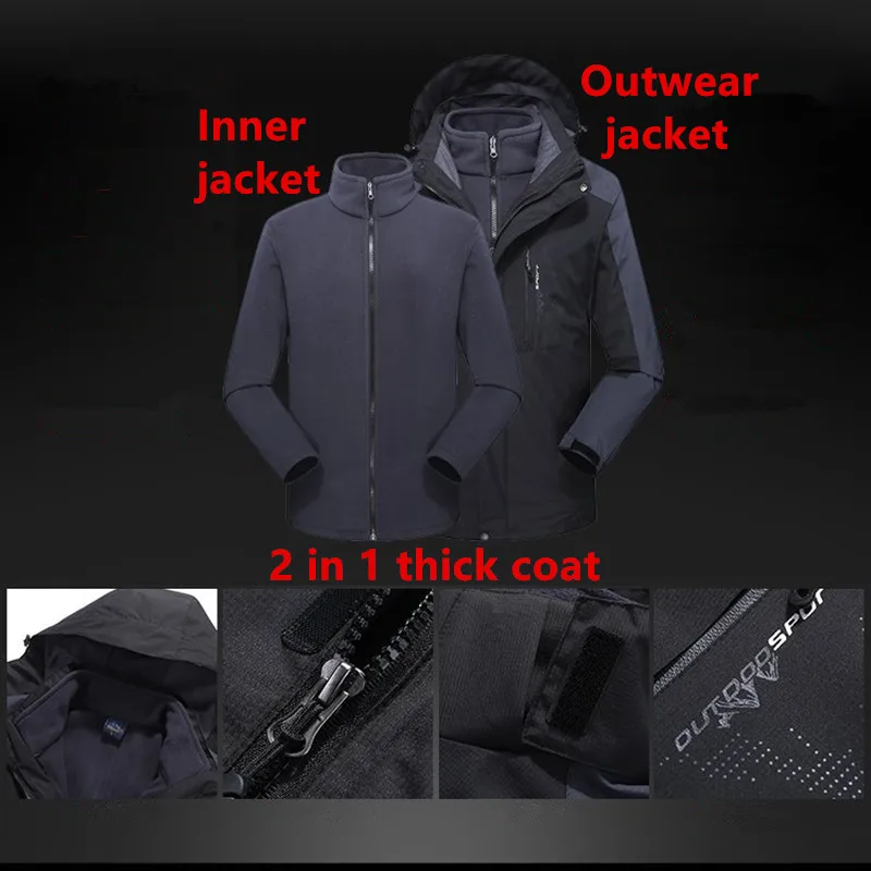 Autumn Winter Down Parkas Men Windbreak Fashion 2 in 1 Thick Warm Windproof Coats Military Hooded Warm Jackets Men’s Overcoat