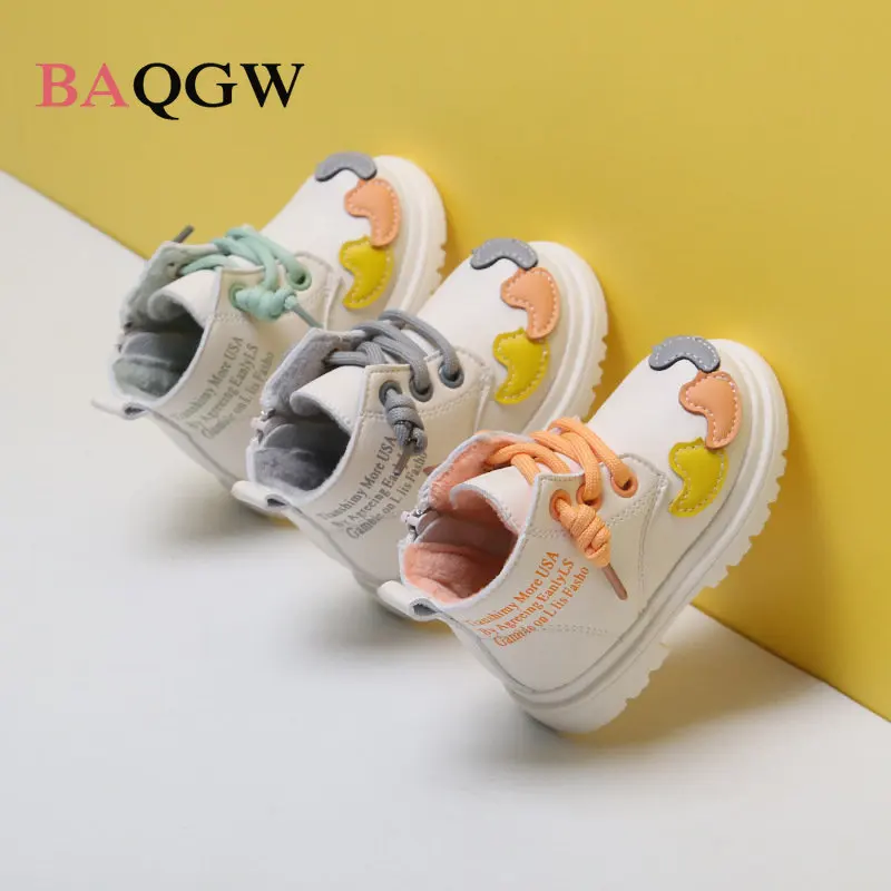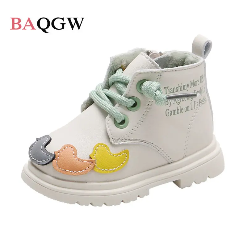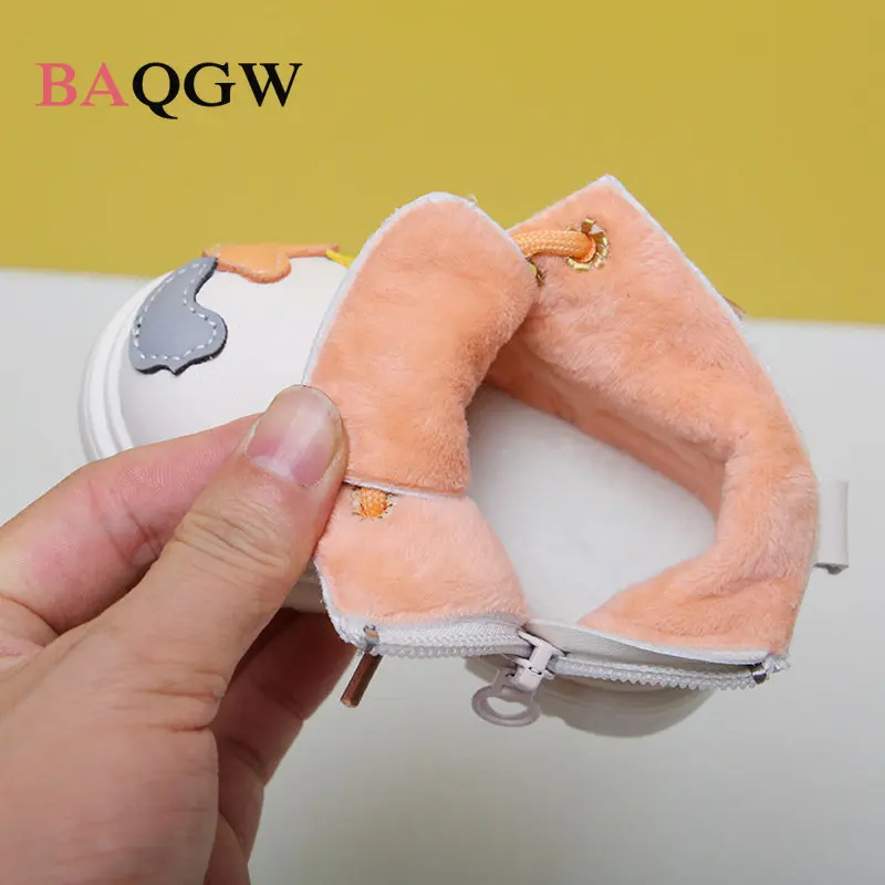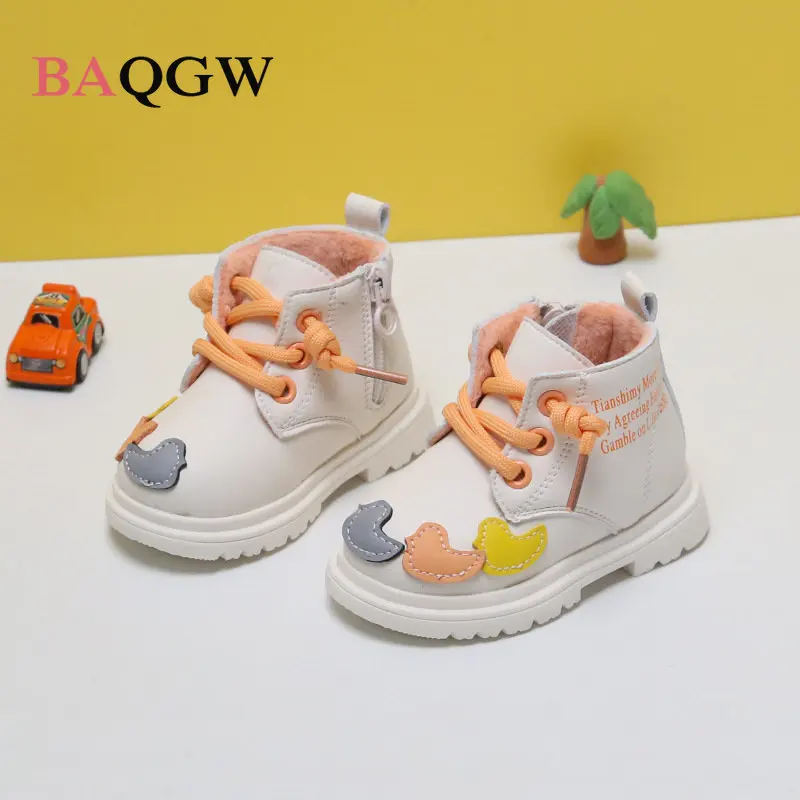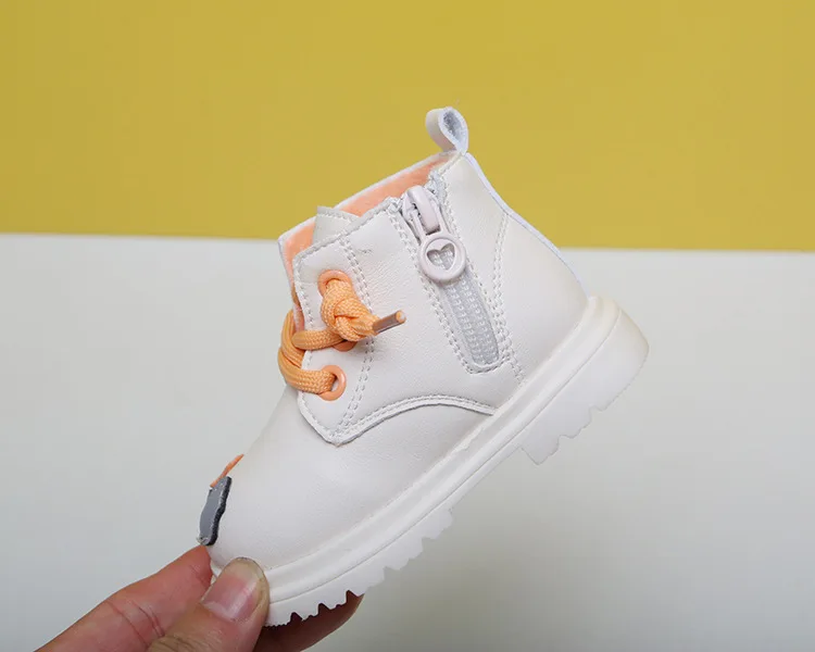 Autumn Winter Fashion Kids Boots Furry Warm Toddler Soft Bottom Walking Shoes Cartoon Children’s Boy Girl High Top Shoes Zipper